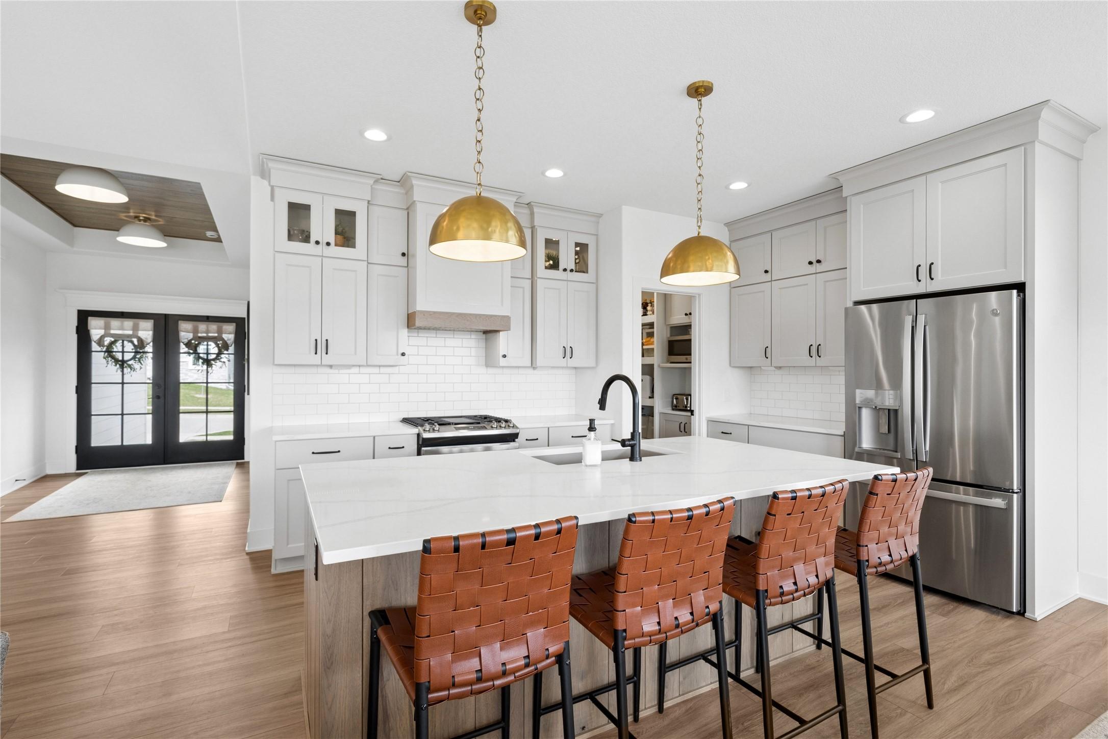 Better than new KRM resale with an open, functional layout, quality finishes, and thoughtful upgrades throughout. Bright and sunny with great views, this home offers a private, fully fenced backyard and standout curb appeal. The kitchen features abundant cabinetry, quartz countertops, stainless steel appliances, and a walk-in pantry, flowing into the dining area and covered deck.