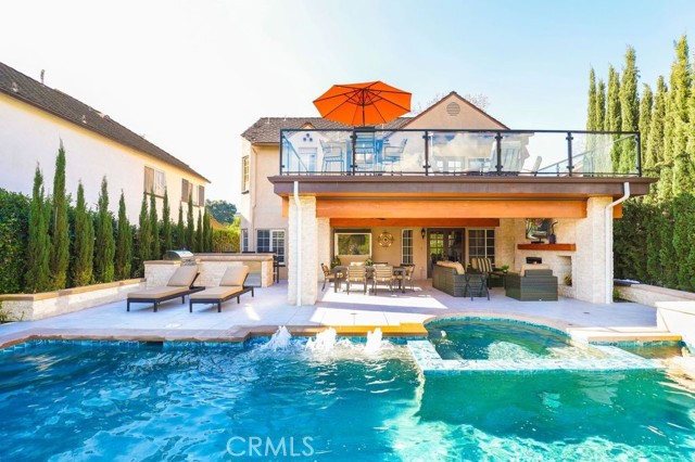 Located in the exclusive, gate-guarded community of Coto de Caza, this beautifully appointed 2,400-square-foot home offers 3 bedrooms, 3 bathrooms, and an ideal LOFT currently used as a home office—perfect as a playroom, workspace, or easily convertible to a FOURTH BEDROOM. Inviting curb appeal welcomes you into a light-filled, open floor plan featuring formal living and dining room designed for both everyday comfort and elegant entertaining. The spacious kitchen showcases warm cabinetry, granite countertops, and a cozy breakfast nook with French door leading to the outdoor dining area and garden. Picturesque windows frame views of the sparkling pool, spa, and surrounding mountains. The adjoining family room continues the warmth of this home to enjoy everyday living. The extended living space outside is right out of a magazine. Well thought out with spacious living area and impressive fireplace. Conveniently located downstairs is an interior laundry room just off the garage entry. The expansive primary suite features a beautiful bath with dual sinks and a walk-in closet. French doors open to an oversized balcony with breathtaking views of the golf course and the Saddleback Mountains. Two additional bedrooms share a Jack-and-Jill bathroom. The resort-style backyard is an entertainer's dream, complete with a pool, spa, outdoor family room, and built-in BBQ. The views and backyard in this home will take your breath away. Ideally situated on the 5th hole of the North Golf Course, this exceptional home offers privacy, views, and the ultimate Coto de Caza lifestyle. Enjoy alll the amenities Coto de Caza has to offer. Country Club, Pickleball, Sport Court, Parks and miles of Walking Trails. Minutes to local schools and shopping.