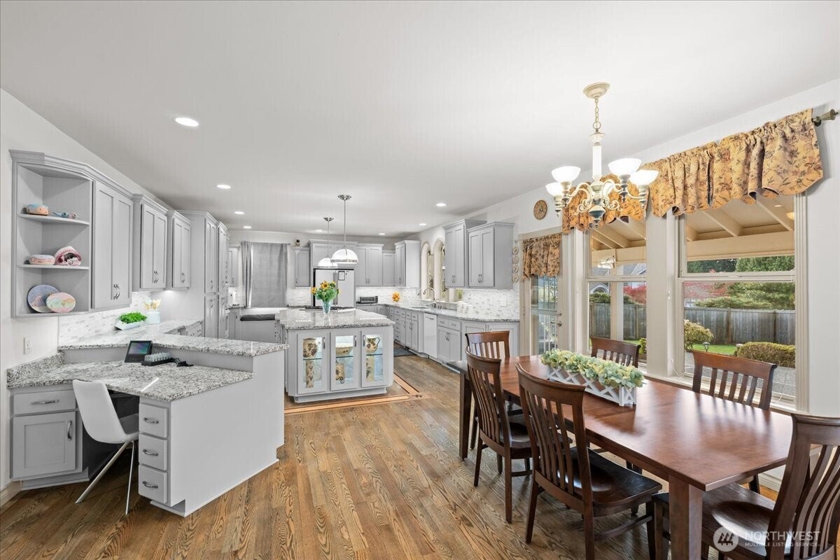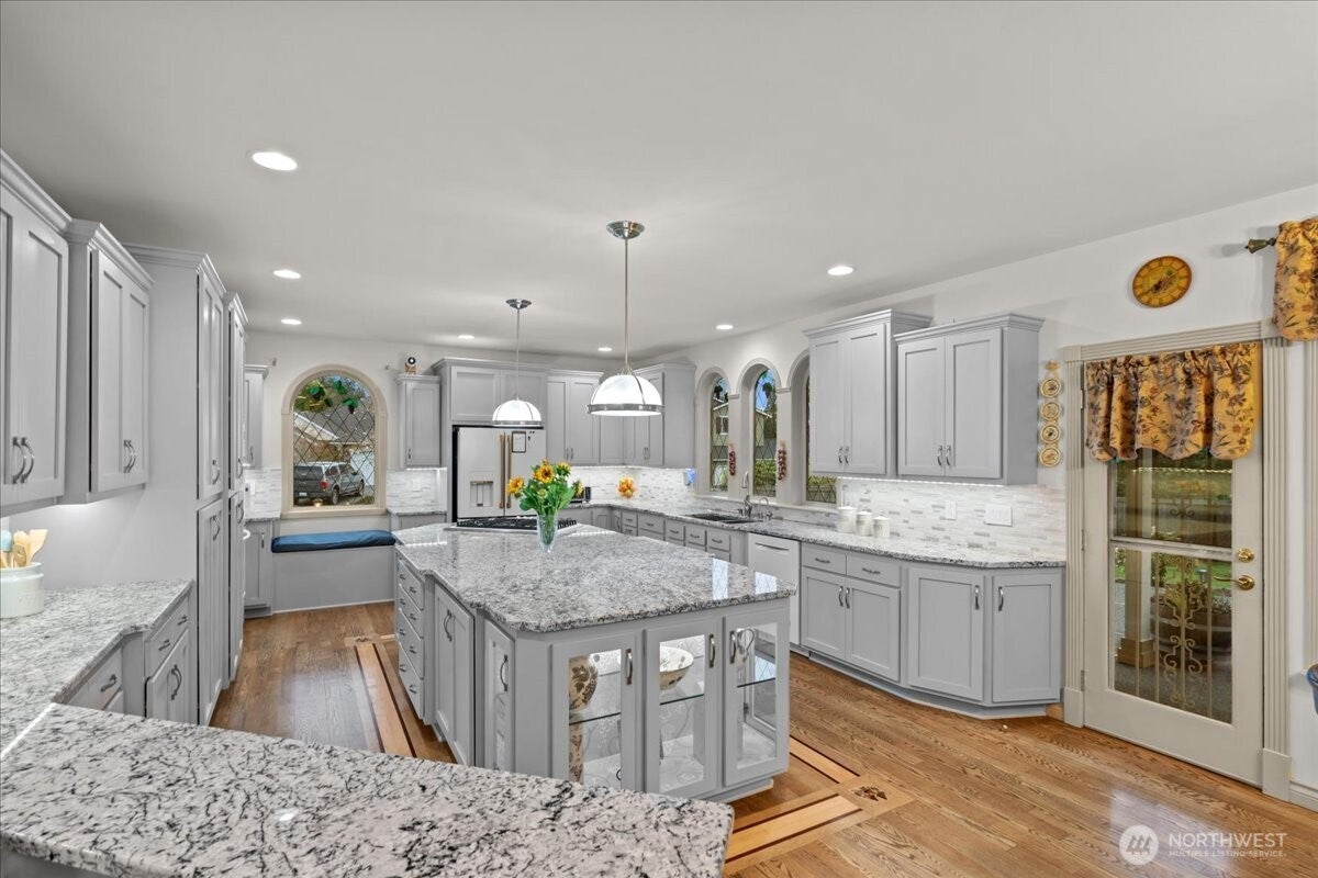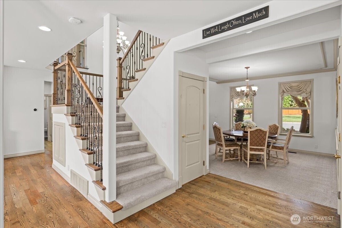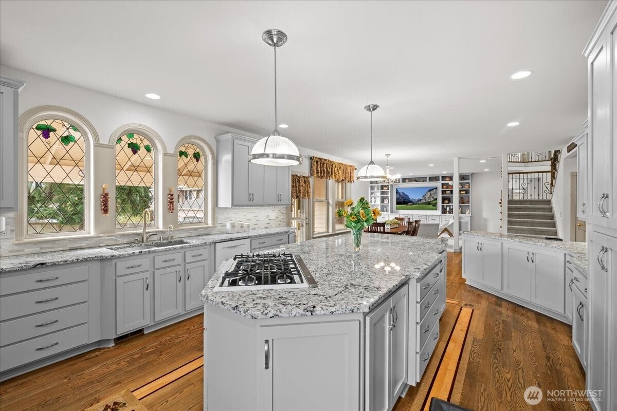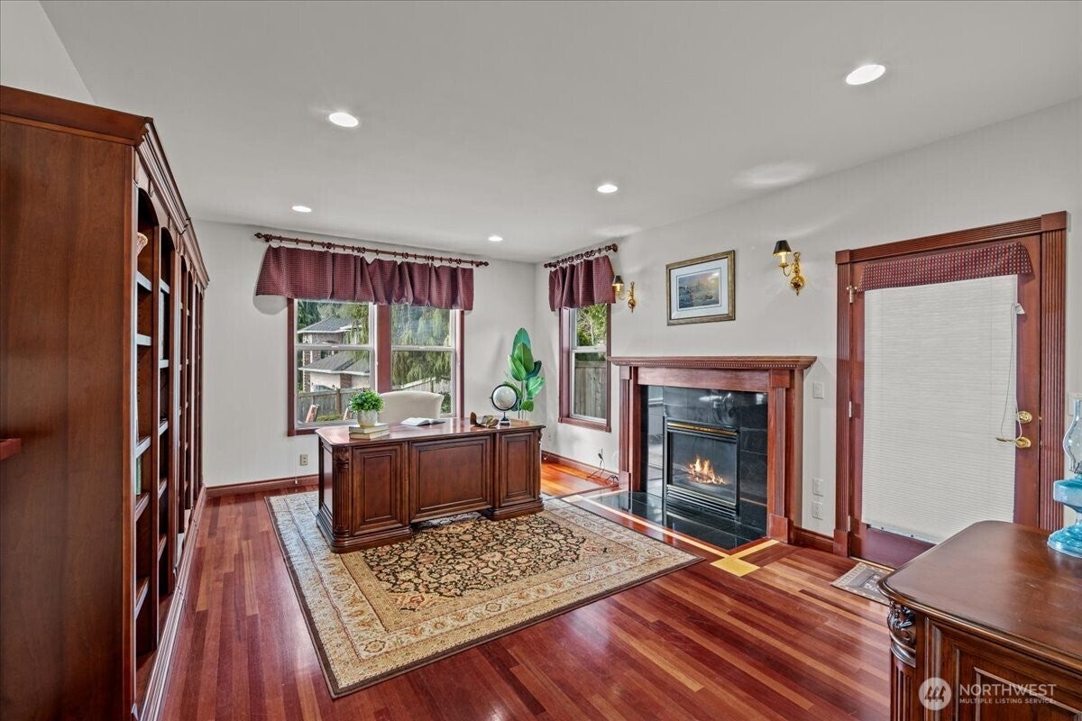 Ideally located in the desirable Gold Creek community an east facing grand entry welcomes you. This beautifully updated custom home offers a versatile floor plan creating a warm inviting atmosphere. Extensive hardwoods flow to the stunning remodeled kitchen with an abundance of cabinets featuring granite counters, upgraded appliances, designer lighting & an 11 x 5 center island - blending style & function. The open concept family room is enhanced by large west facing windows & floor to ceiling custom cabinetry. Rounding out the main level are formal living & dining rooms plus a private office with its own fireplace ideal for either a media or game room. Upstairs are four spacious secondary bedrooms (one with an en-suite) a laundry room & three quarter bath. The luxurious primary suite doubles as a retreat with its own sitting area & fireplace - the private spa-inspired bath has a heated tile floor, a freestanding tub, double sized shower & enormous walk in closet. The 3 car garage features professional grade amenities - perfect for the hobbyist. A private staircase off the main floor hall leads to a standing height crawl space of over 500 sq ft. Beautiful backyard is fenced with an entertaining size patio & covered area. The Gold Creek community offers parks, playfields, sport courts, & greenbelt walking trails. Only minutes to Willis Tucker County Park; plus a short jaunt to Mill Creek shopping or historic downtown Snohomish. This home is an exceptional property.