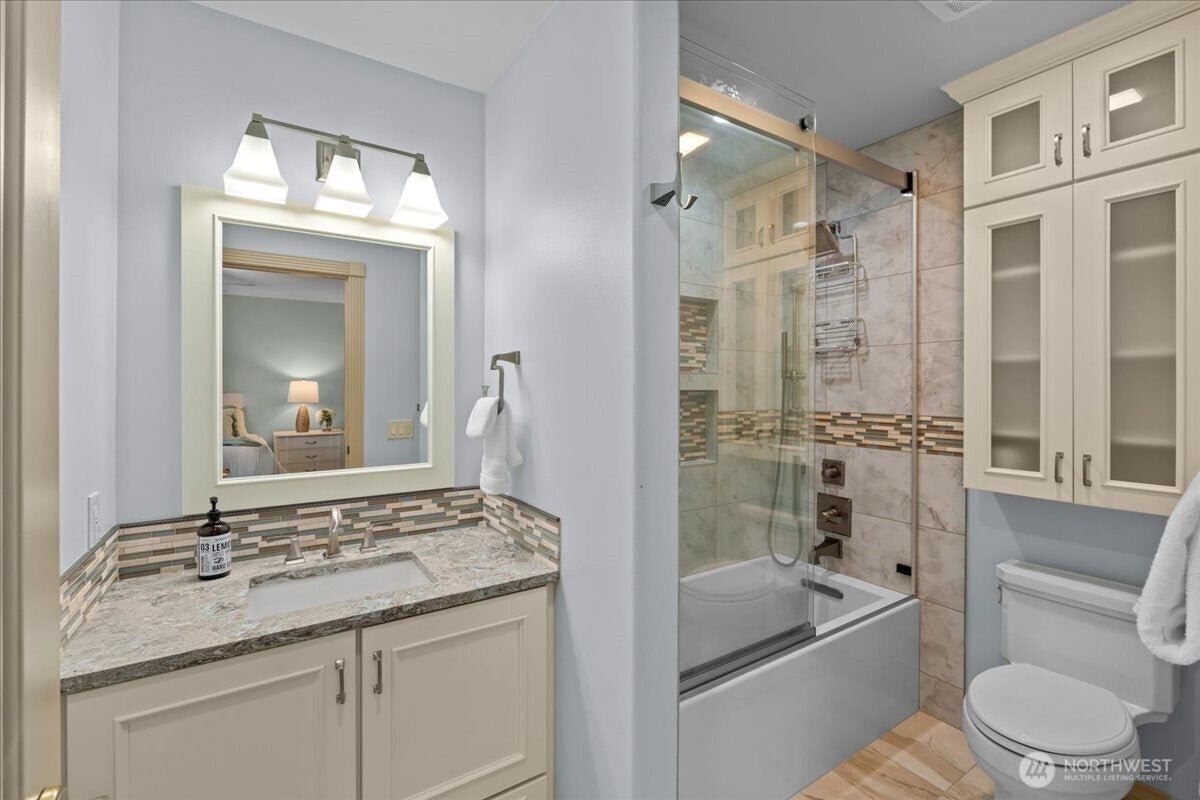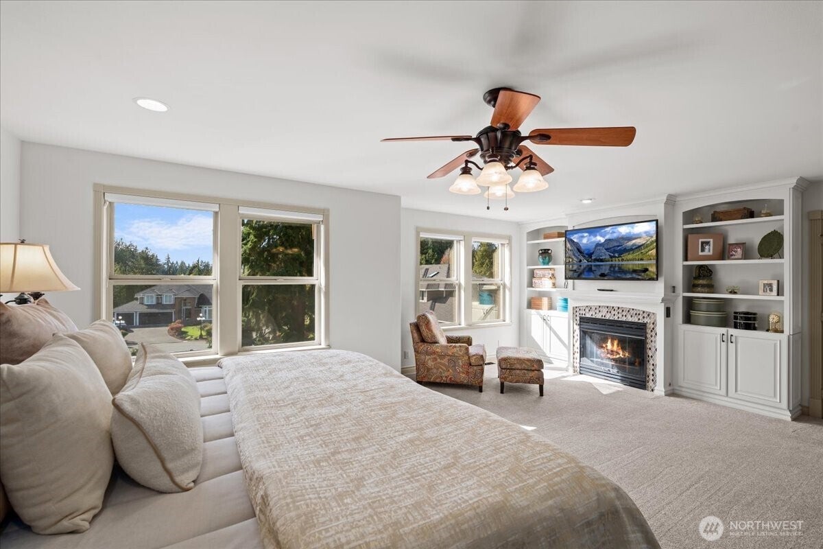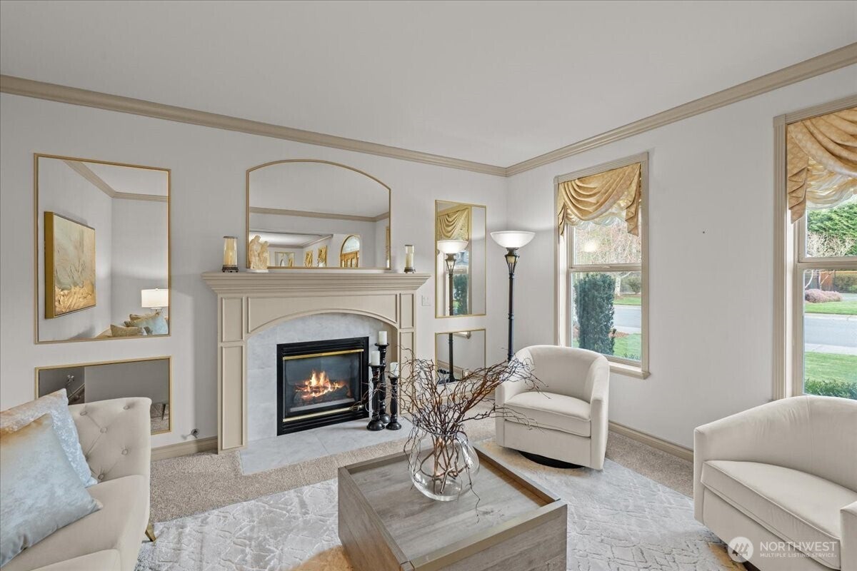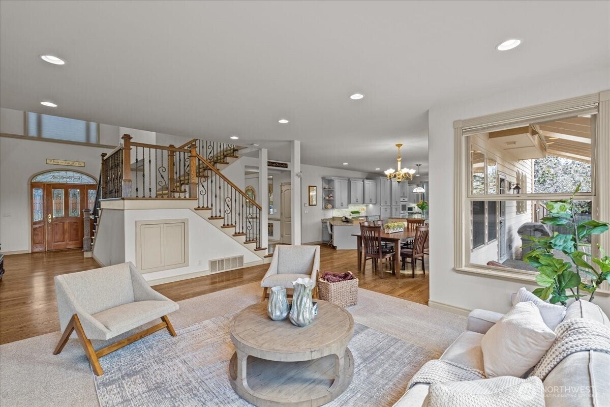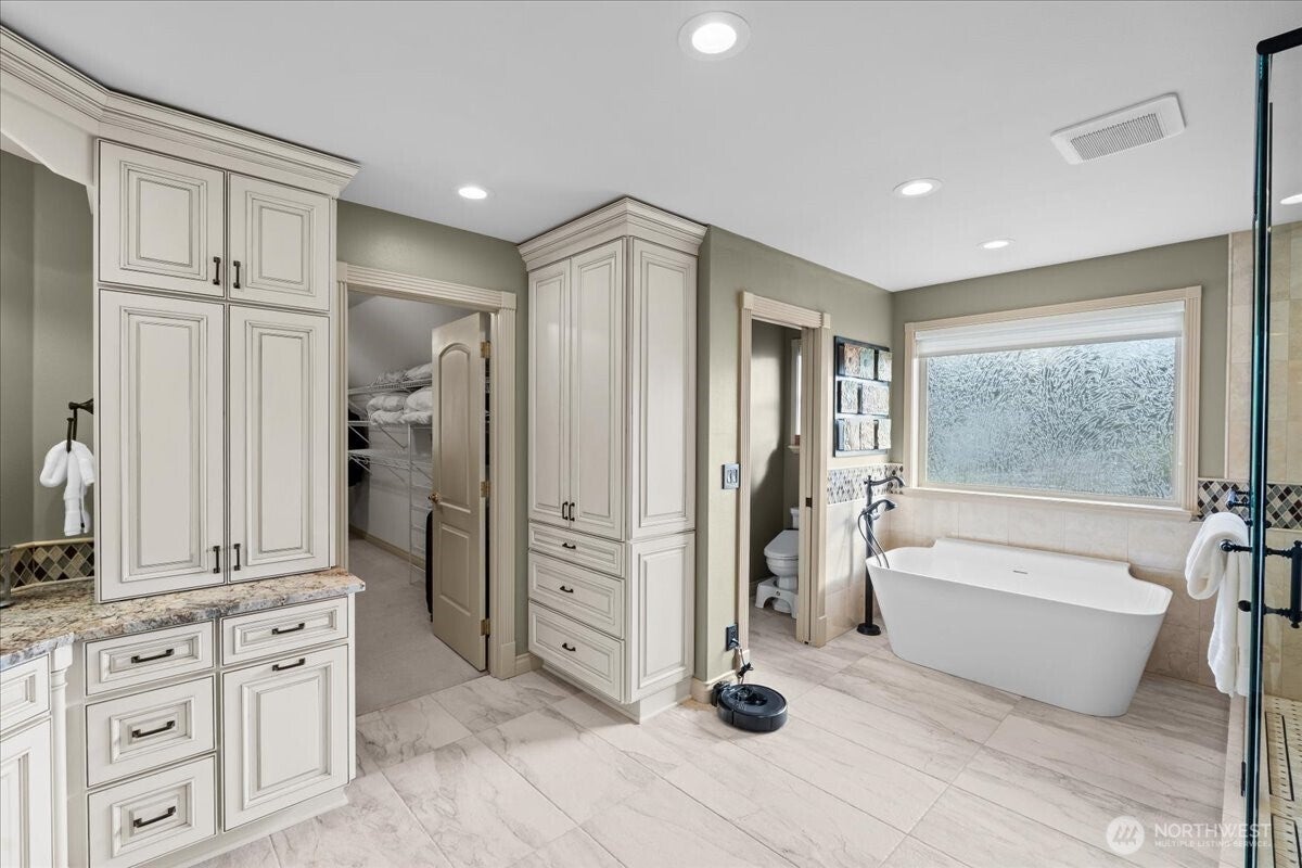 Ideally located in the desirable Gold Creek community an east facing grand entry welcomes you. This beautifully updated custom home offers a versatile floor plan creating a warm inviting atmosphere. Extensive hardwoods flow to the stunning remodeled kitchen with an abundance of cabinets featuring granite counters, upgraded appliances, designer lighting & an 11 x 5 center island - blending style & function. The open concept family room is enhanced by large west facing windows & floor to ceiling custom cabinetry. Rounding out the main level are formal living & dining rooms plus a private office with its own fireplace ideal for either a media or game room. Upstairs are four spacious secondary bedrooms (one with an en-suite) a laundry room & three quarter bath. The luxurious primary suite doubles as a retreat with its own sitting area & fireplace - the private spa-inspired bath has a heated tile floor, a freestanding tub, double sized shower & enormous walk in closet. The 3 car garage features professional grade amenities - perfect for the hobbyist. A private staircase off the main floor hall leads to a standing height crawl space of over 500 sq ft. Beautiful backyard is fenced with an entertaining size patio & covered area. The Gold Creek community offers parks, playfields, sport courts, & greenbelt walking trails. Only minutes to Willis Tucker County Park; plus a short jaunt to Mill Creek shopping or historic downtown Snohomish. This home is an exceptional property.
