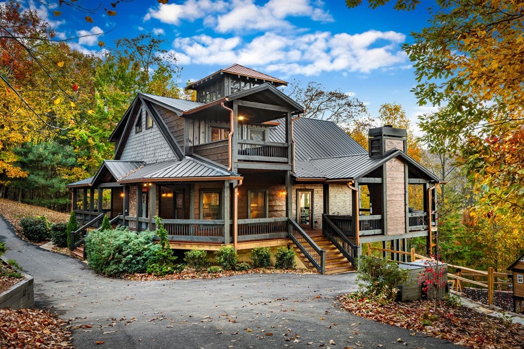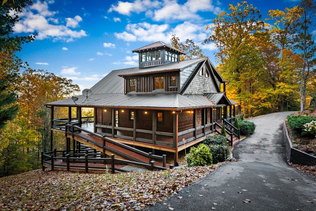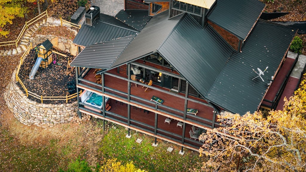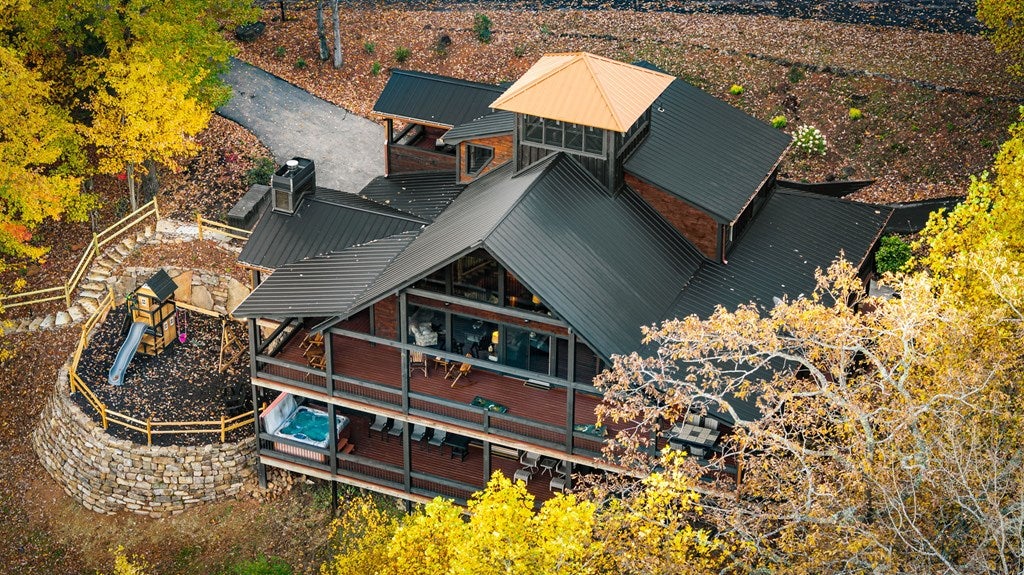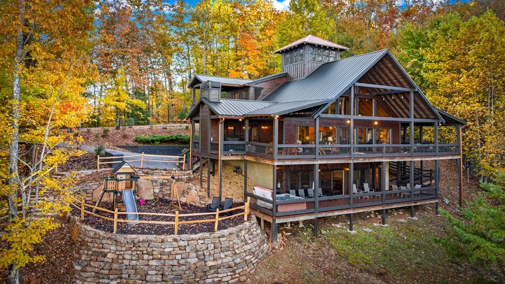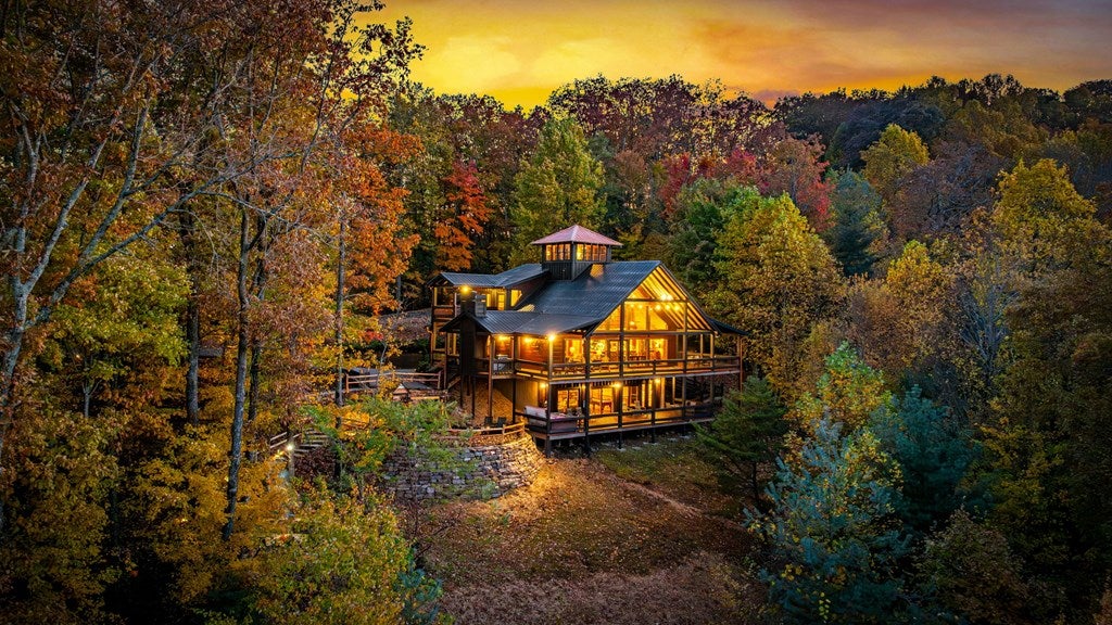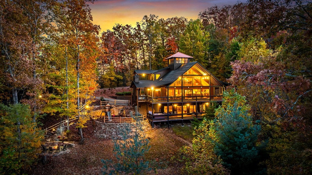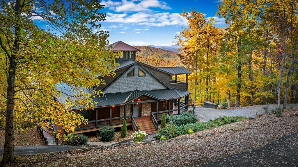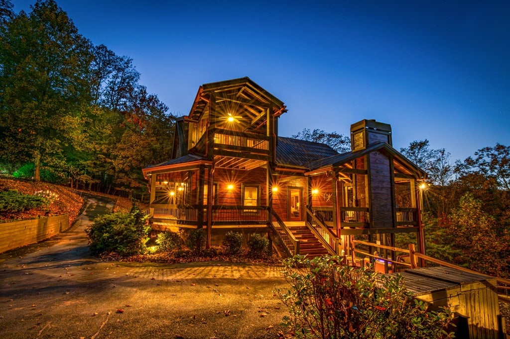Live in luxury with this long range mountain view, Blue Ridge home, located in the heart of the Aska Adventure area! Just a stones throw from all the tubing, kayaking, fly fishing, gem mining, hiking and biking you could ask for! With 4 bedrooms, 3 baths, 4 stories of entertainment, escaping will not be the problem. The problem? Not wanting to leave. Lets begin with the lower level; 2nd living space, fireplace and TV, pool and poker table, mini wet bar, two bedrooms (one perfect for the kids with two queen double bunk beds), walk out covered deck with outdoor eating and a brand new hot tub. On this level you can also walk directly out to the kids playground then meander your way down the stone steps to the flagstone fire pit. On the main level, youve got a full kitchen with granite countertops, new backsplash, expansive kitchen island w/seating for 4, dining room table that seats 8, open concept w/floor to ceiling windows, living space with a propane fireplace, guest bedroom and bath. With 4 exterior exits onto the full wrap around deck, entertaining will be a breeze; loaded with seating, room for corn hole and an outdoor propane fireplace/grill. The upper level is equipped with a large bedroom and ensuite bathroom with a jetted tub and separate shower. The walk-in closet and additional storage room in the back is perfect to store everything you need or keep as an owners closet for rental purposes. Just outside the bedroom is a dedicated workspace, with a view. From there you can take the winding metal staircase up to the fourth level for a 360 degree view of the surrounding mountains. 2025 improvements; new metal roof, 4 bedroom septic tank, retaining wall and playground, flagstone fire pit with stone steps, paint and stain on every inch of the exterior, hot tub, landscaping and erosion control under the lower deck. This home has been turned into an immaculate property and income producing short term rental. Schedule and appointment today to see this beauty!