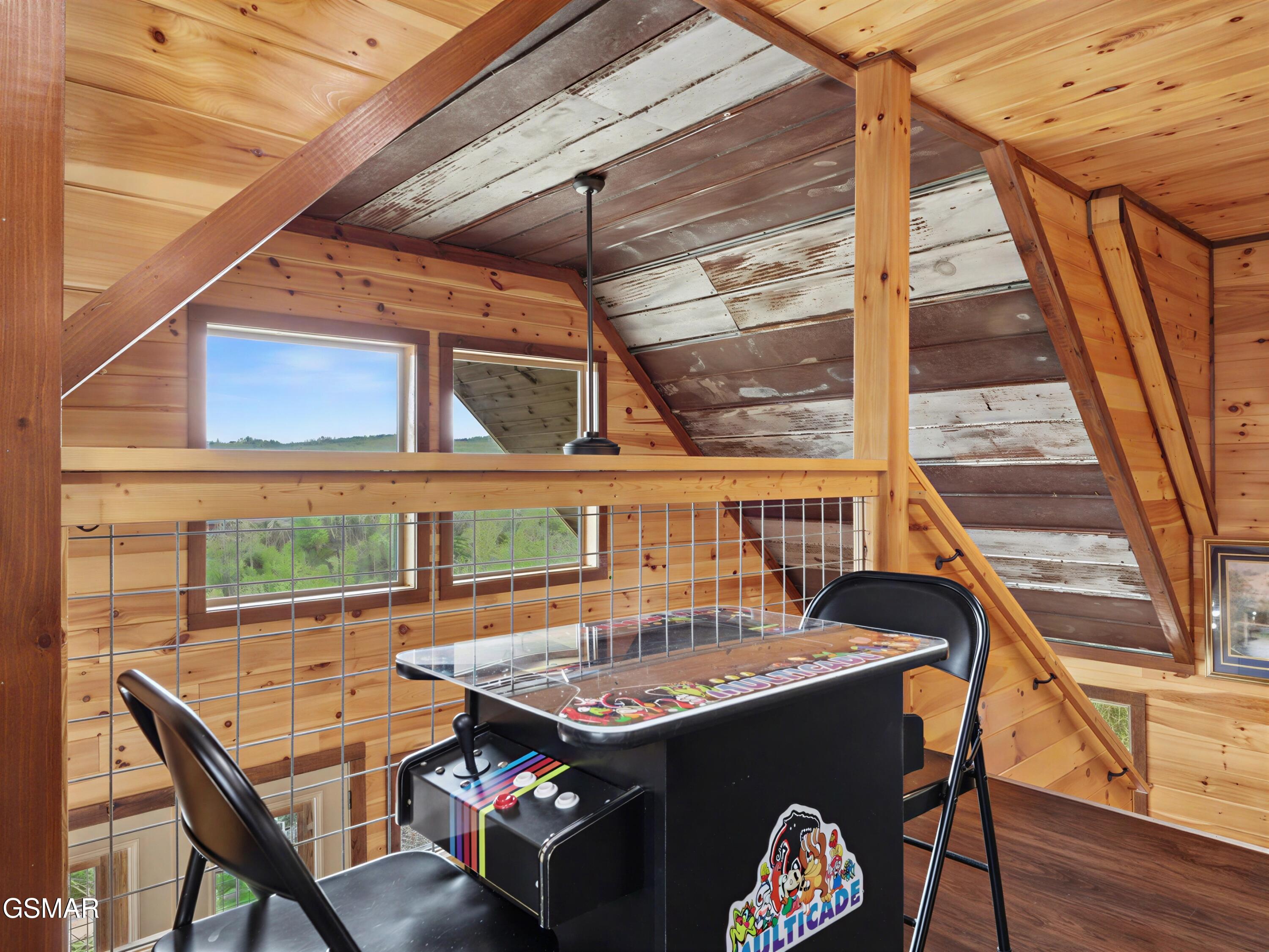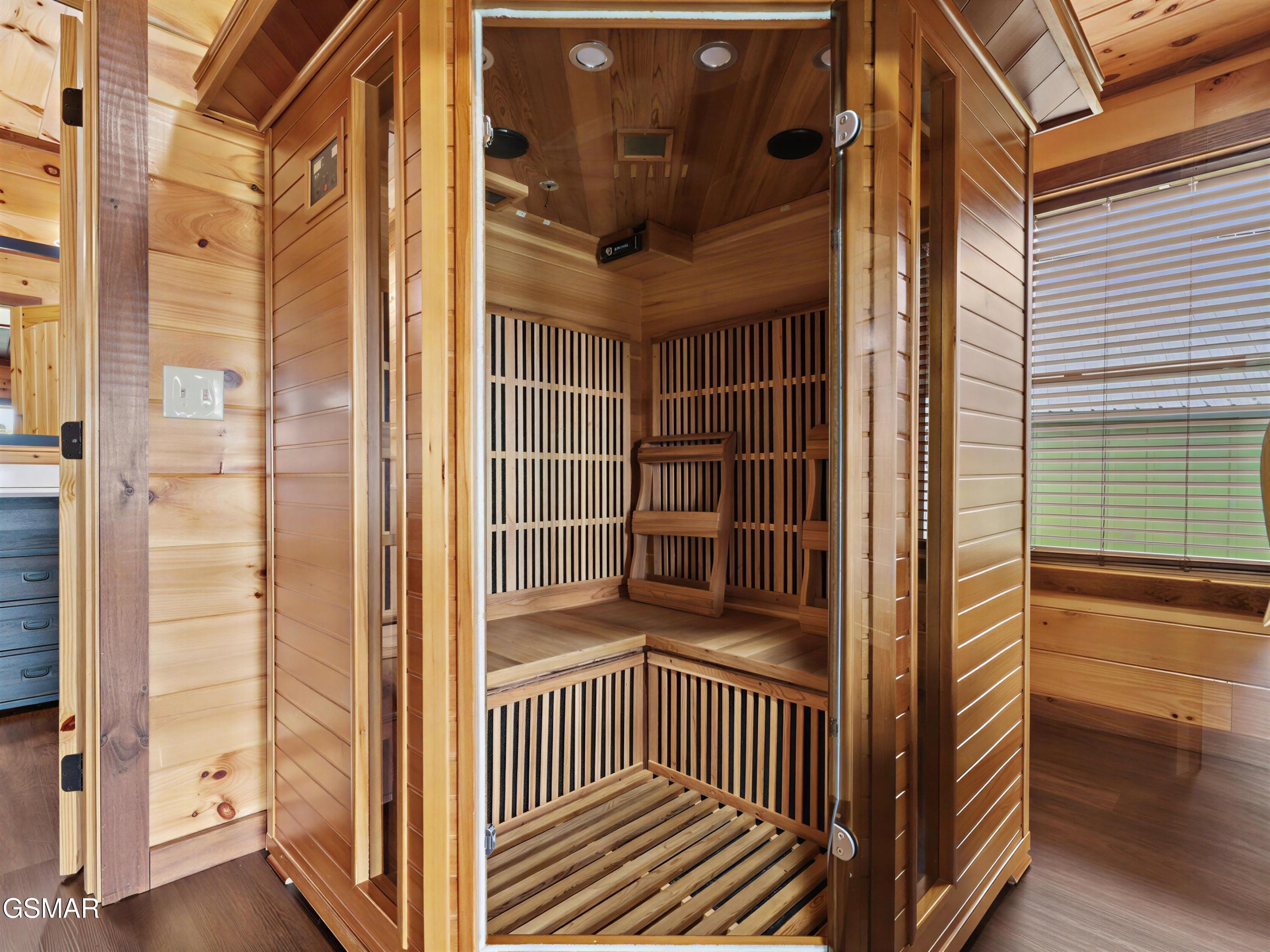 Location, location, location! This 2023 built cabin offers modern mountain luxury just minutes from Gatlinburg and the Great Smoky Mountains National Park, making it an excellent investment opportunity. The interior features LVP flooring, Hardy board accents, and tongue and groove pine throughout, creating a warm and durable space guests love. The gourmet kitchen includes granite countertops, stainless steel appliances, and ample storage. Guests will enjoy premium amenities including a hot tub, sauna, and arcade games, all of which enhance booking appeal and rental performance. With beautiful mountain views and a turnkey layout designed for comfort and entertainment, this property is well positioned for strong rental income or use as a personal getaway.
