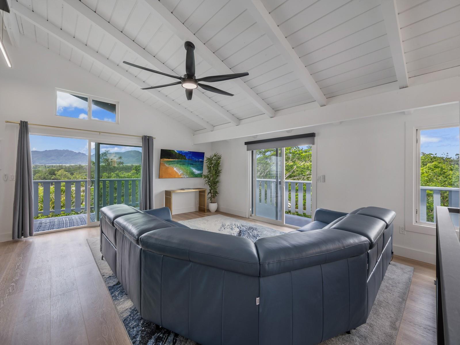 Perched above Launani Valley in a private gated community, this exceptional Mililani estate offers rare 1-acre privacy with sweeping valley and sunset views over the Waianae mountains. Designed for effortless island living, this home blends spacious interiors with incredible outdoor living.