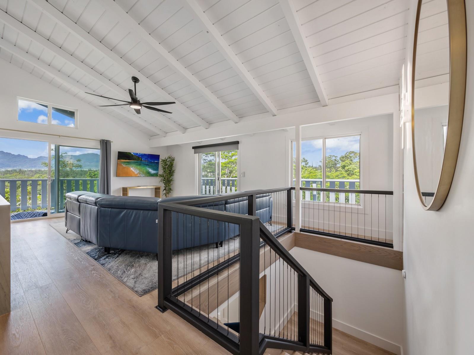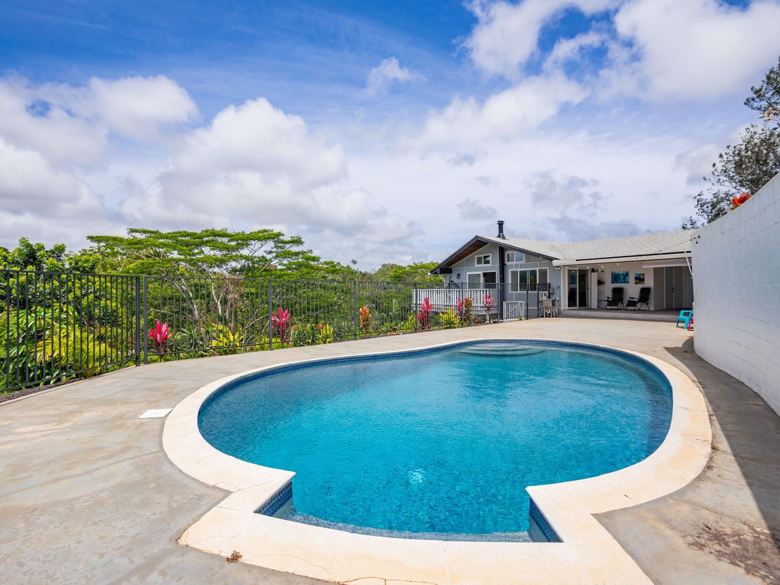 Perched above Launani Valley in a private gated community, this exceptional Mililani estate offers rare 1-acre privacy with sweeping valley and sunset views over the Waianae mountains. Designed for effortless island living, this home blends spacious interiors with incredible outdoor living. Vaulted ceilings create a bright, open feel in the main living areas, while the fully renovated kitchen features quartz countertops, brand-new appliances, custom cabinetry, and smart lighting. The primary suite opens directly to a wraparound lanai, where panoramic valley views become part of your everyday routine. Outside, the home transforms into a private retreat. A saltwater pool overlooking the valley, expansive entertaining space, and outdoor shower create the perfect setting for sunset gatherings and weekend relaxation. Additional highlights include split AC throughout, a newly remodeled spa-inspired primary bath with soaking tub and walk-in shower, and plenty of parking. A rare opportunity to own space, privacy, and unforgettable views in the heart of Mililani. Contact Sellers Agent for link to the video tour!