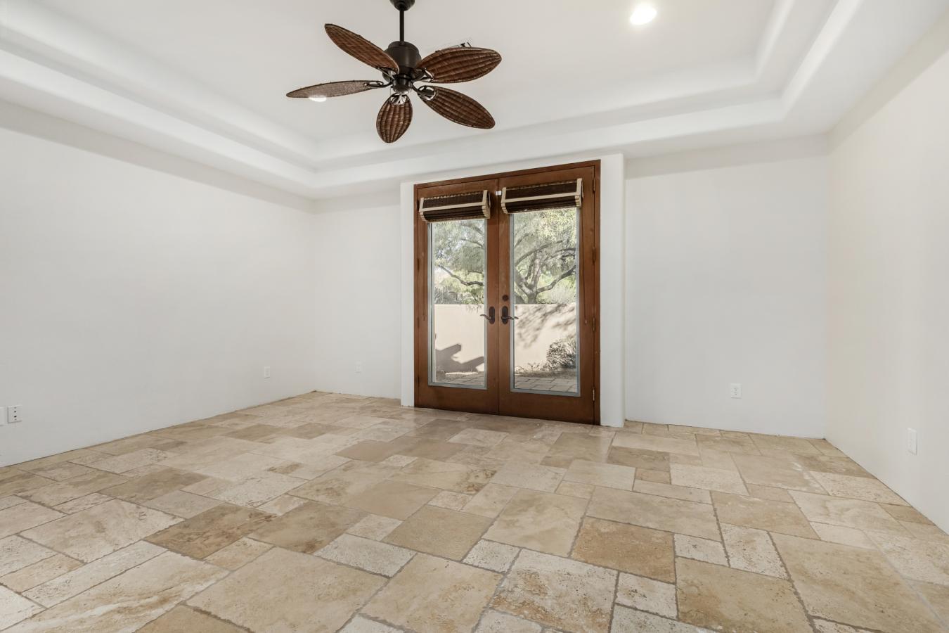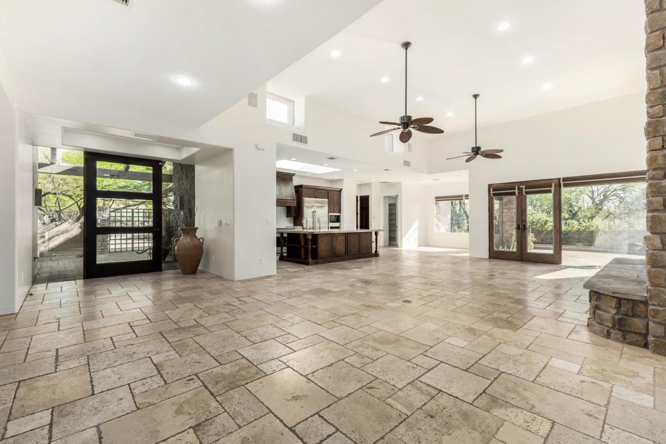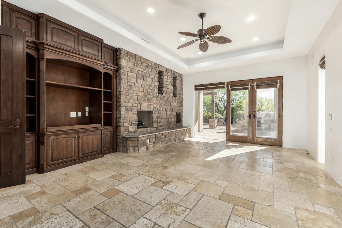 Tucked at the end of a quiet cul-de-sac in the prestigious guard-gated community of The Boulders, this home captures the essence of private desert luxury living. Set on a premium lot with no neighbors behind, the property opens to breathtaking boulder formations and sweeping mountain views that create a truly peaceful and secluded setting. Inside, soaring ceilings and dramatic floor-to-ceiling windows flood the home with natural light and perfectly frame the stunning desert landscape from the main living areas and primary suite. The open layout feels both spacious and inviting, designed to take full advantage of indoor-outdoor living. The kitchen has been elevated with a brand new, never-used GE Monogram appliance package, offering a true high-end culinary experience with top-tier finishes and a large island that anchors the space. The primary suite is a private retreat with its own fireplace, expansive windows, and direct access to the backyard. Each additional bedroom offers its own patio access through glass doors, along with walk-in closets and full bathrooms, providing comfort and privacy for guests or family. Step outside to a resort-style backyard where desert landscaping, natural boulder views, and a sparkling pool come together to create an incredible outdoor experience. Multiple patio spaces offer the perfect setting to relax, entertain, and enjoy Arizonas year-round sunshine in total privacy. This is a rare opportunity to own a home that truly embraces the beauty, serenity, and lifestyle of Carefree living.