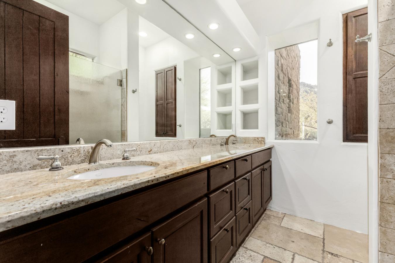 Tucked at the end of a quiet cul-de-sac in the prestigious guard-gated community of The Boulders, this home captures the essence of private desert luxury living. Set on a premium lot with no neighbors behind, the property opens to breathtaking boulder formations and sweeping mountain views that create a truly peaceful and secluded setting.