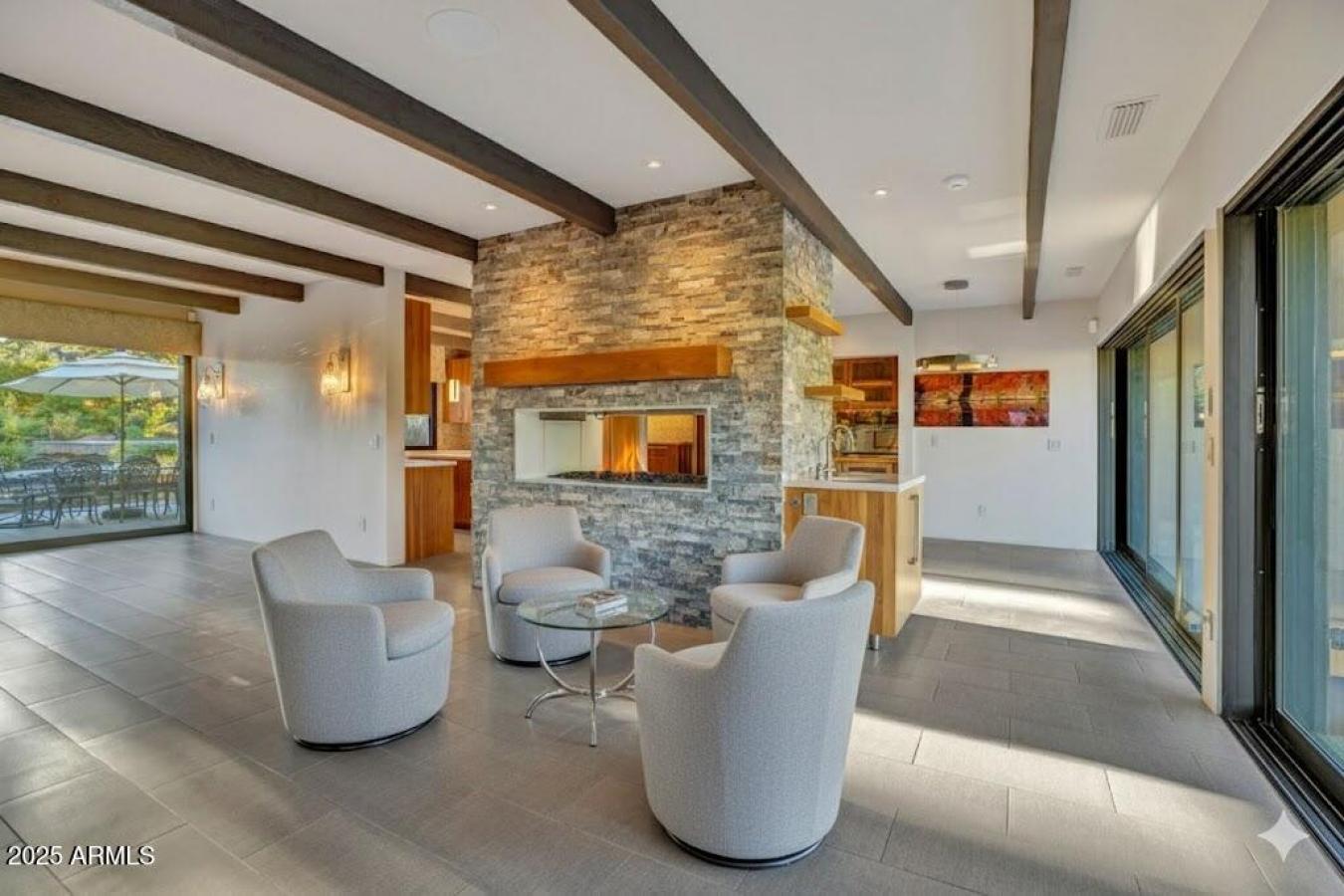 Some homes impress. This one disarms you. Tucked into Sedonas coveted Soldiers Pass Corridor, this privately gated architectural masterpiece sits quietly on nearly an acre, bordering the National Forest where privacy isnt a feature, its the default. The setting is pure serenity: koi pond and stream, curated landscaping, & PANORAMIC RED ROCK VIEWS that feel too cinematic to be real. Inside, light takes center stage. Four retractable glass walls erase boundaries between interior & landscape, leading to multiple decks, patios, and a resort-caliber saltwater pool & Hot Tub. Every space flows: designed for quiet mornings and long, wine-soaked sunsets. The chefs kitchen doesnt whisper luxury; it declares it: Wolf range, Sub-Zero refrigeration, dual wine fridges, and Bespoke cabinetry that marries craftsmanship with restraint. Beyond it, open living spaces glow with warmth & proportion, grounded in comfort yet built for entertaining. Outdoors, tranquility reigns. Dog-friendly screened in patio, fenced gardens, and shaded sitting areas turn the entire property into a livable resort. Whether its coffee by the pond or dinner under cathedral-red skies, this home delivers the Sedona lifestyle in its purest form: peace, privacy, & polish. Another AHA about this property: RV Parking available and hidden from neighbors in addition to your 2 car garage. Even the utility room delights with 2 stackable washer and dryers. A total of 3 bdrm/3 bath and 2 office spaces. A rare opportunity in a rare corridor. Sumptuous living, without compromise. * Price includes outdoor furnishings with the exception of fire table and 8 chairs, and white umbrella and stand, and 2 huggable chairs on east deck. *LR couch, 2 swivel chairs and coffee table available as a separate bill of sale for 2000 Other notables: Incredible Koi pond and stream upon entry- you can even name the fish! Two sets of stackable washers and dryers;steam oven in kitchen; lower level 2 bedrooms and 2nd office taken down to the studs with new electrical/ plumbing; fully screened pet friendly AZ room on lower level added for pet safety; fully fenced lot and gated entry: RV parking screened from neighbors: North gate opens to access TeaCup And Skidmark Trails. 6 Month Minimum rentals in Shadow Estates. * This is a MUST SEE HOME IN PERSON to feel the views, the tranquility and the privacy!