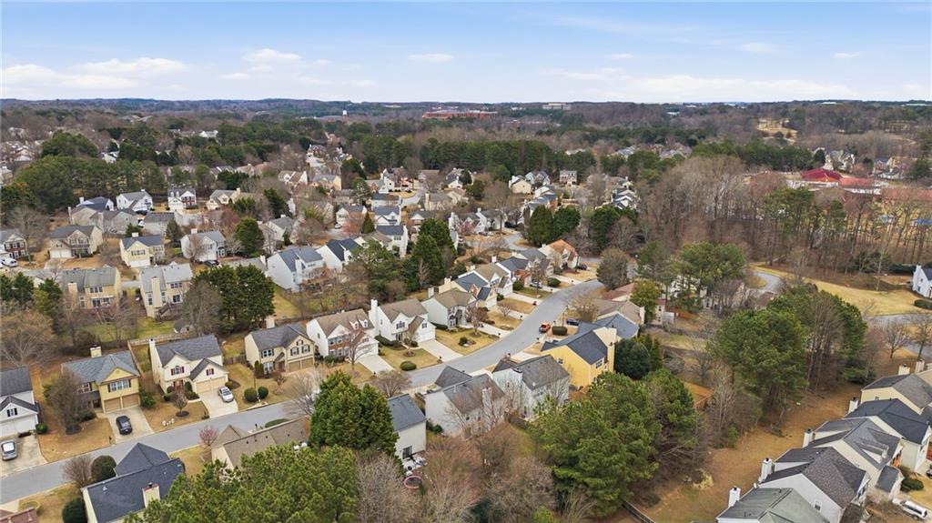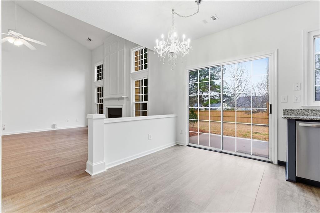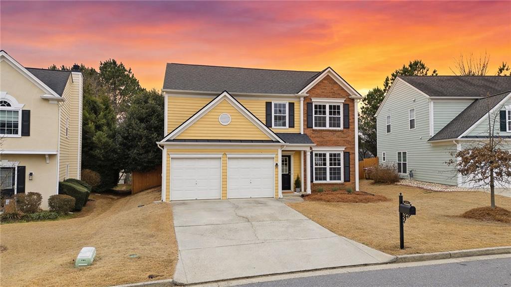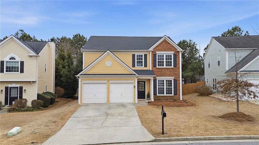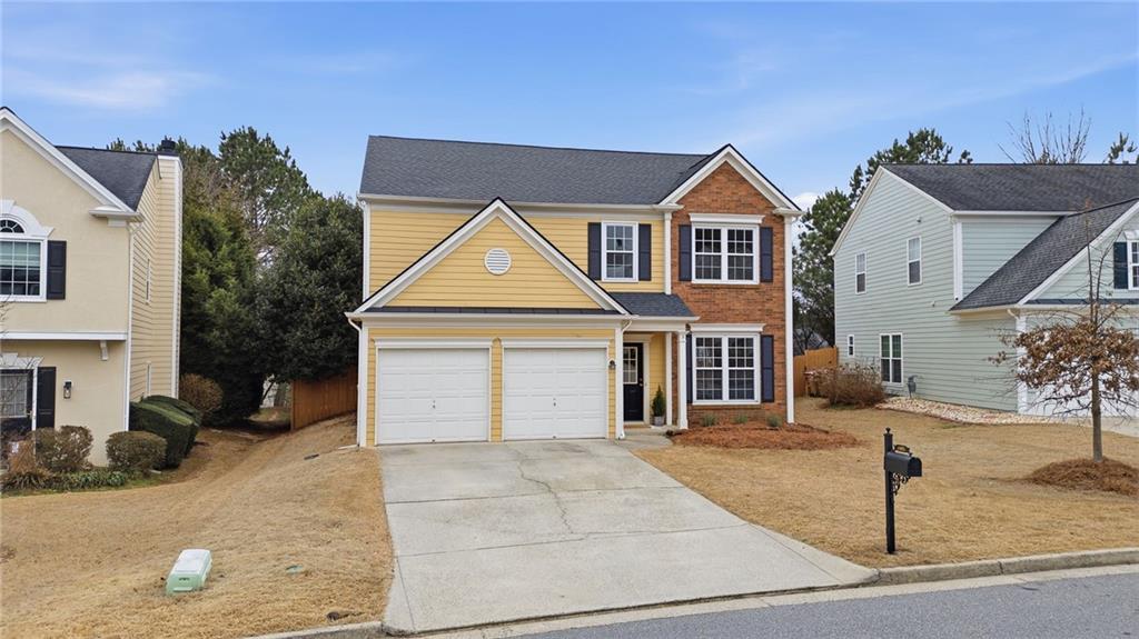 Lovely home in a prime Johns Creek location, tucked in an active swim and tennis community. Featuring charming brick accents, a covered front entry, two-car garage, and fenced, tree-lined backyard. Major updates provide peace of mind, including a new HVAC (2025), newer roof and hot water heater (5 years), and newer windows (6 years). The interior has been freshly painted throughout for a clean, move-in-ready feel. The welcoming foyer opens to a formal dining room with classic wainscoting and an adjoining formal living or flex space. The layout flows seamlessly into the eat-in kitchen with granite countertops, stainless steel appliances (all included), and direct access to the patio, perfect for entertaining. The adjoining two-story family room impresses with a floor-to-ceiling fireplace and a wall of windows that fill the space with natural light. A convenient half bath completes the main level. Upstairs, the vaulted primary suite features French door entry into the bath, a double vanity with makeup counter, and a relaxing garden tub. Two additional bedrooms and a full bath provide comfortable accommodations for family or guests. Enjoy outdoor living within your private, fenced backyard. Community amenities include a lap pool, shallow area for little swimmers, tennis courts, pickleball, playground, basketball, and more. Ideally located just minutes from the hospital, top-rated schools, shopping, dining, golf courses, parks, recreational facilities, and major highways for an easy commute.