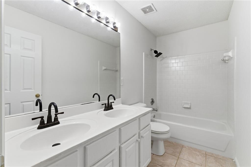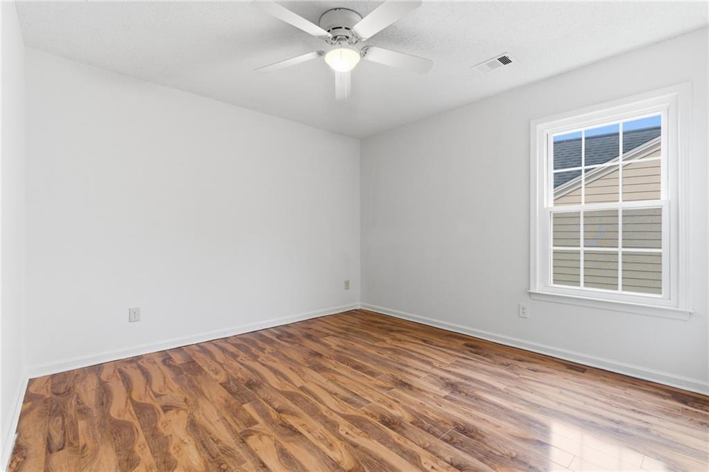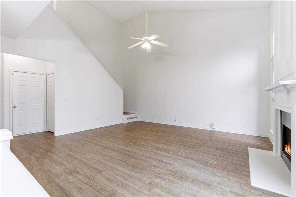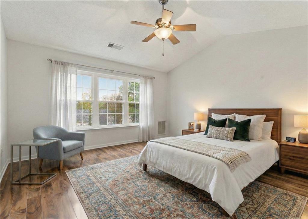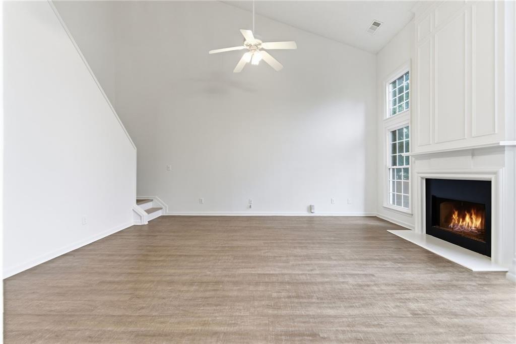 Lovely home in a prime Johns Creek location, tucked in an active swim and tennis community. Featuring charming brick accents, a covered front entry, two-car garage, and fenced, tree-lined backyard. Major updates provide peace of mind, including a new HVAC (2025), newer roof and hot water heater (5 years), and newer windows (6 years). The interior has been freshly painted throughout for a clean, move-in-ready feel. The welcoming foyer opens to a formal dining room with classic wainscoting and an adjoining formal living or flex space. The layout flows seamlessly into the eat-in kitchen with granite countertops, stainless steel appliances (all included), and direct access to the patio, perfect for entertaining. The adjoining two-story family room impresses with a floor-to-ceiling fireplace and a wall of windows that fill the space with natural light. A convenient half bath completes the main level. Upstairs, the vaulted primary suite features French door entry into the bath, a double vanity with makeup counter, and a relaxing garden tub. Two additional bedrooms and a full bath provide comfortable accommodations for family or guests. Enjoy outdoor living within your private, fenced backyard. Community amenities include a lap pool, shallow area for little swimmers, tennis courts, pickleball, playground, basketball, and more. Ideally located just minutes from the hospital, top-rated schools, shopping, dining, golf courses, parks, recreational facilities, and major highways for an easy commute.