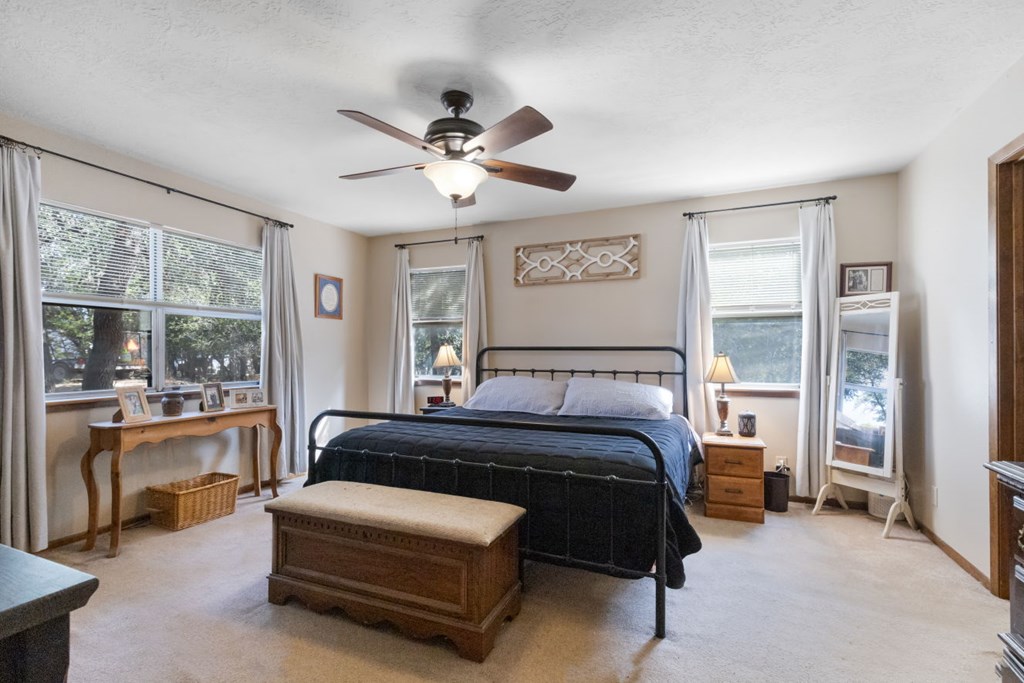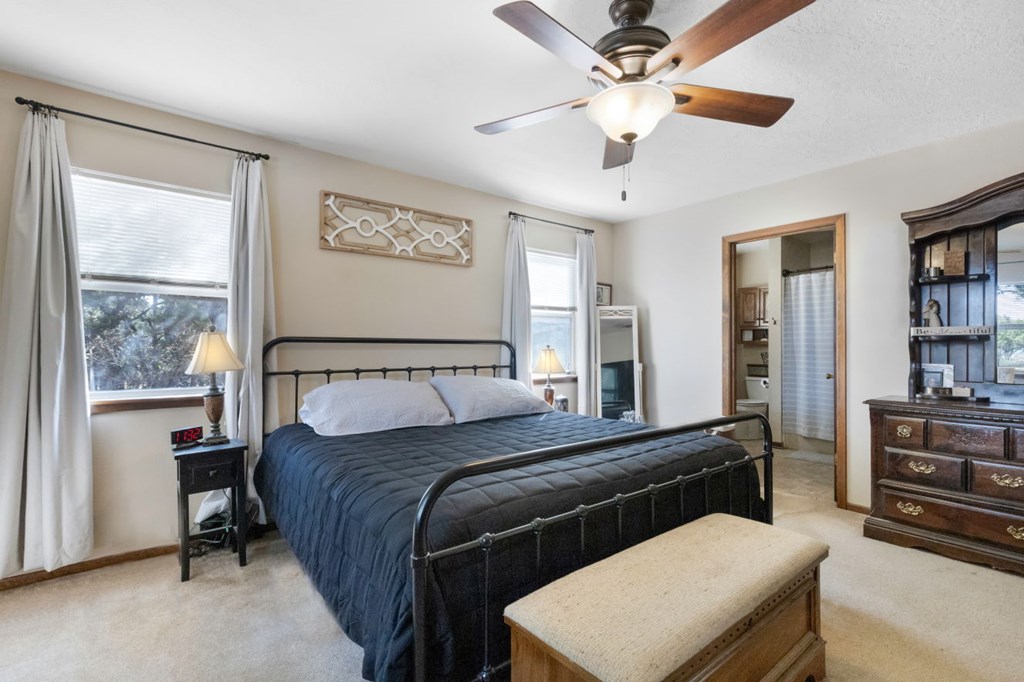 Gorgeous GOLF COURSE BACKDROP! Enjoy main level living in popular Windermere Village! Open & airy floor plan, step inside to a cozy den w/ built-ins, formal dining room conveniently off kitchen and plenty of window light shining in, updated kitchen white cabinets, granite countertops, stainless appliances, breakfast bar, breakfast room, huge great room tall ceilings, full wall of built-ins and gas fireplace, step down sun room with amazing views of the Par 3 golf hole, spacious primary suite, walk-in closet, primary bathroom double vanity, soaking tub, walk-in shower, 2nd bedroom on main level nice separation from primary suite, wait until you see the upper space, listed as 3rd bedroom but current seller used it for tv room lounge area, versatile space, plenty of storage large finished closet and additional floored attic space upstairs, main level laundry room, several good sized closets, utility room, seller just installed new carpet throughout the home, outdoor entertaining space includes wood deck and large paver patio space surrounded with landscaping.