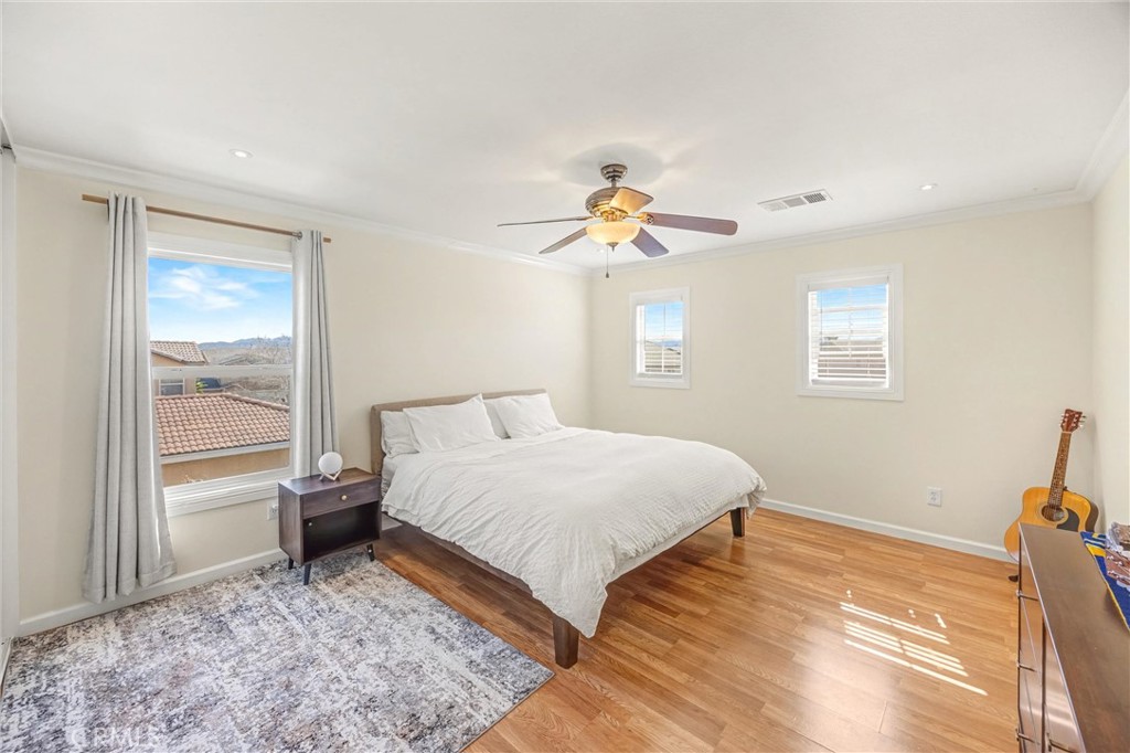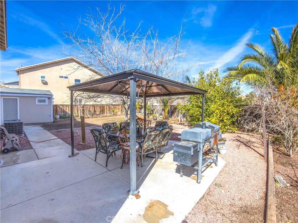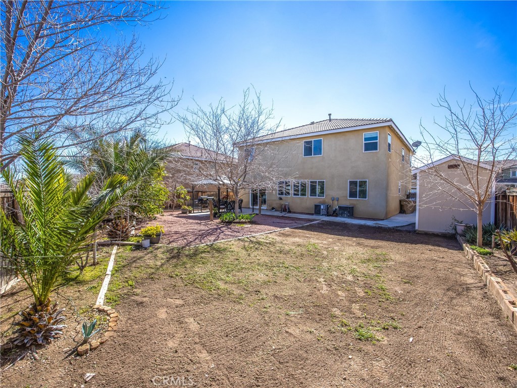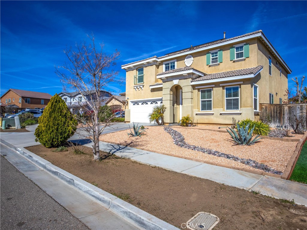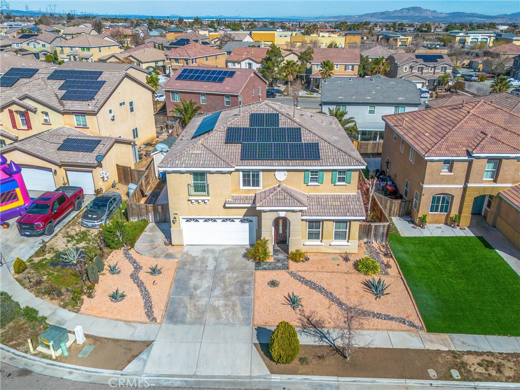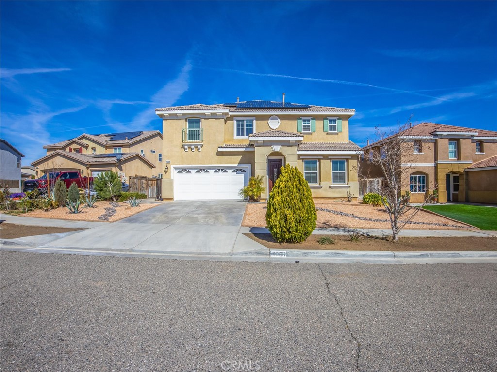 First time on the market! This lovingly maintained home shows true pride of ownership. Located in the heart of the growing city of Hesperia, this home features 4 bedrooms and 2 full bathrooms, including a downstairs bedroom with a 3/4 bathroom—perfect for guests or multi-generational living. There is also a den with potential to be a 5th bedroom, providing flexibility for your needs. The primary suite includes a separate walk-in closet and dual sinks in the primary bathroom. As you walk in, you're welcomed by formal dining and living areas, tile and laminate flooring throughout, and beautiful crown molding that adds a touch of elegance. The large kitchen features granite countertops, an oversized island, and opens into the family room—ideal for gatherings and entertaining. The home is equipped with solar panels that will be paid off at the close of escrow, providing energy efficiency and long-term savings for the future homeowner. Step outside to the backyard, where you'll find a mature lemon tree and a storage shed. The 2-car garage provides additional storage and convenience. The low-maintenance front yard features decorative rock landscaping for easy upkeep and water conservation. Centrally located near Interstate 15, schools, and shopping centers, this home offers both comfort and accessibility. Schedule your private showing today!
