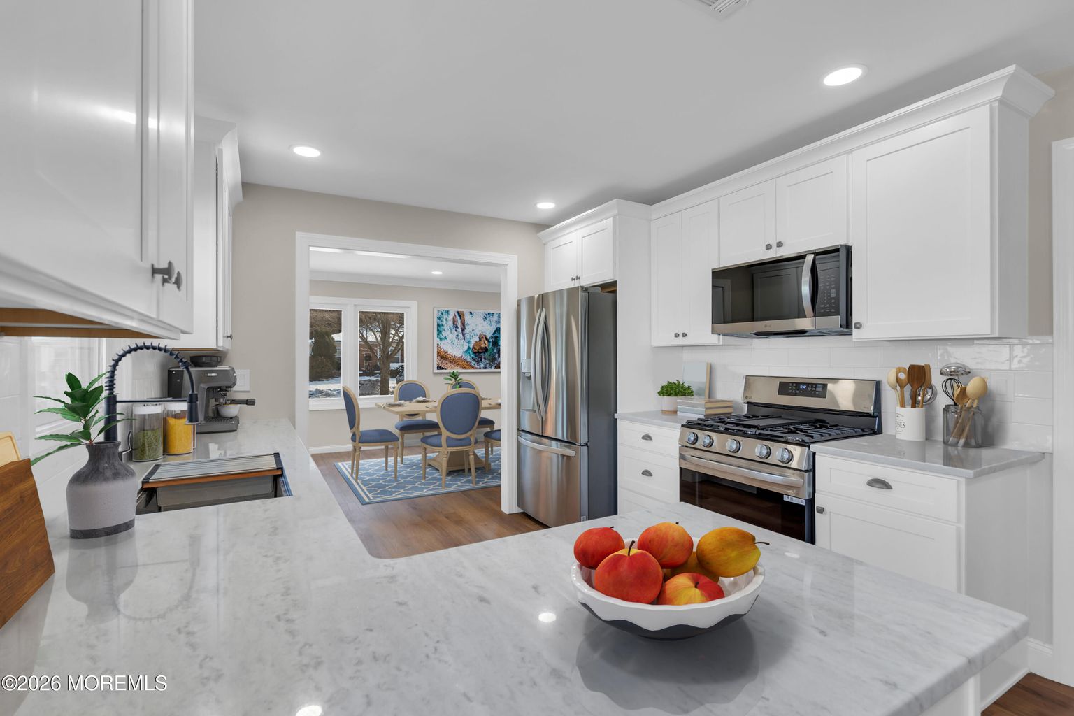 Exquisitely renovated Cape Cod set on an expansive oversized lot, offering four generously sized bedrooms and three and a half spa-inspired baths, including dual primary suites on both the first and second levels.