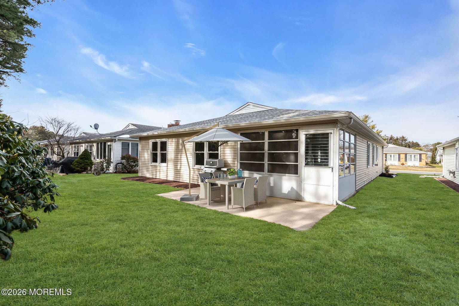 Immediate Occupancy Available. Backs Up To The Woods for Ultimate Privacy! Remodeled 2 Bed 2 Bath Popular Hawthorne Model. From first steps into the home the quality of Craftsmanship will grab your attention. Beautiful classic Shaker cabinets complimented with upgraded Granite countertops, crown molding, ceramic backsplash, custom deep sink and upgraded LG kitchen appliances. Kitchen flows into breakfast nook area with table for 4 and carrys into family room which leads into heated sun room and rear patio. Relax and entertain with large living and dining room both featuring crown molding. Primary Bedroom with outstanding Primary Bath featuring double sink vanity custom tiled shower surround , large linen and walk in closets. Large secondary Bedroom with Jack and Jill entrance into remodeled full bath with Large secondary Bedroom with Jack and Jill entrance into remodeled full bath with custom tile flooring and shower surround with tiled niche. New doors, custom trim-work and waterproof vinyl flooring throughout the home. Gas Heat, New Central Air, recently upgraded tilt wash windows and oversized garage. Great clubhouse amenities including golf course and pool. Please Note: Grass has been enhanced and rooms have digitally staged for illustrative purposes only.