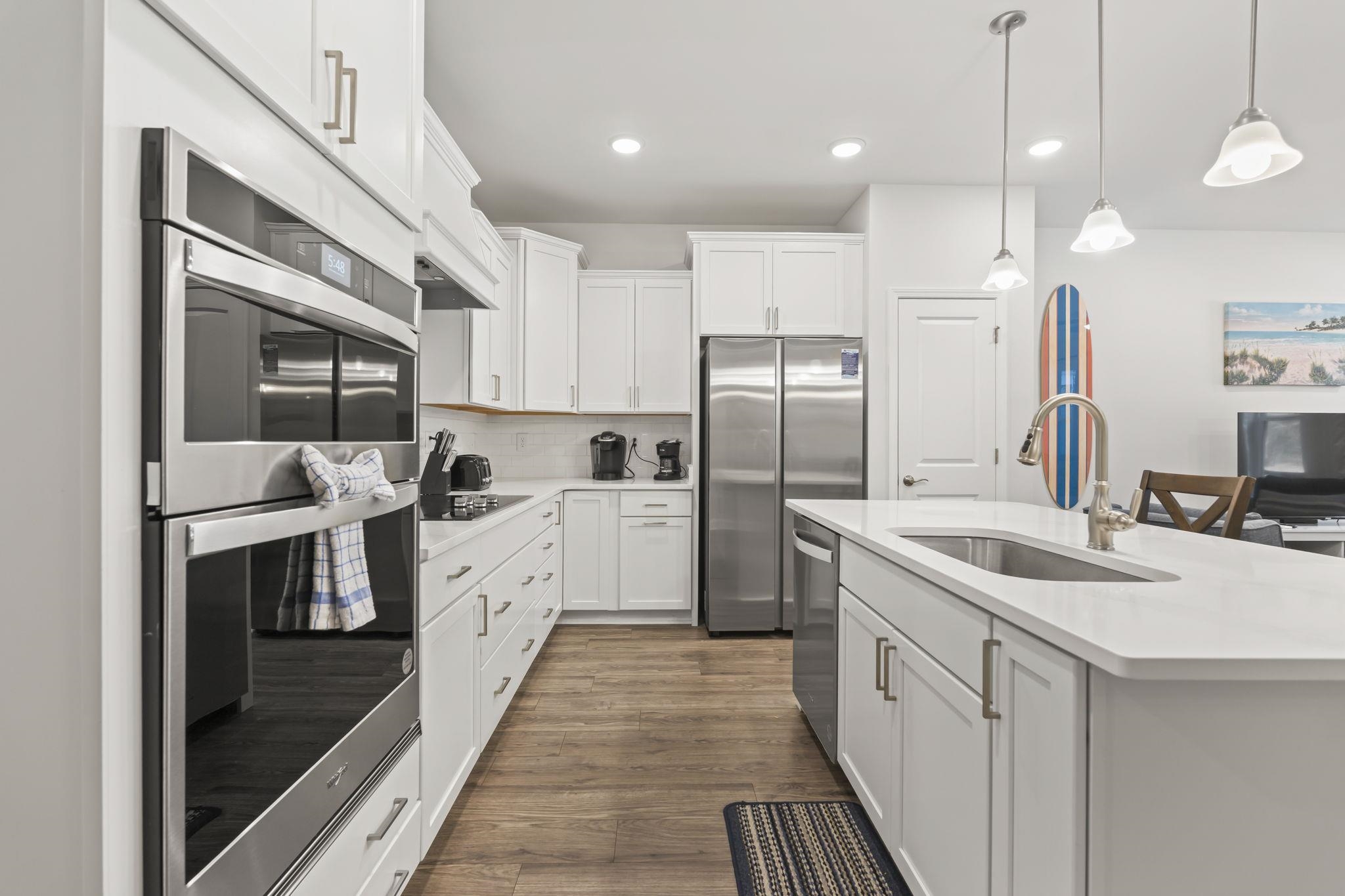 Discover this Corolla Light - Mirage Condo gem, featuring three-bedrooms, three-and-a-half-bathrooms and spanning over 1600 square feet of thoughtfully designed living space. Pull into the carport for dry entry into the ground level, which features a bedroom with an ensuite and laundry facilities. Durable luxury vinyl plank flooring throughout gives an updated feel with practicality.