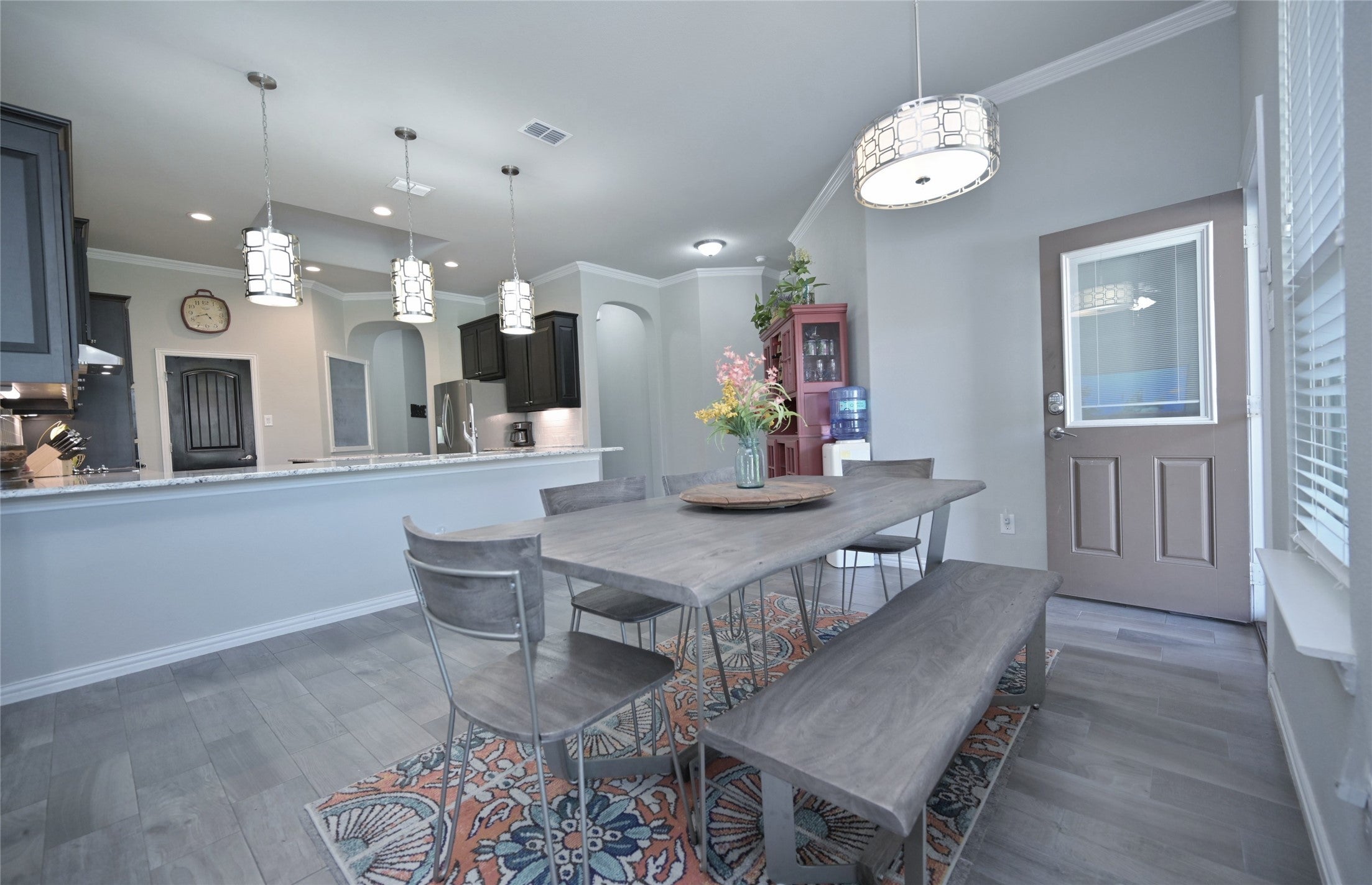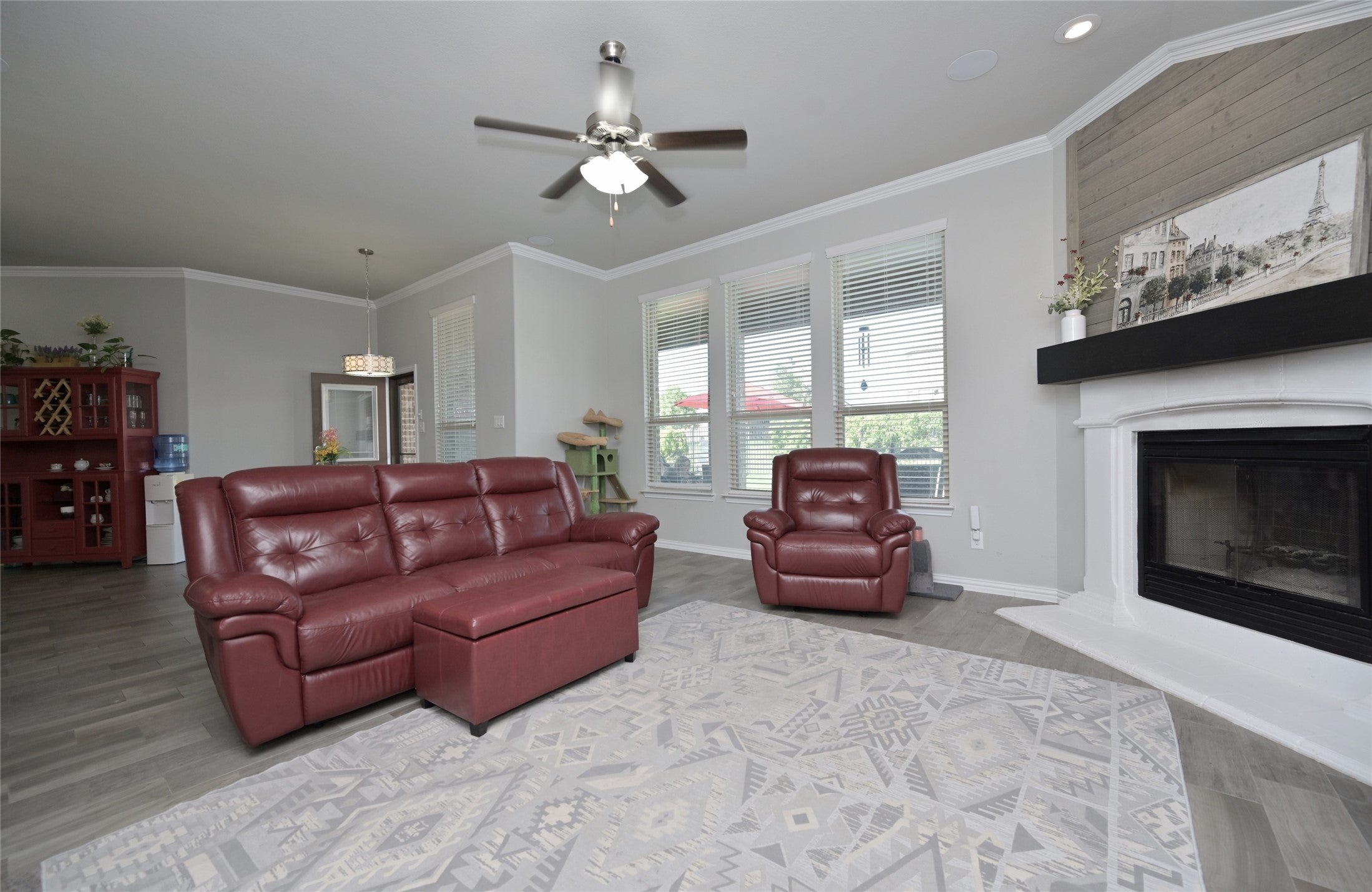 Stunning end-unit townhome offering 4 bedrooms and 3.5 baths with an open-concept layout filled with natural light. The main living area seamlessly connects the living room with natural gas fireplace and kitchen, showcasing wide-plank flooring and gorgeous lighting. Chefs kitchen features white cabinetry with soft close, stainless steel appliances.