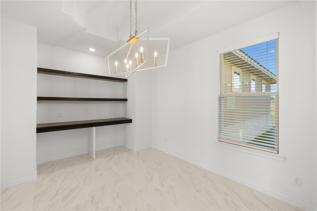 Welcome to Los Cazadores. Country retreats only 7 miles from Hwy 6. This 2148sf home on over an acre will make your dreams come true. Walk in to a beautiful custom entry that leads to a very high cathedral ceiling in the living room. Adorned with a remote floor to ceiling fire place, wood beam, extra large windows and open to a gorgeous kitchen. You will love cooking and entertaining in the spacious kitchen featuring a large, eat at, island. Love some coffee from your built in coffee bar (or us as a dry bar). Enjoy a designated office and formal dining room. The primary has a huge shower and large closet with built in drawers and shelves. The back patio is massive and will have a very nice grill installed. This is living large!