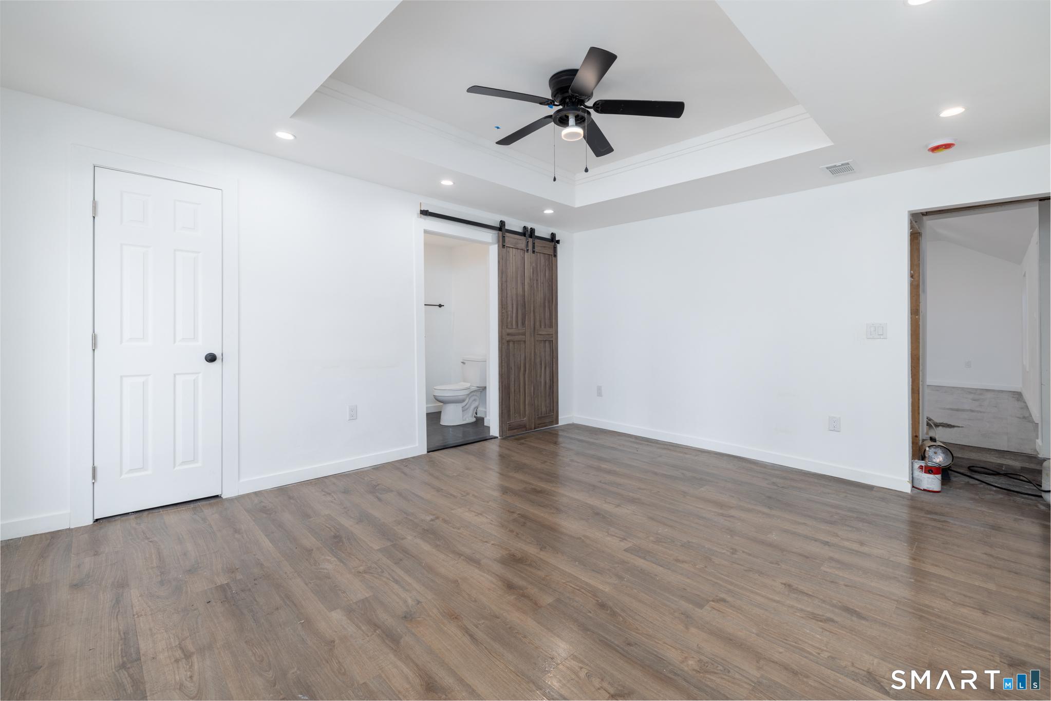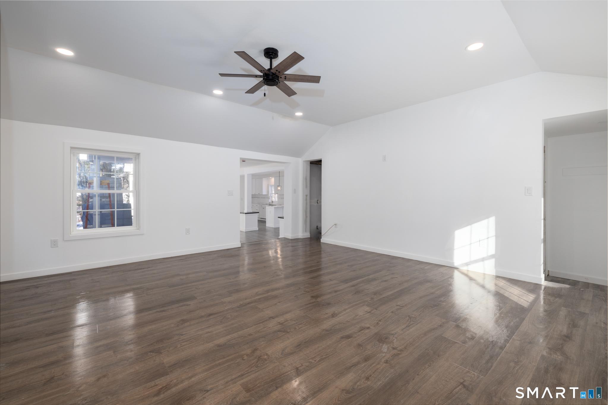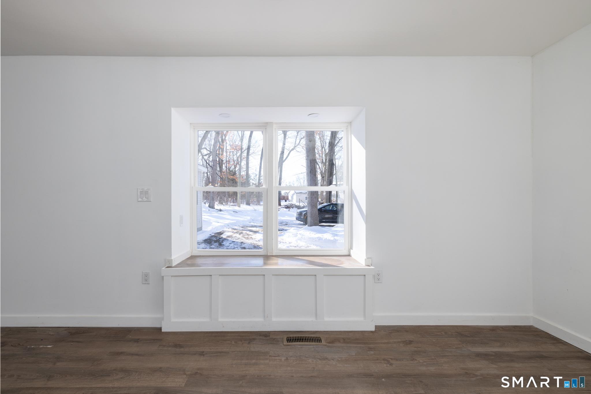 Not one expense spared with this gorgeously renovated and built-up Ranch with 4 bedrooms and 2 full bathrooms. Upon entrance, youre greeted with an open concept kitchen, sitting room and dining room with slider out to the back patio overlooking the level backyard with lots of space for entertainment...play, sports and/or a pool for the summer if thats what you desire. Enjoy a quiet space for yourself, or maybe your beloved pet, with the window bench overlooking the front yard. The large family room features a vaulted ceiling, recessed lighting and plenty of room for big, comfy furniture to cozy up on and watch your favorite movies and shows. Adjacent to the family room is your primary suite with french doors out to the back patio, a full bath with tiled stand-up shower, and 3 closets for his and hers and linen closets. On the opposite side of the family room are 3 more generous size bedrooms, a 2nd full bathroom with tub and a tucked away toilet, and lastly a convenient, dedicated laundry room. All new plumbing, new electrical, new ductwork, power and cable run to each room, new roof, new windows and doors, new siding, nothing to do but move in! Aside from being on a quiet road with only one other home on it, and being bordered by the baseball field and North Haven Middle and High School, this has also been approved for a 2 car attached garage. No major expenses for a long time so all you have to do is move in!