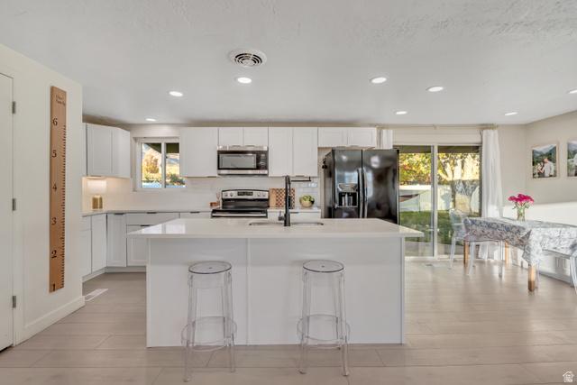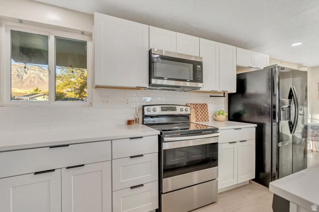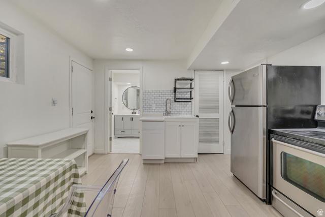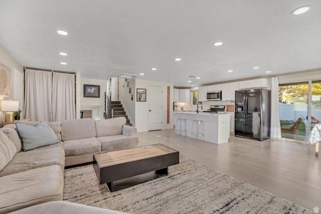 SELLER OFFERING 5,000 in concessions towards closing costs/rate buy down or window installation in the basement 3,000 Credit being offered for front yard to have sod laid. This home was beautifully remodeled in 2022, and a new roof installed in 2024! Its located in an excellent East Orem neighborhood! Separate entrance basement with a mother in law apartment potential. Fully equipped to be used as one. There are 2 non-conforming bedrooms in the basement. Large open concept great room with adjoining family room, dining room and kitchen featuring laminate hardwood flooring throughout. White cabinetry, subway tile backsplash, stainless steel appliances, farmhouse sink, black hardware, and recessed lighting complete the modern look. Stylish bathrooms with custom tile, striking lighting and fixtures, and a neutral color scheme. Fresh exterior paint with carport and RV parking, plus a large backyard with covered patio! Square footage figures are provided as a courtesy estimate only and were obtained from previous owners measurement. Buyer is advised to obtain an independent measurement.