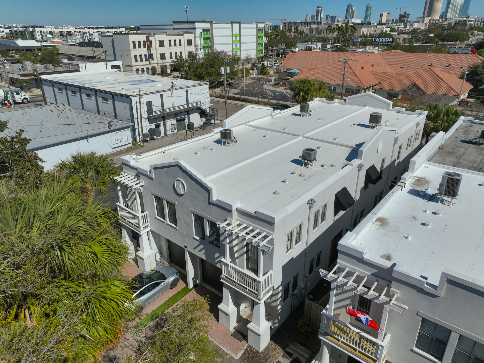 Live the Hyde Park Lifestyle in this stylish end-unit townhome with a private fenced yard, 1-car garage driveway, and low HOA of just 225/month. Perfect for an owner-occupant, investor, or AirBnB opportunity. This 2 Bedroom, 2.5 Bath home features 10-ft ceilings, crown molding, engineered hardwoods. The open great room flows into a large upgraded kitchen with granite countertops, stainless steel appliances, tile backsplash, and dishwasher, ideal for entertaining. Glass sliders open to your private fenced area, perfect for pets and BBQs. Upstairs offers a versatile office spot and laundry closet with washer & dryer included. The spacious primary suite includes a cozy sitting area, Juliet balcony, dual vanity, separate shower and tub, and a huge 9 x 7 walk-in closet. The secondary bedroom is privately located with its own attached full bath. Additional highlights: new fencing, freshly painted exterior, attached garage, not in a flood zone, and an affordable low HOA. Walk to Hyde Park Village, Bayshore Blvd, restaurants, coffee shops, nightlife, and Cine Bistro. Just a few minutes to Downtown Tampa, Armature Works, Riverwalk, Julian B. Lane Park, and Davis Islands. Walkable. Stylish. Prime Hyde Park living.