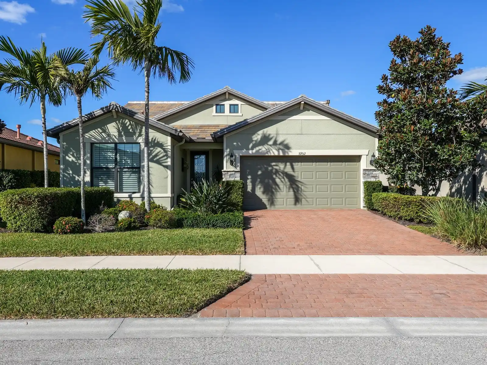 Embrace unparalleled comfort and convenience in this beautifully maintained single-family home nestled within a gated community. Constructed in 2016, this residence showcases the popular Pulte-Divosta Abbeyville FLEX floor plan, with 2-3 bedrooms and 2 baths. The potential for a third bedroom can be easily realized by adding a wardrobe and installing a suitable door. Recently repainted, this home features a stunning custom Crystalline front door that leads into a foyer adorned with elegant hardwood flooring, which extends seamlessly into the flex room. The wood flooring is also in both the front bedroom and the primary suite. The elegance of crown molding and plantation shutters adds a touch of refinement to almost every room. Venture through the arched entryway into the great room, where tiled flooring sets the tone for relaxation and entertainment. At the heart of the inviting open kitchen is a granite center island that offers ample storage and invites gatherings with its bar seating. Appliances, including a high-efficiency natural gas range, are included, paired with beautiful wood cabinetry, a spacious built-in pantry, and stylish pendant lighting. The living and dining areas effortlessly flow through sliding glass doors to a covered, screened lanai with delightful paver bricks. The primary en suite serves as a tranquil retreat at the back of the home, boasting tray ceilings and a personal bath with granite countertops, dual sinks, quality cabinetry, a water closet, and a walk-in shower with tile and a glass door. The nearby laundry room provides a convenient walk-in area for belongings, while additional space awaits in the drop-zone entryway from the generous two-car garage. Take note of the lovely curb appeal: a tile roof, a brick paver driveway, and a lush, maintenance-free lawn and landscaping warmly welcome you. Explore the amenities of Sandhill Preserve, featuring a stunning resort-style clubhouse set amidst beautifully landscaped grounds. Residents enjoy access to inviting sidewalks, a fitness center, community spaces, ample patio seating, a fire pit, barbecue areas, a spacious cabana, a swimming pool, and a spa—all designed for leisurely living. Tennis courts and a central mail station complete this welcoming community. This gated enclave in Palmer Ranch has no CDD fees and is situated within an A-rated school district, making it one of Sarasota's prime locations. Enjoy easy access to the Legacy Trail, top-notch golf courses, I-75, and an array of shopping and dining options, all just minutes away from the stunning white sandy beaches of Siesta Key!