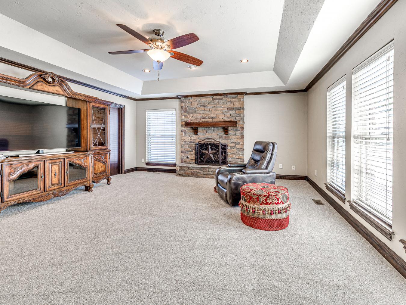 This Gorgeous Executive Home is on ONE Level with 3632 total square feet, 4 Beds, 3 Baths, 2 Living Areas, & a 3 Car Garage. Updates have been done including a Large Island with an open concept floorplan opening up the Large Kitchen, Island, Living Room, Breakfast Nook, & Formal Dining. There are 2 Living Room areas and 2 Fireplaces with Gas Logs in each of the 2 Living Rooms. ROOF replaced in 2024 & Full Guttering with Gutter Guards, Huge Kitchen with Stainless Steel Appliances, Pull-Out Shelving, Massive Island, Storage Galore, Double Ovens, Pantry, New Dishwasher (2023). This Home has been Maintained Meticulously & is Pristine: Brand new Carpet installed in Master/Primary Bedroom & Main Living Room Jan 12, 2026. Master Bedroom & Living Rooms had Glass Doors replaced in 2021. Both Hot Water Tanks replaced: one in Nov 2025 & one in Nov 2021, and both HVAC units replaced in August 2021 with Trane Units, Fence replaced in 2021 with Metal Poles. Garage painted & LED lights added. Soffit lights 2021 (front & east side added). Seller would like to close in the middle of April or after.