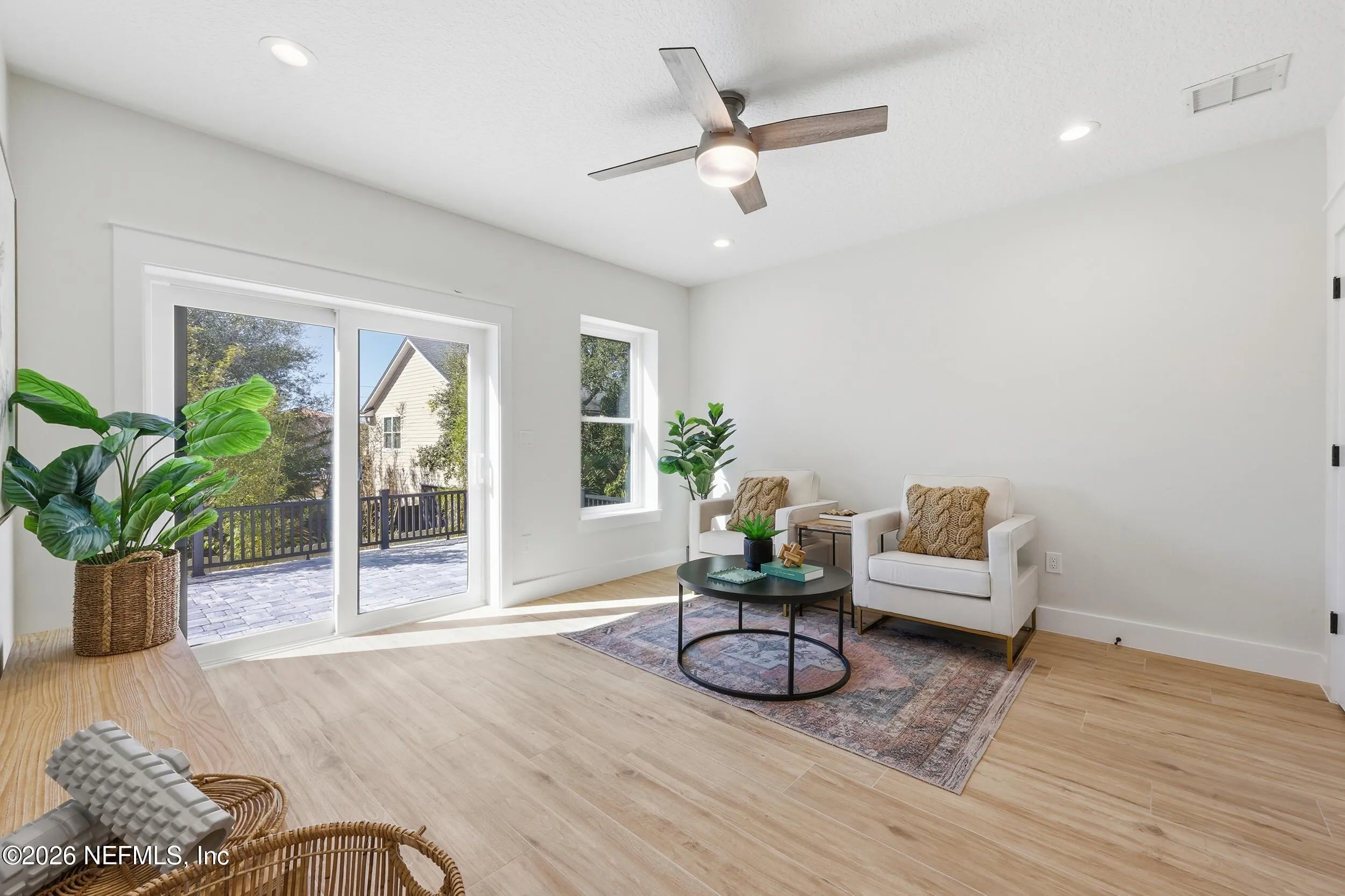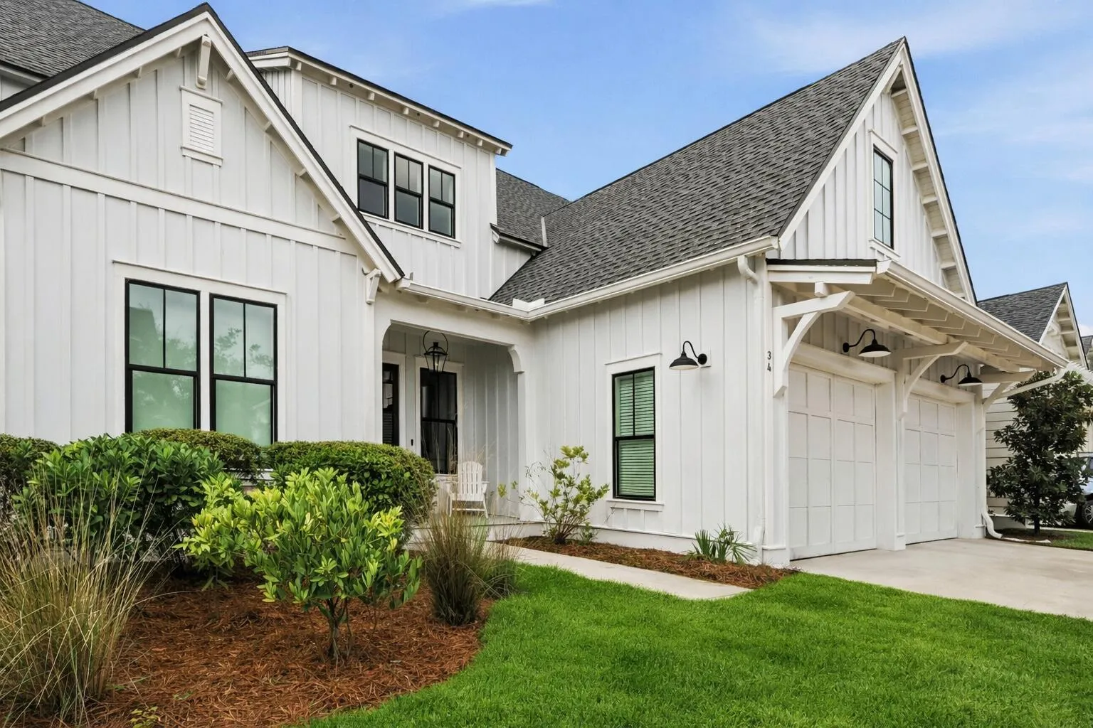 Recently built coastal home offering modern design and relaxed beach living located just steps from the ocean and a short walk to Beaches Town Center. A flexible floor plan with primary suite options on both levels. Open kitchen with white shaker cabinets, granite countertops, and stainless steel appliances. Plank tile flooring on main level. Covered front and rear balconies provide outdoor living spaces. Built for efficiency with Low-E windows, spray-foam insulation, Hardie Board siding, and a metal roof. Brand new brick-pavers have been installed in the driveway and exterior walkways. A detached two-car garage set up for EV charging (charger not included) is located behind the home. Brand new artificial turf was installed in the front yard. The design for the approved swimming pool is included in the pictures.