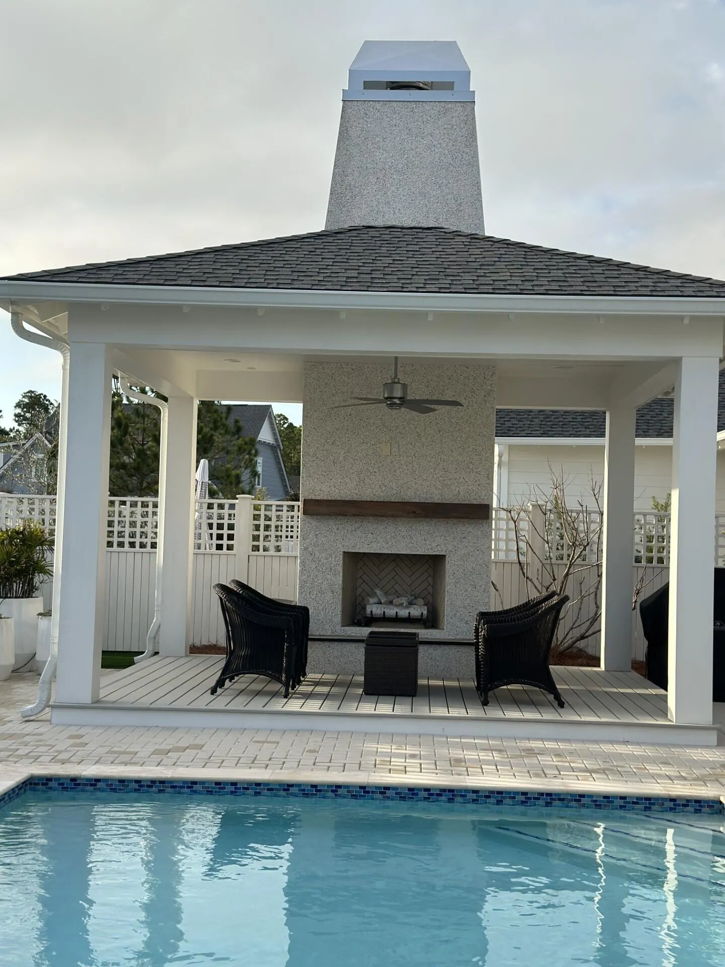 Welcome to the Rosecliffe II by Romair Homes - a beautifully crafted single-level residence that offers an elevated blend of coastal charm and modern sophistication in the sought-after Powell Landing East neighborhood of the Watersound Origins community. This 4-bedroom, 4.5-bathroom home spans 2,609 SF and features 12 ceilings throughout and engineered white oak flooring, creating a sense of grandeur and effortless elegance from the moment you enter. Designed for both everyday comfort and elevated entertaining, the open-concept living area is anchored by a modern yet cozy 42 fireplace with a stucco chimney. A wall of 10 PGT sliding glass doors blurs the line between indoors and out, leading to a generously sized covered porch, expansive pool deck, and a cabana with fireplace - an inviting backdrop for relaxing evenings and social gatherings. The private backyard is a true sanctuary, featuring a gunite saltwater pool with integrated spa and a spacious paver pool deck with plenty of space for lounging in the sun. Inside, the chefs kitchen is a true showpiece with stained white oak cabinetry, champagne plumbing fixtures, Silestone quartz countertops, and top-of-the-line GE Monogram appliances, blending high-end performance with designer sophistication. Each of the four bedrooms has its own ensuite bathroom with designer tilework and illuminated shower niches for added ambiance as well as a spacious closet. With its unique architectural appeal, thoughtfully selected finishes, and an emphasis on indoor-outdoor connection, the Rosecliffe II offers the perfect balance of beautiful design and inviting atmosphere. Estimated Completion: January 2026. Experience refined coastal living in one of Watersound Origins most sought-after neighborhoods nestled alongside Lake Powell. The Watersound Origins community offers an unparalleled lifestyle in South Walton - exceptional amenities, notoriously friendly and welcoming atmosphere, zero short-term rentals, and close proximity to all that 30A and Inlet Beach has to offer. Enjoy the zero-entry pool, playground, sports courts, and fitness center at the Village Commons, play a round of golf or foot golf at the Origins Golf Course, or take a walk along the many miles of walking and biking trails that wind all throughout the neighborhood! The new Watersound Town Center located at the entrance to the community offers several fantastic dining options (casual and formal), medical services, Starbucks, Publix, a Pavilion that hosts events year round, and more!