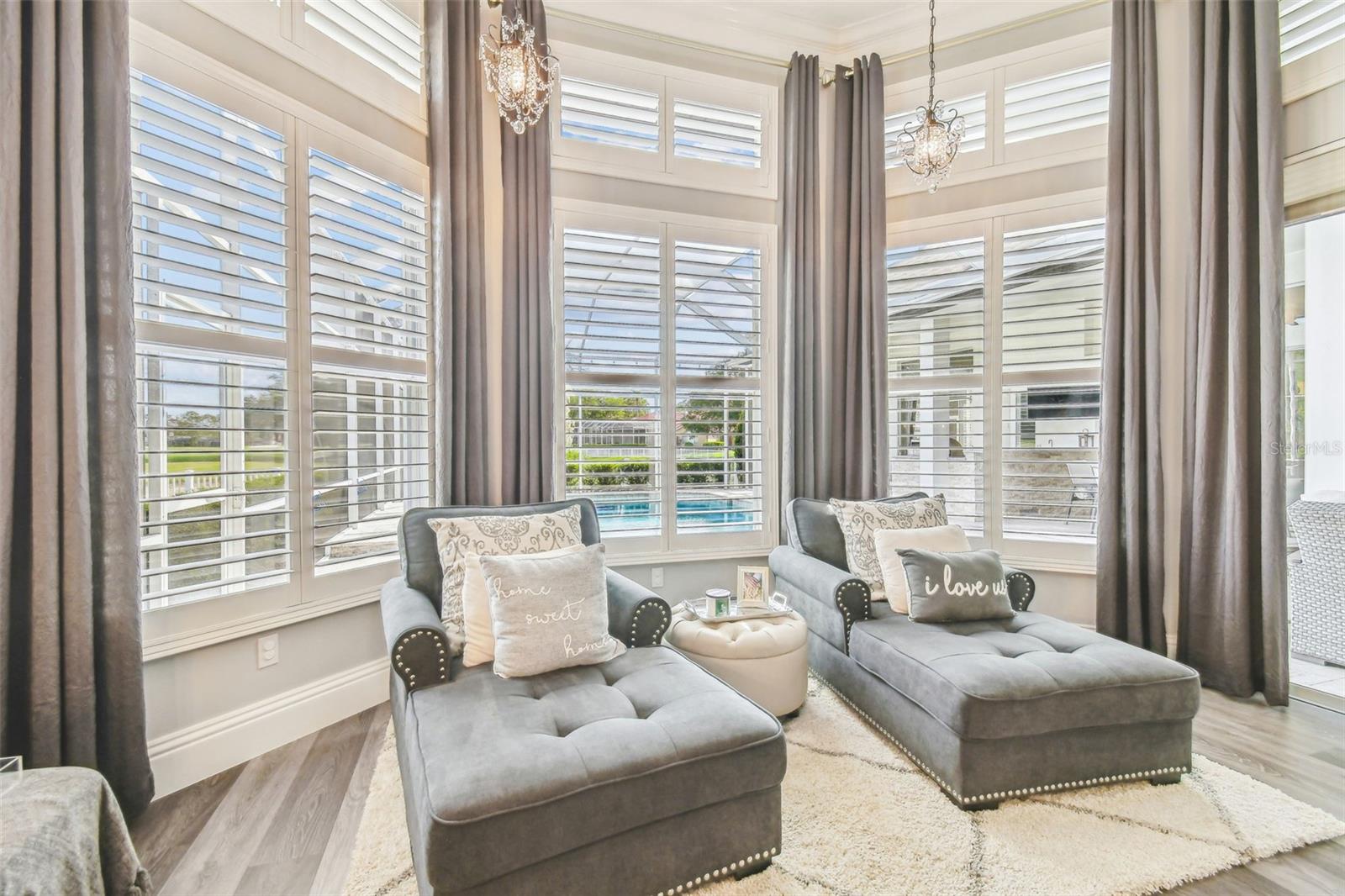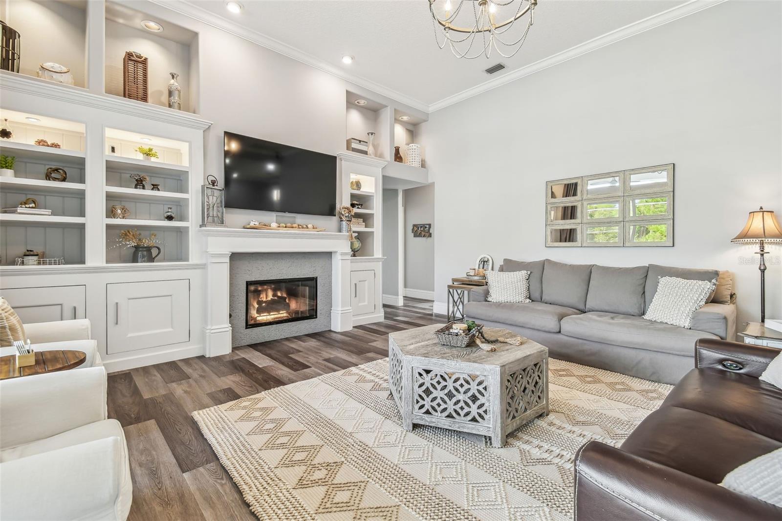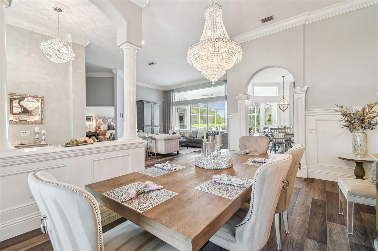 Luxury reimagined, a fully remodeled Hunters Green pool/spa home with golf course view in Osprey Point. This beautiful 4,707 SF 5 bedroom, 4 bathroom, 3 car garage, plus 6th bedroom/office, exercise space and bonus room was built by Hanna Bartoletta to meet your highest standards. As you enter this magnificent residence you will notice the attention to detail. The completely remodeled kitchen features high-end stainless-steel appliances including a 48 wolf range with double ovens, pot filler, custom quartz counters, counter height island with farm sink, and a large walk-in pantry all overlooking a large family room with fireplace and built ins. The huge primary suite with sitting area has wonderful views, dual walk-in closets, dual sinks with makeup area, tub and a large walk-in shower. Upstairs you will find a quiet oasis including a bedroom, bath, large bonus room and an exercise or craft area. Step outside to the oversized covered lanai with outdoor kitchen, and updated pool/spa area with travertine all overlooking serene pond and golf course beyond. Home includes but is not limited to a new tile roof (2023), huge laundry room has dryer, washer with sidekick for smaller loads(2023), tons of storage and solid surface workspace, plantation shutters, extensive wood flooring, crown molding, new pool motor and filter (2025), salt cell (2026), water heater (2021), 15 SEER A/C (2023), REME Halo LED air purification system (2024), paver driveway, epoxy garage floor, recently painted inside and out, fenced yard with sitting area, and a sprinkler system. Hunters Green, a gated and guarded community, has become the residence of choice for many moving to the Tampa Bay area because of commuting convenience, quality of life and high number of superior rated schools. Hunters Green Golf and Country Club is one of the finest private clubs in the southeast boasting a championship golf course designed by Tom Fazio, and an avid tennis membership. Located only minutes from shopping, I-75, hospitals, VA, Moffitt cancer hospital, restaurants, recreation, Flatwoods trails and entertainment. Come see for yourself this exquisite residence, sit down, relax and call it home!
