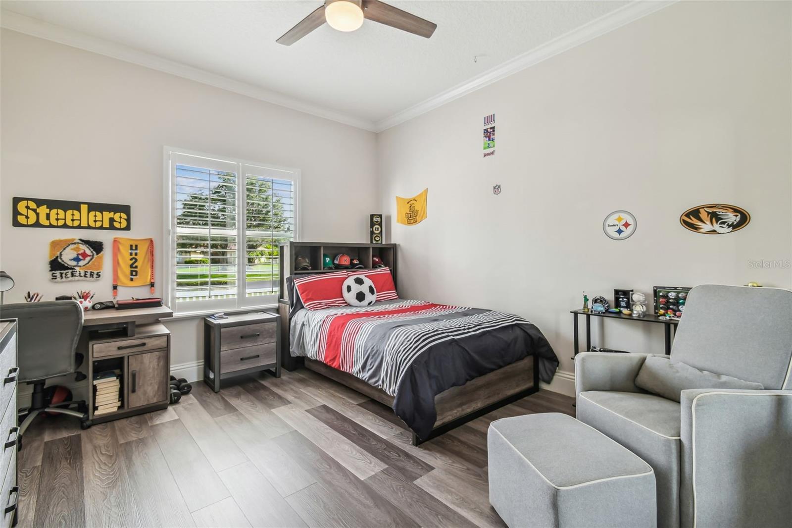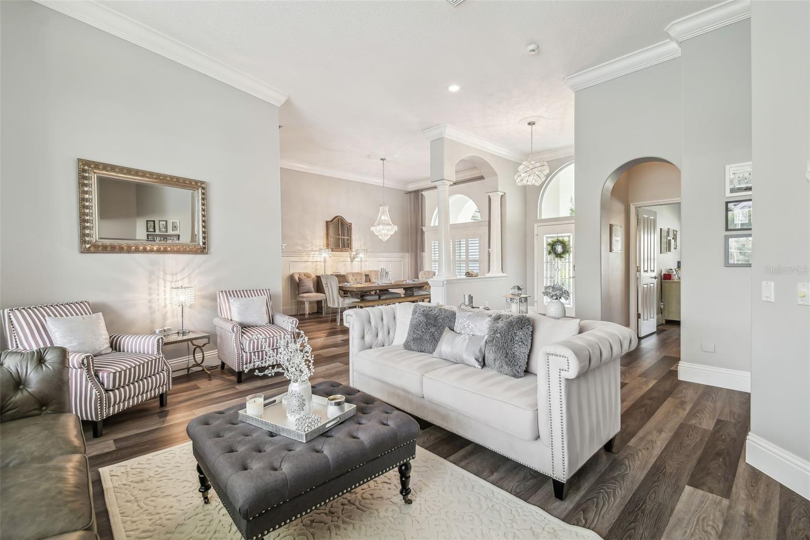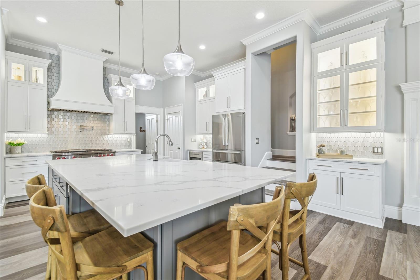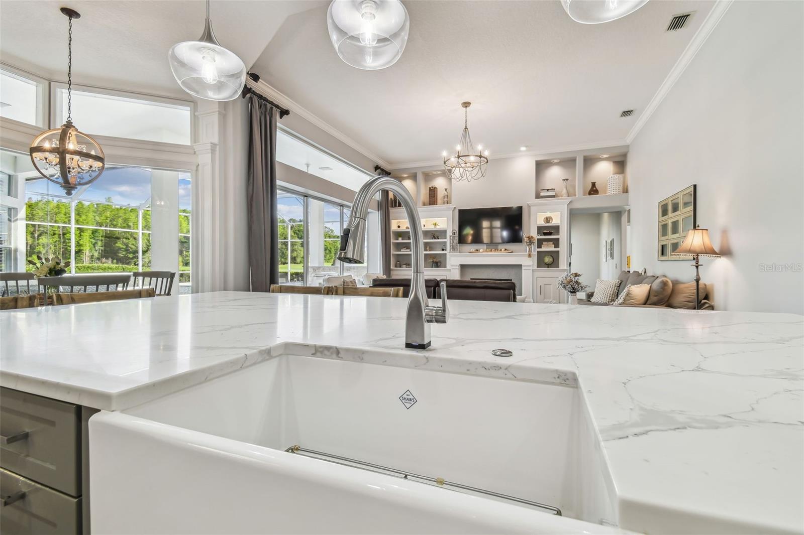 Luxury reimagined, a fully remodeled Hunters Green pool/spa home with golf course view in Osprey Point. This beautiful 4,707 SF 5 bedroom, 4 bathroom, 3 car garage, plus 6th bedroom/office, exercise space and bonus room was built by Hanna Bartoletta to meet your highest standards. As you enter this magnificent residence you will notice the attention to detail. The completely remodeled kitchen features high-end stainless-steel appliances including a 48 wolf range with double ovens, pot filler, custom quartz counters, counter height island with farm sink, and a large walk-in pantry all overlooking a large family room with fireplace and built ins. The huge primary suite with sitting area has wonderful views, dual walk-in closets, dual sinks with makeup area, tub and a large walk-in shower. Upstairs you will find a quiet oasis including a bedroom, bath, large bonus room and an exercise or craft area. Step outside to the oversized covered lanai with outdoor kitchen, and updated pool/spa area with travertine all overlooking serene pond and golf course beyond. Home includes but is not limited to a new tile roof (2023), huge laundry room has dryer, washer with sidekick for smaller loads(2023), tons of storage and solid surface workspace, plantation shutters, extensive wood flooring, crown molding, new pool motor and filter (2025), salt cell (2026), water heater (2021), 15 SEER A/C (2023), REME Halo LED air purification system (2024), paver driveway, epoxy garage floor, recently painted inside and out, fenced yard with sitting area, and a sprinkler system. Hunters Green, a gated and guarded community, has become the residence of choice for many moving to the Tampa Bay area because of commuting convenience, quality of life and high number of superior rated schools. Hunters Green Golf and Country Club is one of the finest private clubs in the southeast boasting a championship golf course designed by Tom Fazio, and an avid tennis membership. Located only minutes from shopping, I-75, hospitals, VA, Moffitt cancer hospital, restaurants, recreation, Flatwoods trails and entertainment. Come see for yourself this exquisite residence, sit down, relax and call it home!
