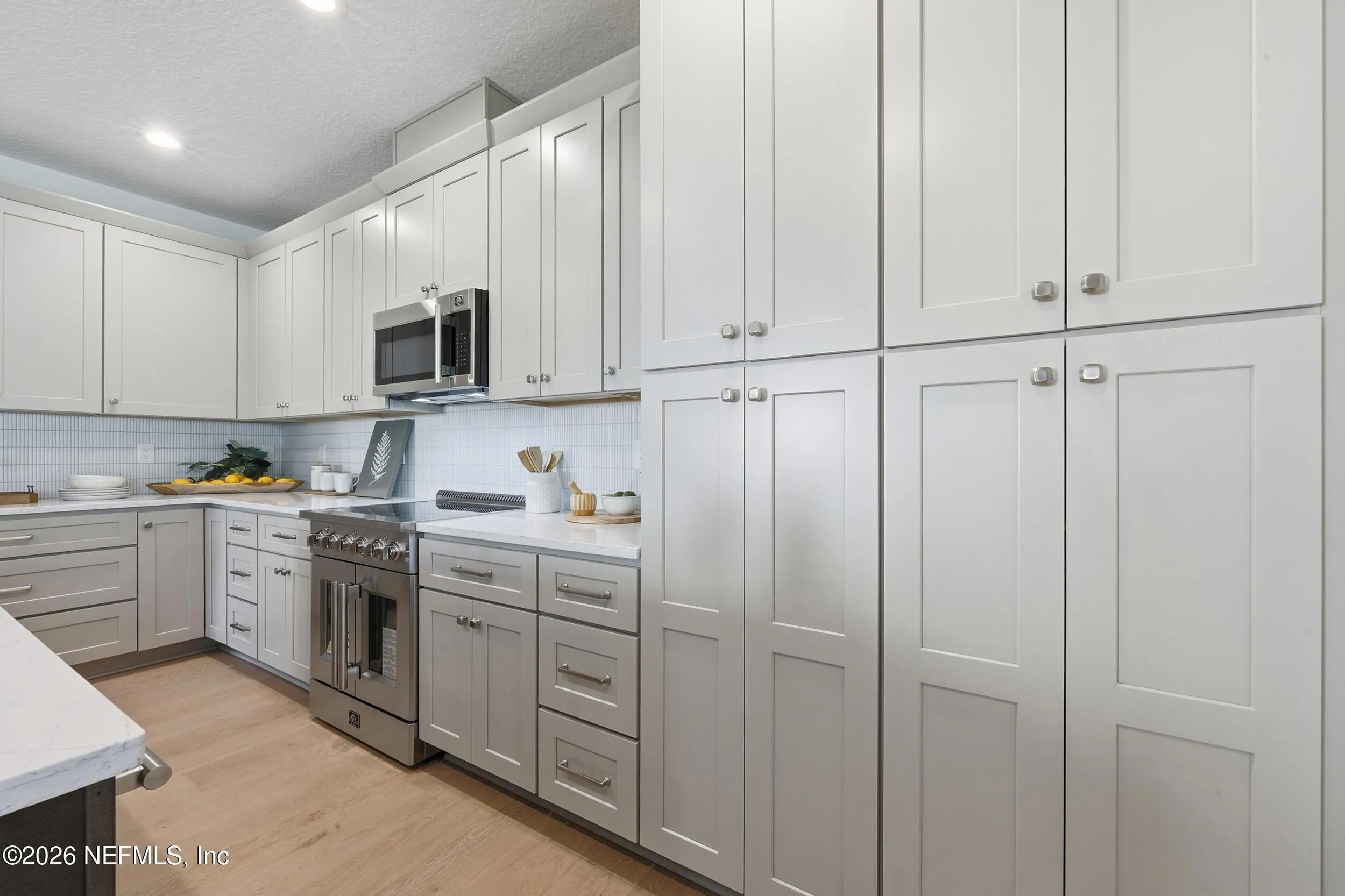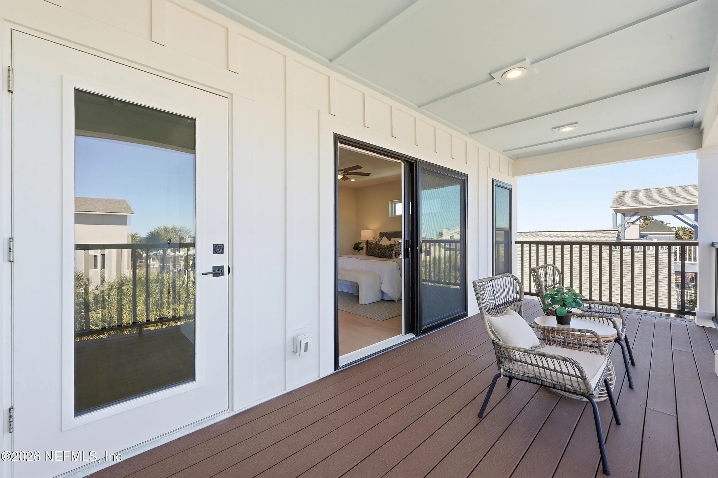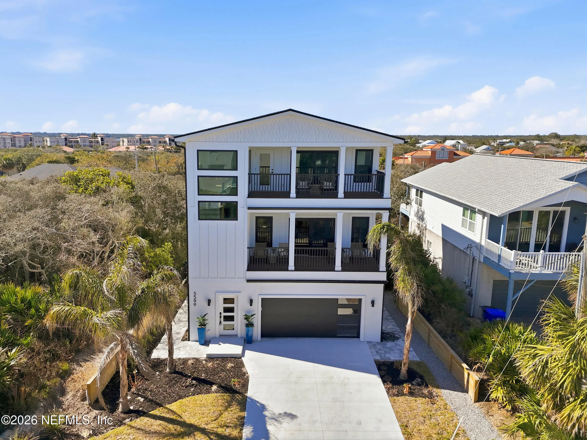 A rare opportunity to own a newly constructed, three-story coastal home showcasing refined modern design, concrete block construction, and inviting ocean views just steps from the beach. Designed with both comfort and entertaining in mind, this residence embodies effortless coastal luxury in one of St. Augustines most tranquil seaside enclaves. The second-floor living level is thoughtfully positioned to take full advantage of the views, with expansive glass doors opening to a generous ocean-view deck - ideal for sunset evenings, outdoor dining, and savoring the ocean air. Inside, the open-concept living and dining spaces are anchored by a chef-inspired gourmet kitchen featuring sleek pro-style stainless steel appliances, a striking double-door oven, and an industrial-size refrigerator, all delivering professional-grade performance with a modern European flair. The home offers four well-proportioned bedrooms and 3.5 baths, including two ensuite bedrooms, providing flexibility and privacy for family and guests. The entire third floor serves as a private primary retreat, where ocean views create a peaceful sense of escape. The spa-style ensuite is beautifully appointed with elegant tilework, a soaking tub, a spacious shower, and quality finishes. Outdoor living is seamlessly integrated throughout the property, with elevated decks on both the second and third floors and a large rear patio extending from the back of the home, creating an inviting setting for entertaining or relaxing after a day on the beach. Located in Butler Beach, just a five-minute walk to a wide, uncrowded sandy shoreline, this home offers the simple pleasures of morning beach walks, shelling, and quiet coastal moments. Modern, sophisticated, and carefully designed, this coastal residence delivers a rare combination of new construction, upscale finishes, and relaxed beachside living, making it ideal as a primary residence, second home, or refined coastal getaway.