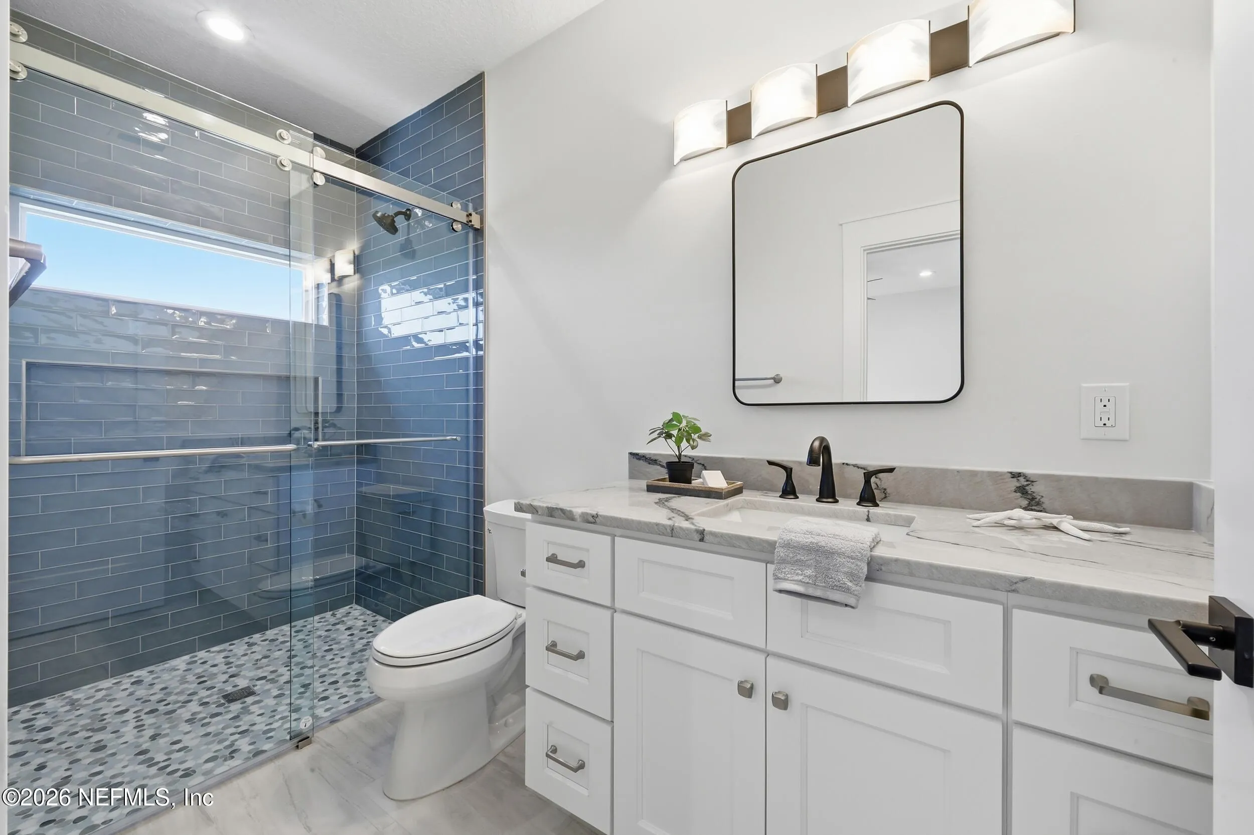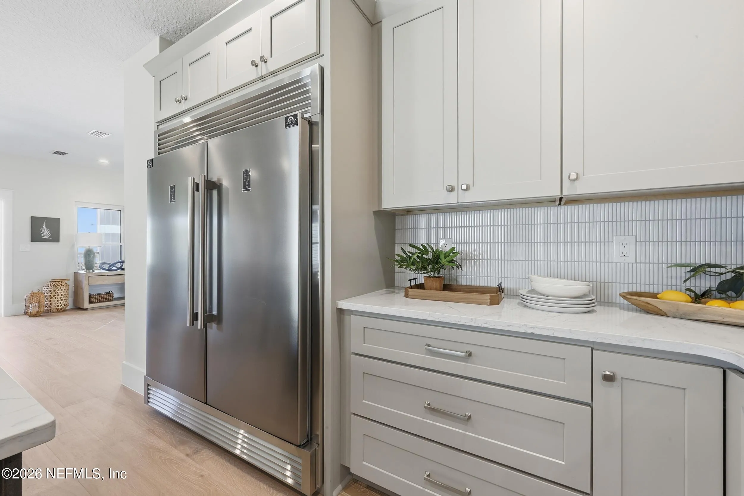 Recently built coastal home offering modern design and relaxed beach living located just steps from the ocean and a short walk to Beaches Town Center. A flexible floor plan with primary suite options on both levels. Open kitchen with white shaker cabinets, granite countertops, and stainless steel appliances. Plank tile flooring on main level.