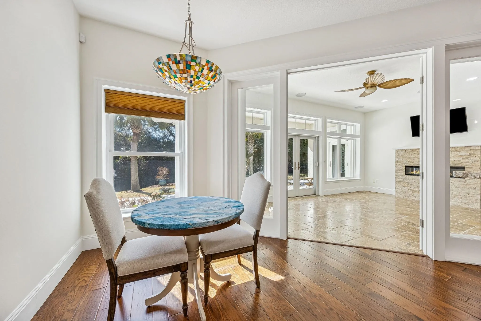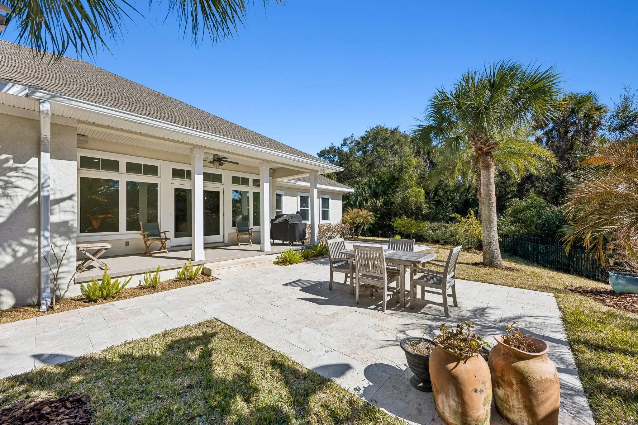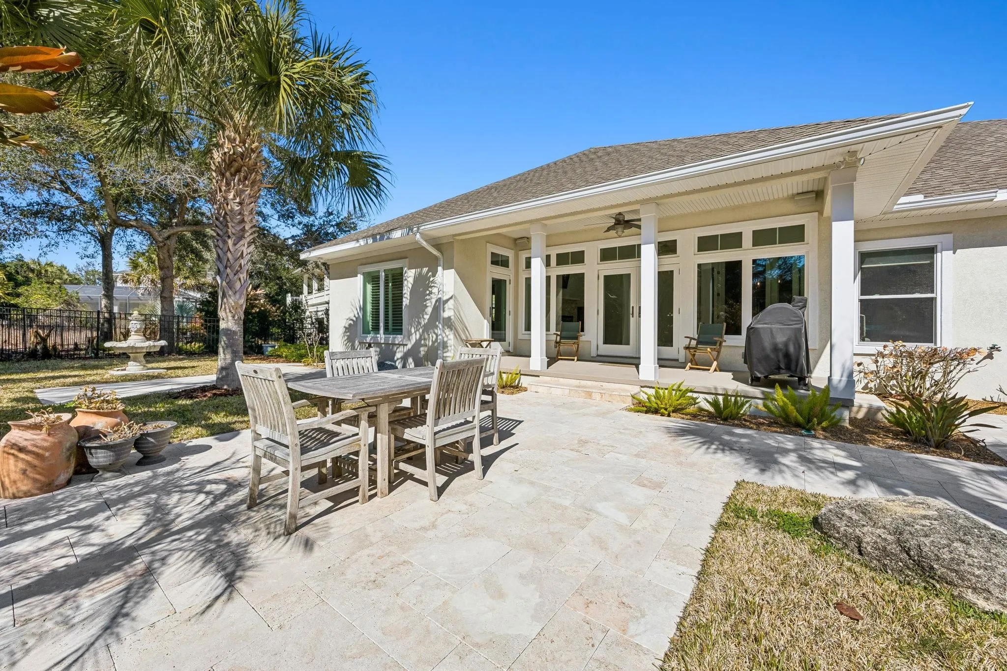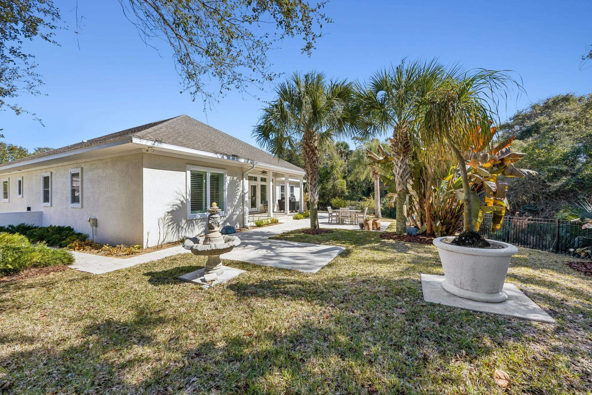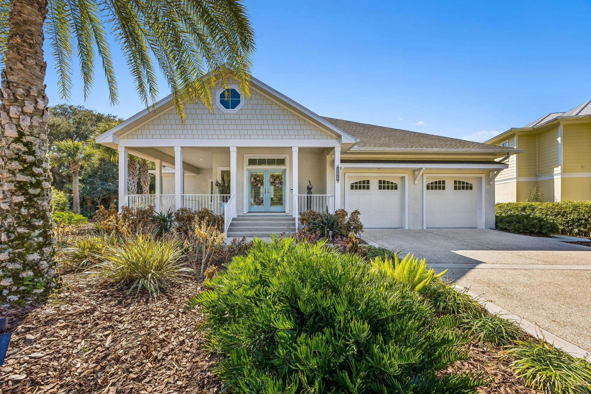 Located in the coveted gated community of Anastasia Dunes, where privacy, space, and beachside convenience come together in this beautifully appointed 2015 concrete block home. This single-story residence offers an ideal blend of function and elegance with 3 bedrooms, 2.5 baths, and not one - but two dedicated office spaces. In addition to the main office, a private secondary office just off the primary suite creates the perfect setup for remote work, a studio, or a quiet retreat. Additional features include engineered hardwood floors and plantation shutters throughout, living room, family room with gas fireplace, a gourmet kitchen with quartz countertops and white cabinets, built in shelving in all closets, newer light fixtures and recently painted on the interior and exterior. Situated on over one-third of an acre, the property provides rare breathing room within a sought-after coastal neighborhood. Enjoy to spacious front wrap around porch or covered back porch to listen to the ocean waves. The homes thoughtful design and solid concrete block construction deliver both durability and peace of mind and is over 17 ft elevation, while the well-maintained interiors offer a move-in-ready experience with a polished, comfortable feel. Located just a couple blocks from the beach, this home offers the best of Anastasia Island living - gated security, generous lot size, and easy access to sun, sand, dining, and recreation. A rare opportunity to enjoy space, privacy, and coastal lifestyle in one of the areas most desirable communities.