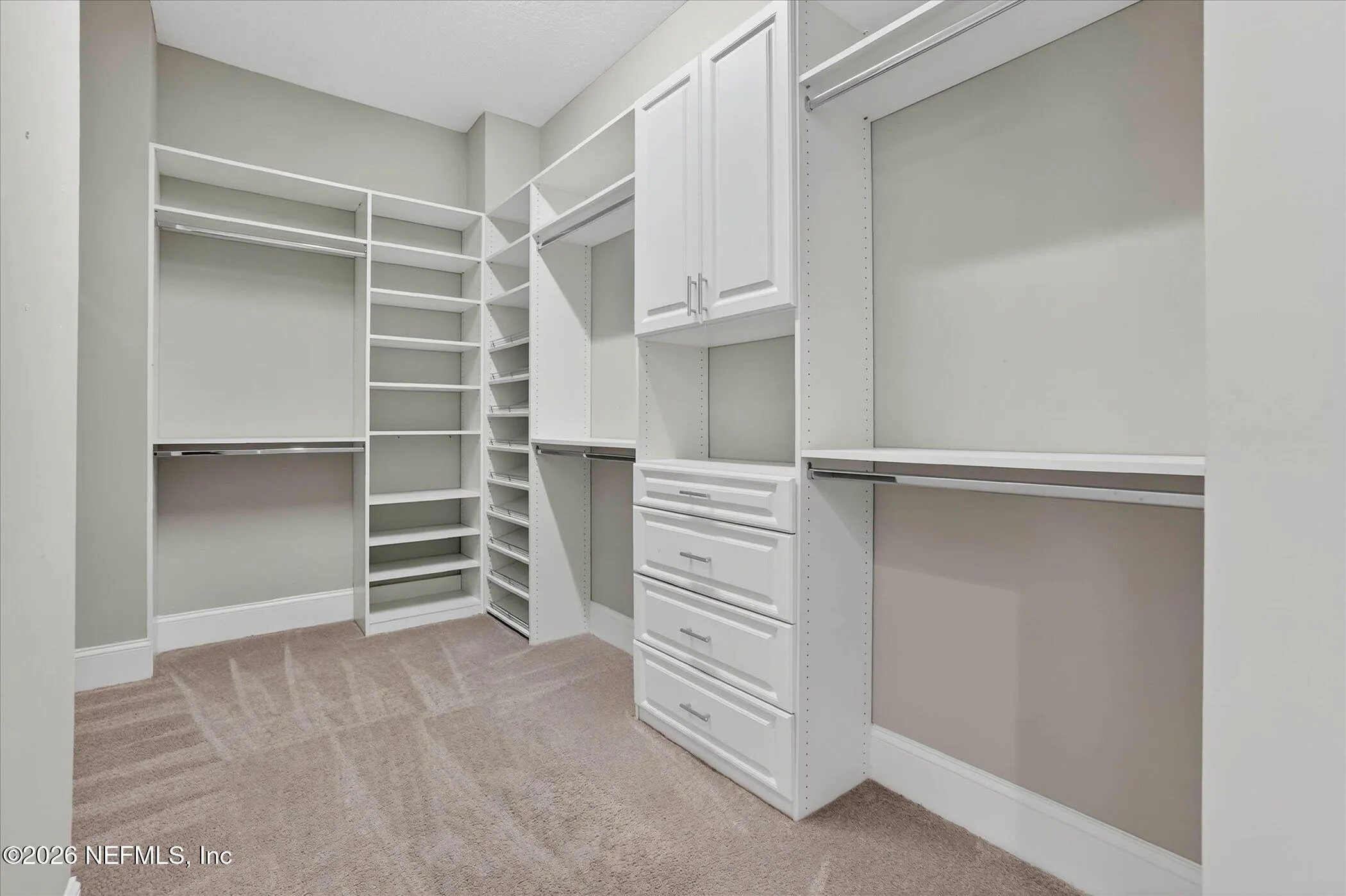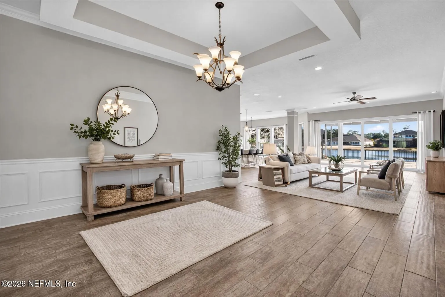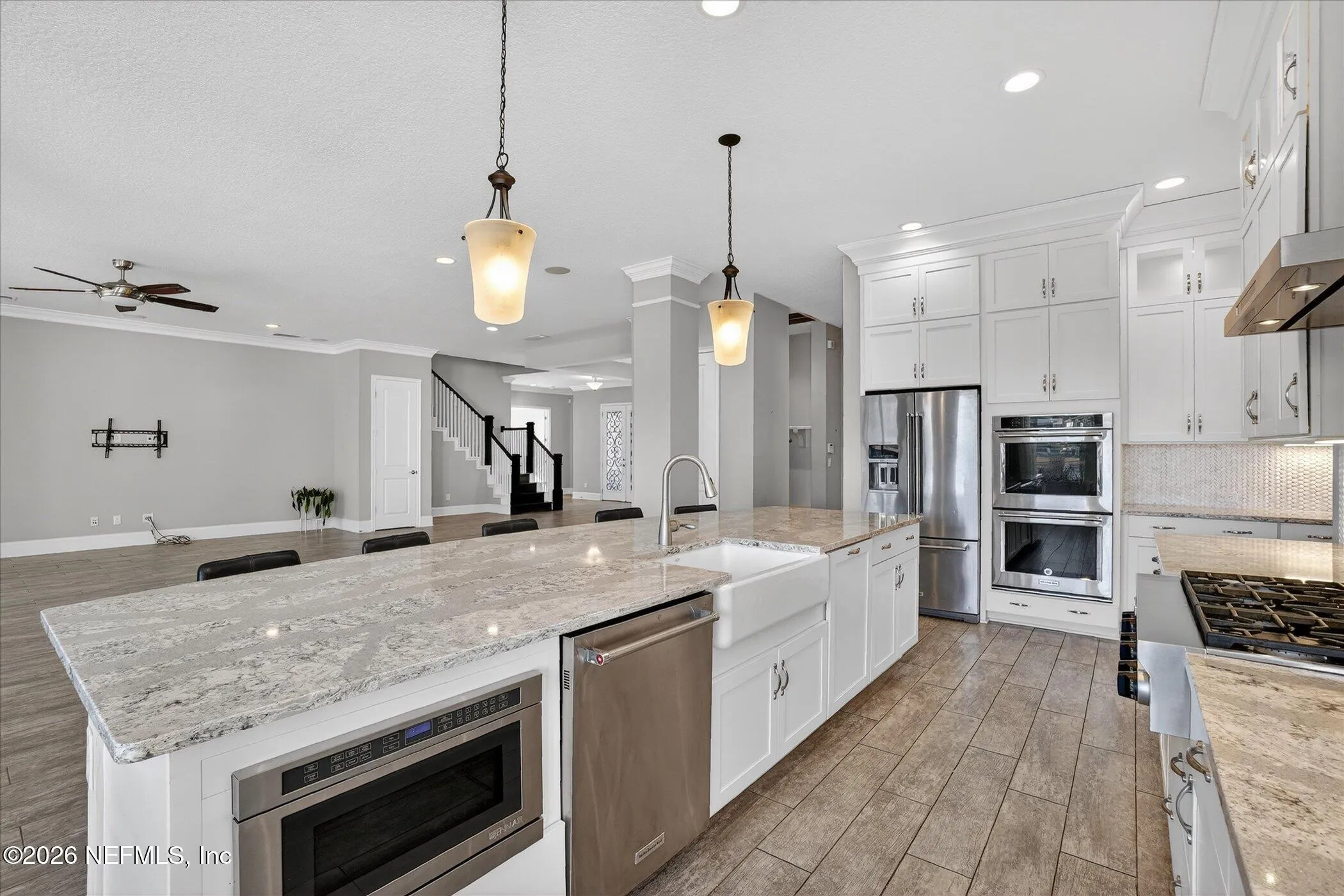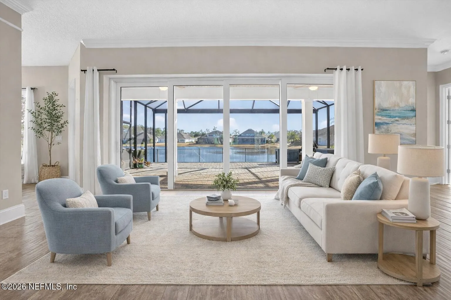 Exceptional opportunity to own a luxury estate in the exclusive Ranch at Twenty Mile in Nocatee, just 5 miles from Micklers Landing. This 5,145 sq. ft., 5-bedroom, 6-bath residence offers refined coastal living with a private in-law suite, ideal for multigenerational living, long-term guests, or an au pair. Each bedroom features an en-suite bath and walk-in closet, while the first-floor primary suite showcases spa-inspired finishes, frameless glass shower, and a custom walk-in closet. The gourmet kitchen includes premium finishes, a large island, and an exceptional walk-in pantry with custom shelving. A flexible bonus room suits an office, gym, or media lounge. Upstairs offers a loft with balcony and three additional en-suite bedrooms. Oversized sliders open to a covered, screened lanai and fully fenced backyard with room for a pool or summer kitchen. 3-car garage, top-rated schools, and access to Nocatees award-winning amenities. Closest Nocatee community to the beach.
