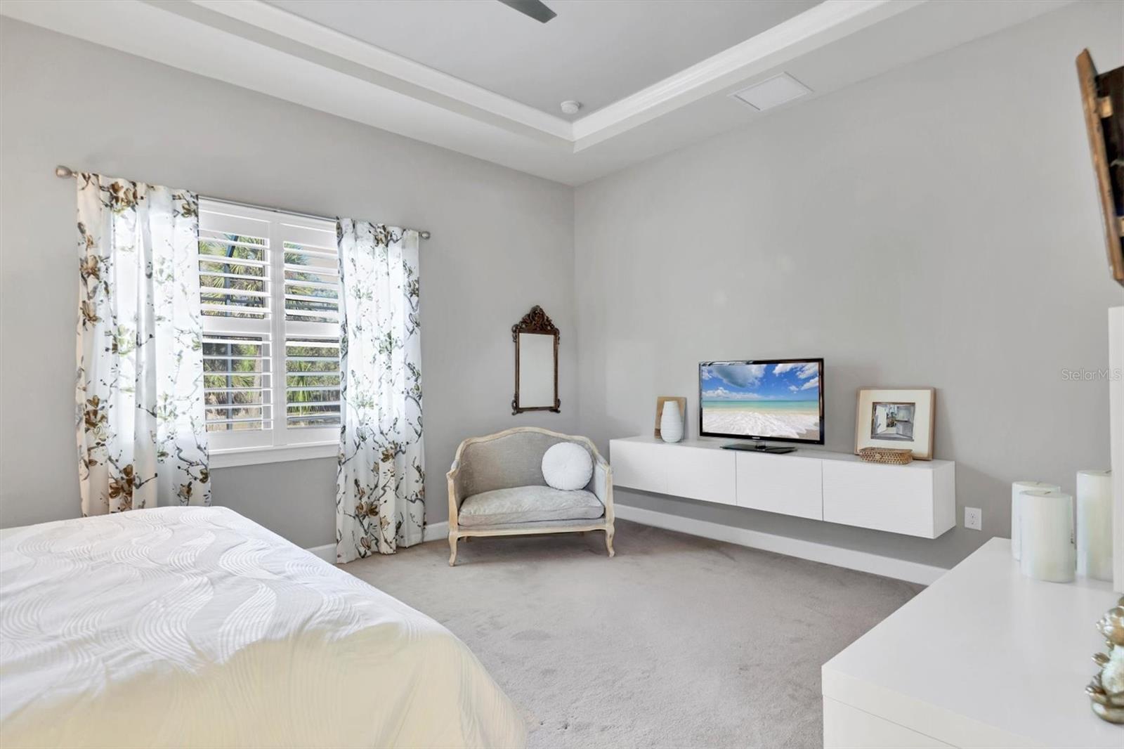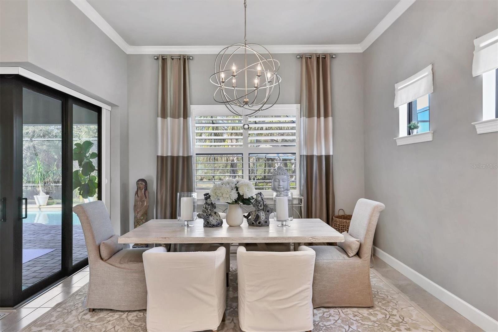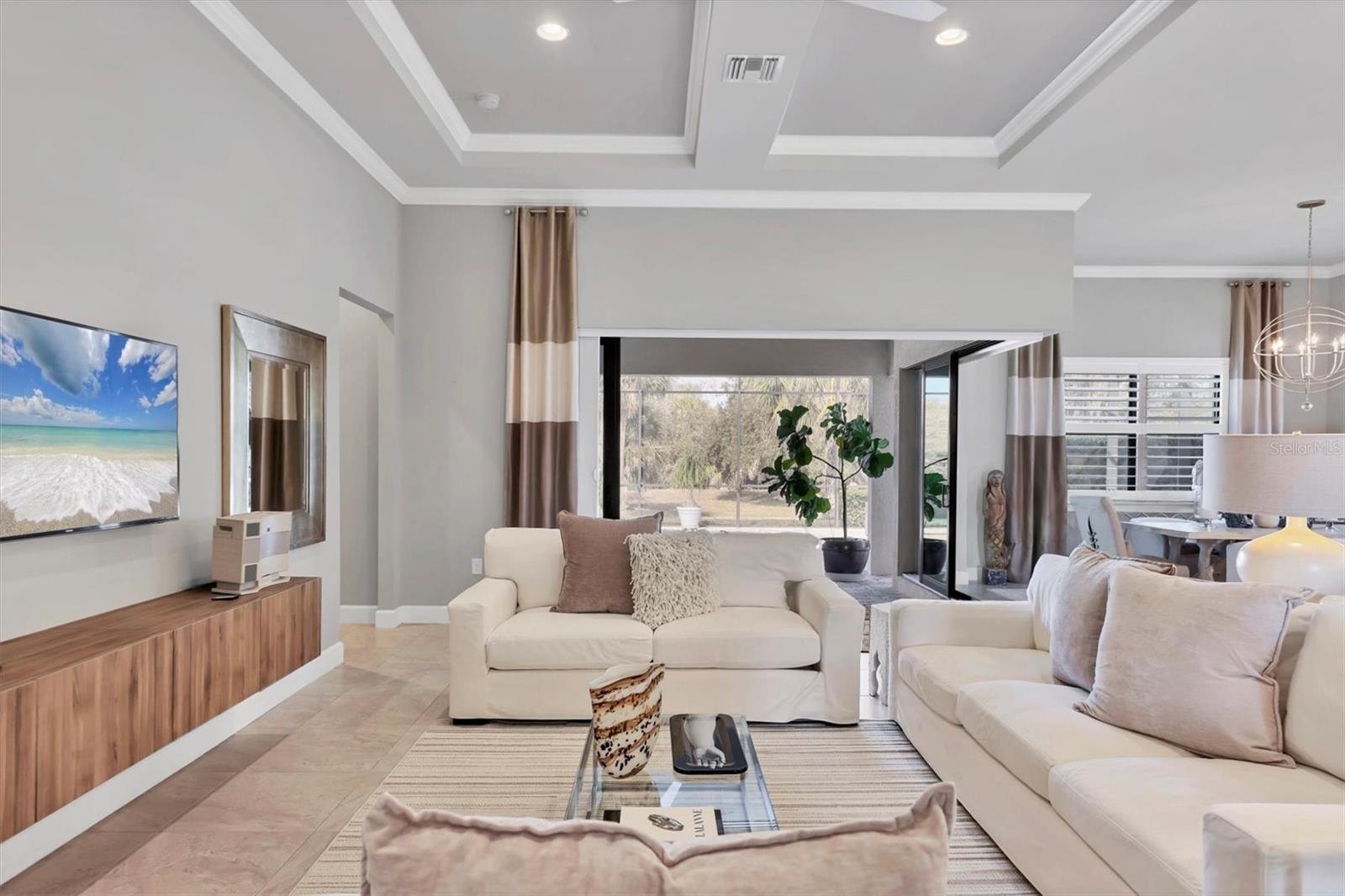 On a premium cul-de-sac lot, next to a large open lot of greenspace, this upgraded Pinnacle shows true pride of ownership! Loaded with features including zero-corner glass sliders, hurricane impact windows, high ceilings, crown moldings, tray and coffered ceilings, bump-out bay window, plantation shutters, custom California Closet built-ins and more.