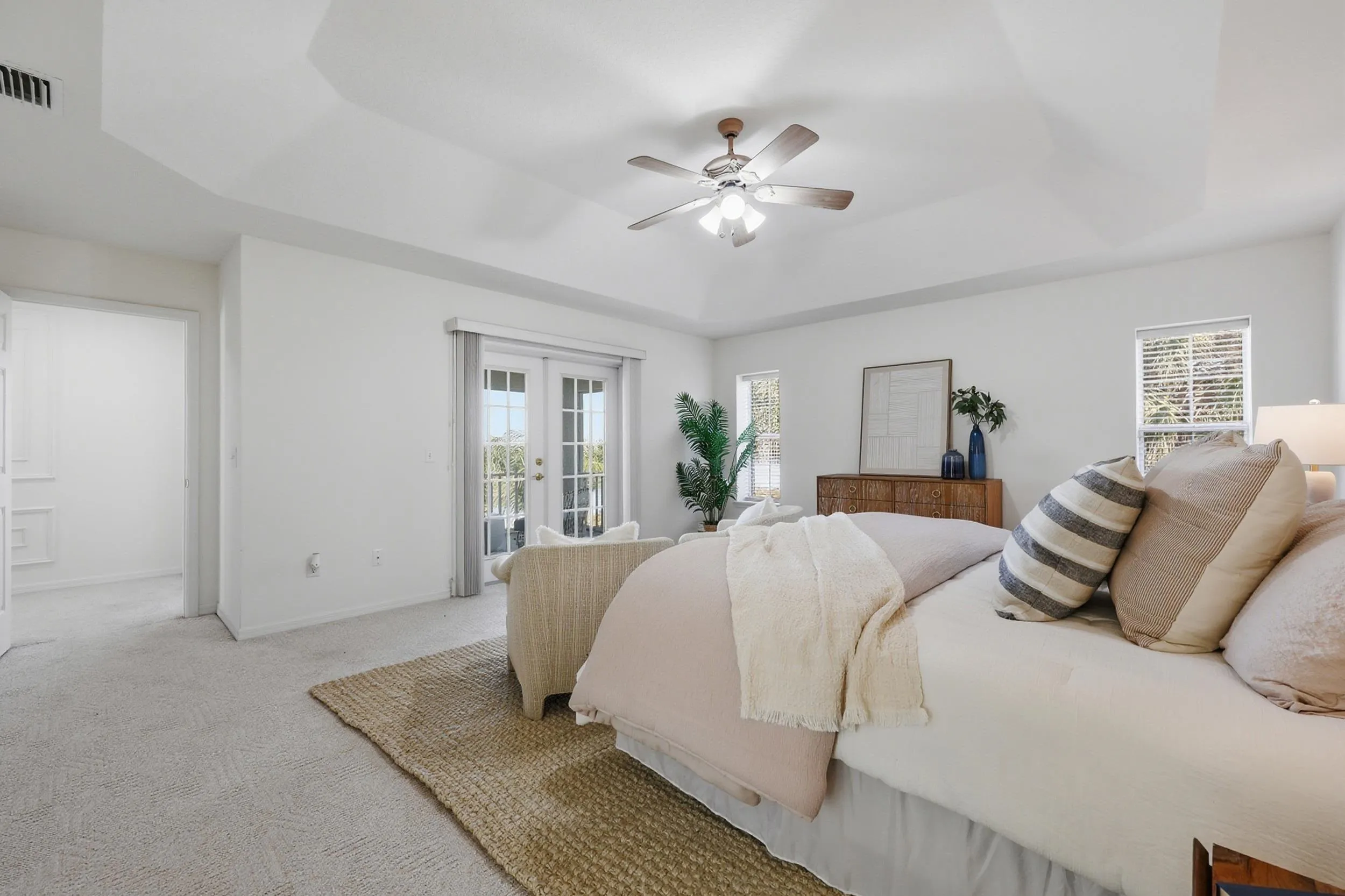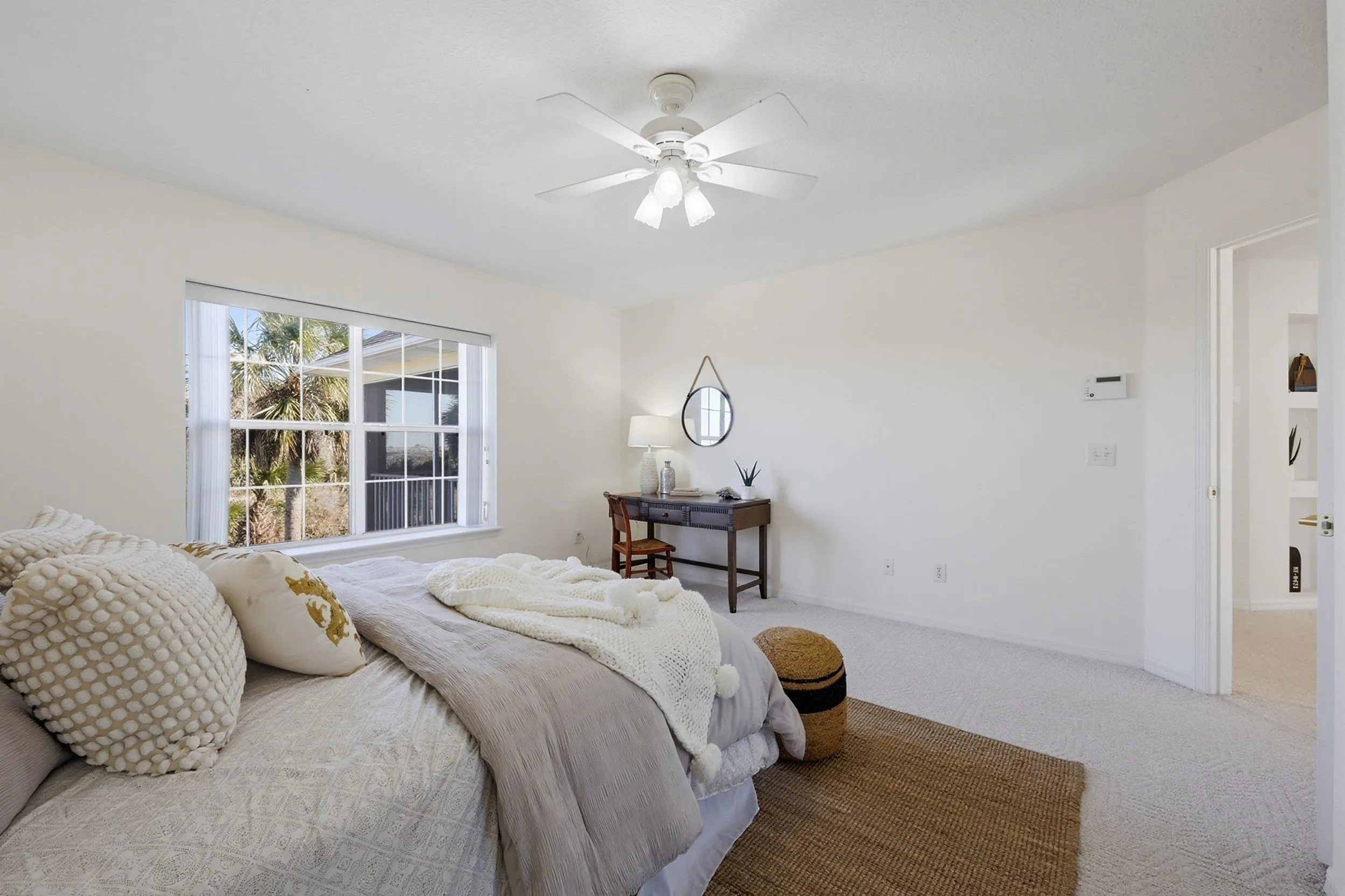 Welcome to this spacious 5 bedroom, 4 bath home in the highly desirable Fairfield community of Ponte Vedra Beach! Tucked away on a quiet cul-de-sac, this corner lot home is spacious and easy to live in. Step inside to wide plank engineered hardwood floors and 10ft ceilings. The open kitchen and family room flow together, highlighted by a gas fireplace and new custom built-in cabinetry. The primary suite includes a sitting area which opens to the lanai, his and hers walk-in closets, and a spacious bath with dual sinks and a large soaking tub. A nearby bedroom features built-ins and a closet, making it ideal as an office or bedroom. The expanded paver driveway provides plenty of parking, and the backyard features a paver lanai with all new frame and screen, plus a brand new fence. Exceptional amount of storage space includes a mudroom off the garage and heated/air-conditioned storage rooms flanking the bonus/5th bedroom. Located in Fairfield, the community amenities include a 24-hour manned guard gate, pools and a hot tub, tennis/pickleball courts, a basketball court, playgrounds, an exercise room, clubhouse, and RV/boat parking, all just a walk or short bike ride to the beaches and shops.