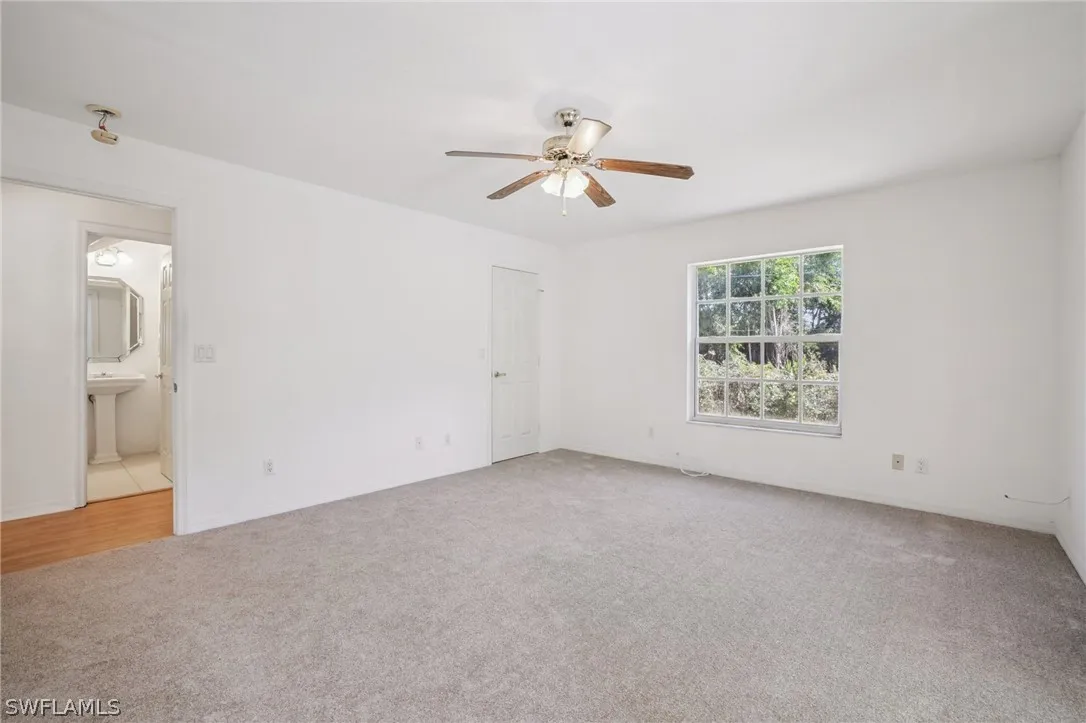 Completely Reimagined Luxury Pool Home - Dont Let This One Get Away Opportunities like this are rare in Spanish Wells Golf & Country Club. Fully renovated, impeccably upgraded, and move-in ready, this 4-bedroom, pool home with air conditioned 3-car garage, delivers elevated design, modern technology, and an unbeatable location just 3 miles from Barefoot Beach. Rich engineered wood flooring, and a thoughtfully redesigned layout create an atmosphere that is both sophisticated and welcoming. A stunning chefs kitchen features quartz waterfall island, premium appliances, custom lighting, reverse osmosis system, and whole-home water softener. Entertaining is effortless with a built-in designer bar complete with wine and beverage coolers. Every detail has been elevated - hurricane impact windows and doors, electric shades, smart garage systems, whole-home fragrance integration, new central A/C, and custom closets throughout. One bedroom has been professionally soundproofed, creating the ideal executive office, studio, or private sanctuary. The primary suite offering a spa-inspired bath with dual vanities, makeup station, and oversize walk-in shower with rainfall head and body jets. Step outside to your private resort setting. The heated pool has been completely renovated and is surrounded by new pavers and a clear view panoramic screen enclosure. Gated backyard access, architectural stone accents, soffit LED lighting for evening ambiance, fresh interior and exterior paint, epoxy-finished 3-car garage, and a 2022 roof complete this exceptional residence. Located in a gated golf community with optional membership, low HOA fees, close to premier shopping and dining, and only 15 miles to RSW Airport - this home offers the lifestyle buyers are searching for. Fully upgraded. Perfectly located. Make it your own.
