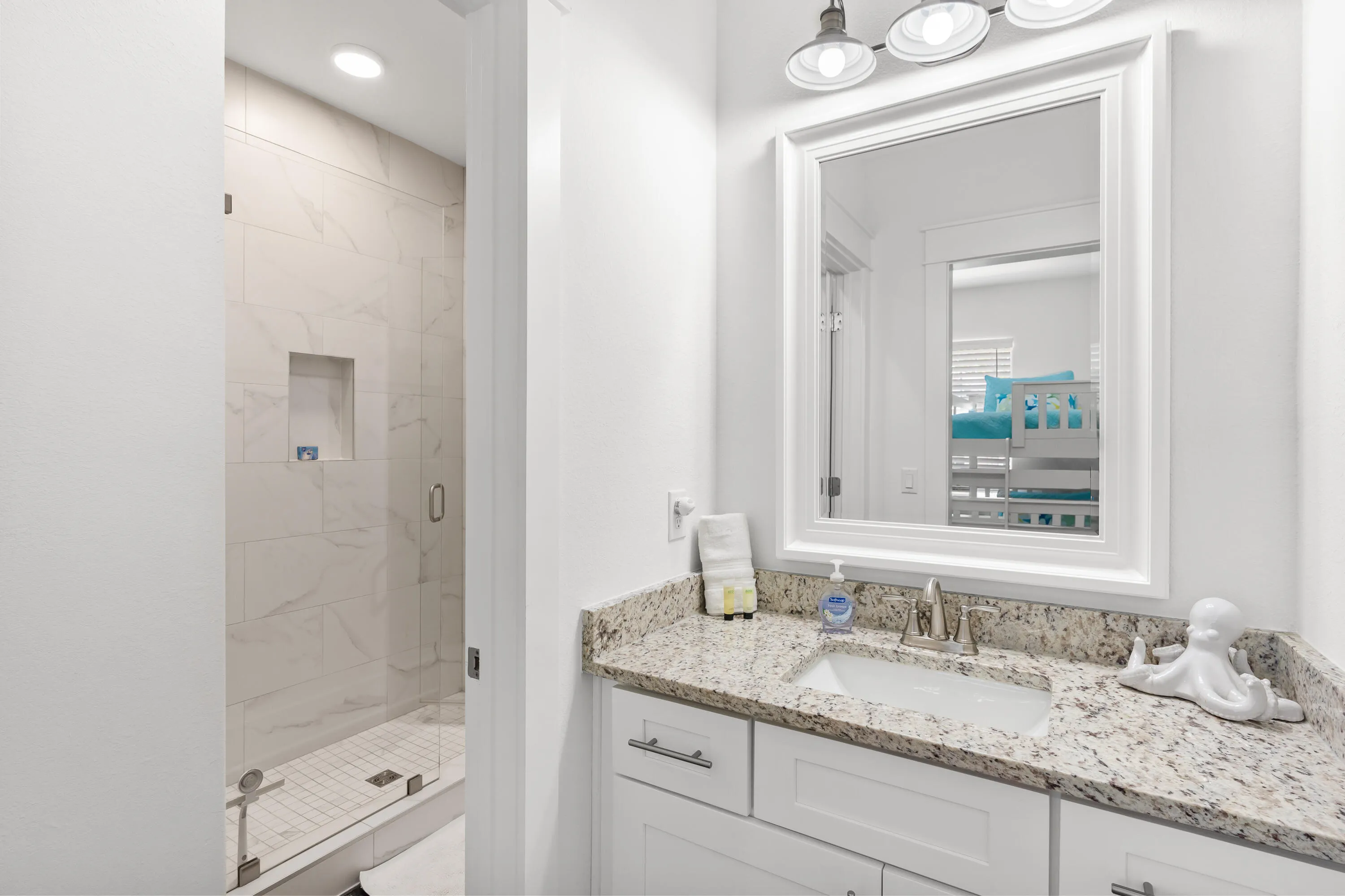 Newer Construction! This Beach Home is light and bright and has everything you could wish for in a beach home. It offers 4 bedrooms and 3 1/2 baths. There are two primary bedrooms with adjoining baths.This home has been lightly rented and excellently maintained. The first floor is perfect for entertaining friends and family. The open floor plan allows you to enjoy your guests int he spacious living room, dinning, and kitchen areas. The gathering room opens to a lovely screened in porch to enjoy morning coffee , reading a book, or an evening cocktail. There is a spacious primary suite complete with a well appointed bathroom. Youll find a half bath for your guest just off the kitchen. The one car garage is a must for housing all of your bikes and beach toys. As you ascend the staircase to the second floor and youll find a spacious laundry closet, a second primary bedroom suite with a king bed and an adjoining bath, a queen bedroom is on this floor and shares a jack and jill style bath with a bedroom with two sets of bunk beds. Theres lots of closet space too. Highland Parks has one of the best community lagoon style pools on all of 30A. Here youll find a fabulous spa, 4 story viewing tower, grilling area complete with wine fridge, large screen tv and space to host your own party. Blue Mountain is coveted not only for its high elevation and X flood zones, but because of the close proximity to restaurants, shopping and beach accesses. Highland Parks has long been a favorite of owners and guests alike.
