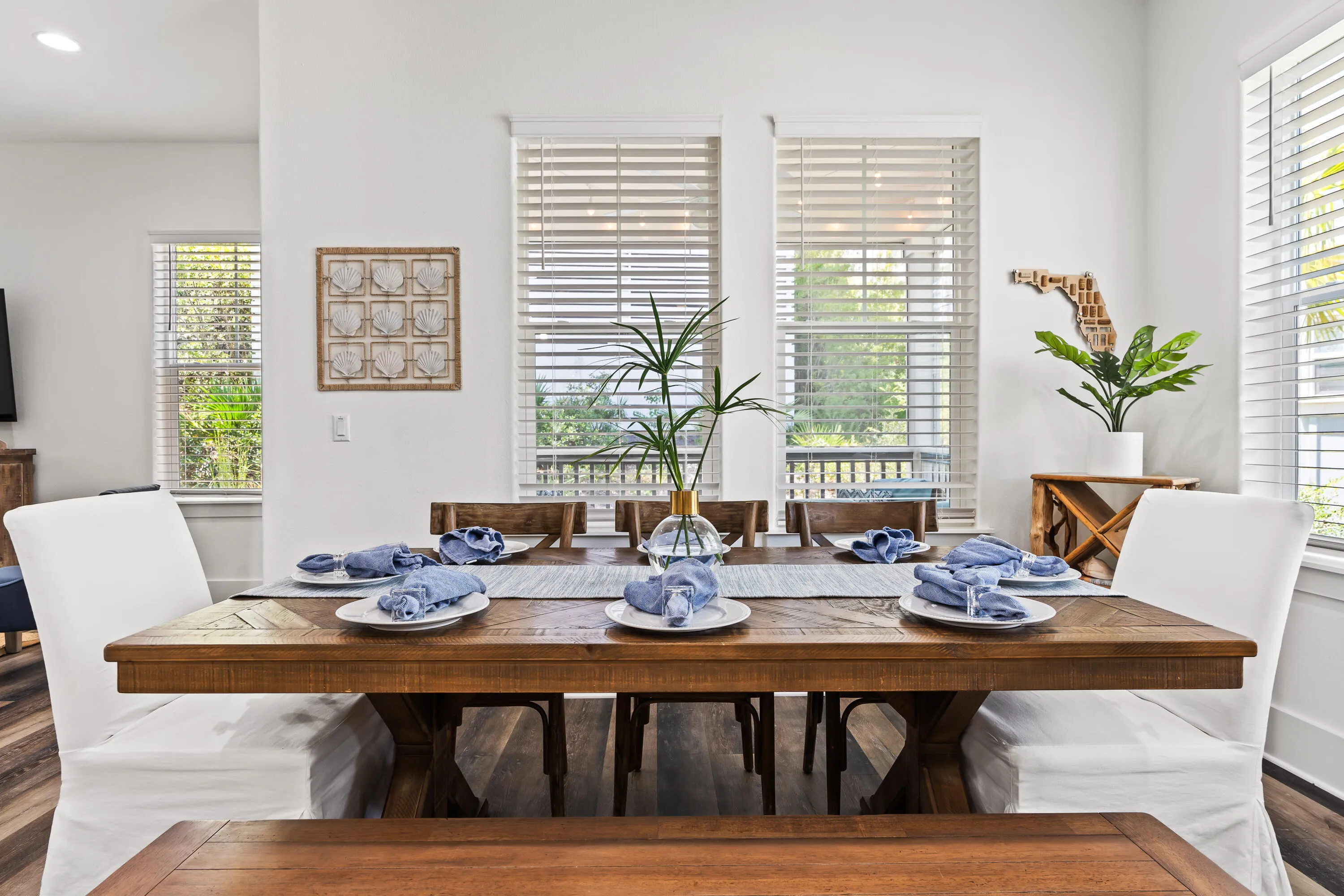 New Price ! Less than a third of a mile from the beach and nestled in the peaceful Seagrove Beach community, this 2022-built, single-story home offers 2,075 square feet of comfortable living space with 3 bedrooms and 2.5 bathrooms. The home is just a short walk or bike ride to the pristine beaches of the Gulf of Mexico, offering easy access to sand and surf for your enjoyment. The Point Washington State Forest, located right behind the property, provides additional opportunities for outdoor activities and wildlife viewing. The home boasts an open floor plan with 12 foot ceilings in the main living area, LVP flooring throughout and a fireplace. The open kitchen comes equipped with all the conveniences of home, complete with an island and breakfast nook, it flows effortlessly into the dining area ideal for both everyday living and entertaining. The screened-in porch creates a welcoming environment for al-fresco dining or enjoying watching your favorite team play on the outdoor TV. Overlooking the State Forest an expansive deck extend the living space outdoors, providing a perfect retreat with views of the lush Point Washington State Forest. The primary bedroom has direct access to the back deck and features 10 foot tray ceiling, a large ensuite bath with luxurious garden tub, separate shower and walk-in closet. The two well appointed guest bedrooms share a jack and jill bathroom. Additional features include a one-car garage and plenty of parking for guests. With convenient access to the charming shops and restaurants at Greenway Station, this home offers the perfect blend of peaceful seclusion and coastal convenience.