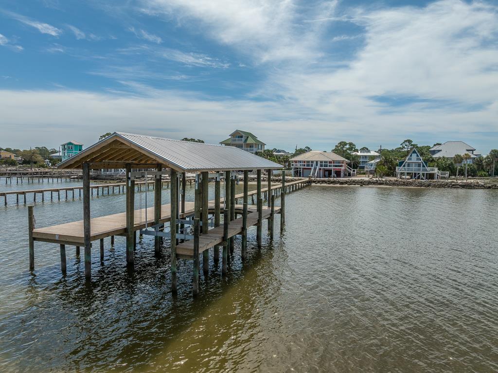 Enjoy breathtaking sunsets over the Bay from this well- maintained waterfront home located in a quiet, golf-cart-friendly neighborhood on St. George Island. Perfect for a family fishing retreat, full-time residence, or investment property, this home features a private dock with covered 15,000lb boat lift and and a fish cleaning station, making it ideal for anglers and boaters alike.