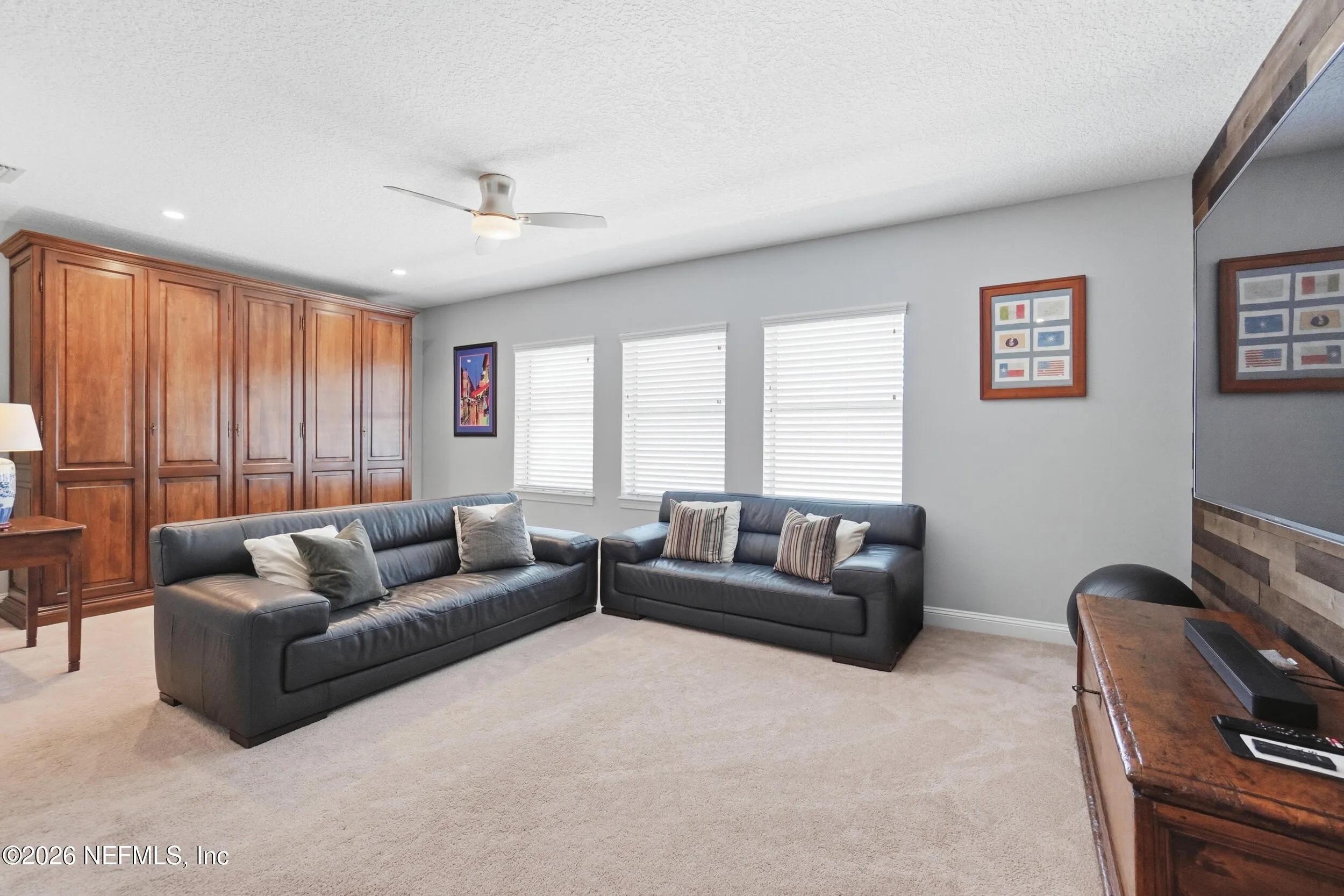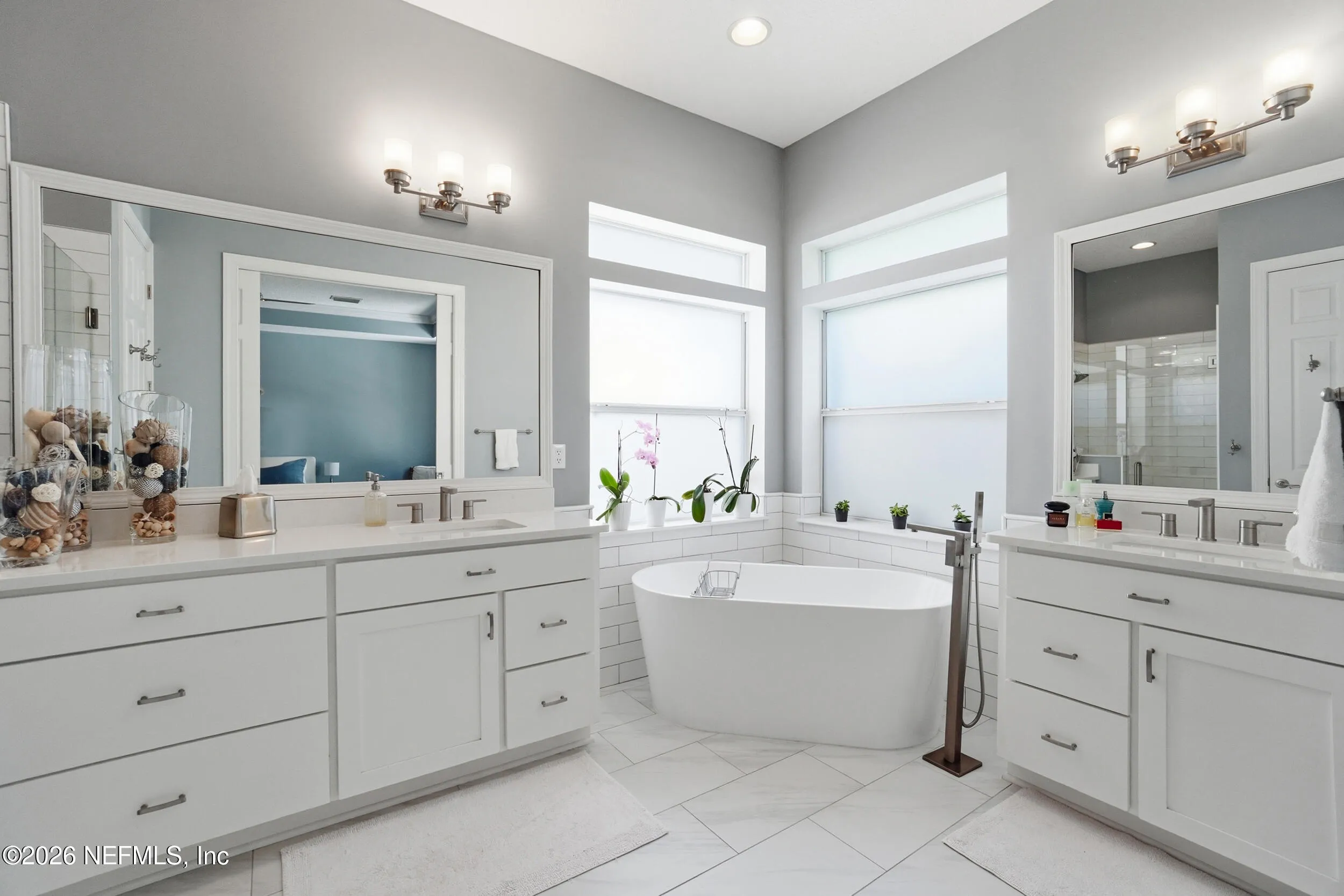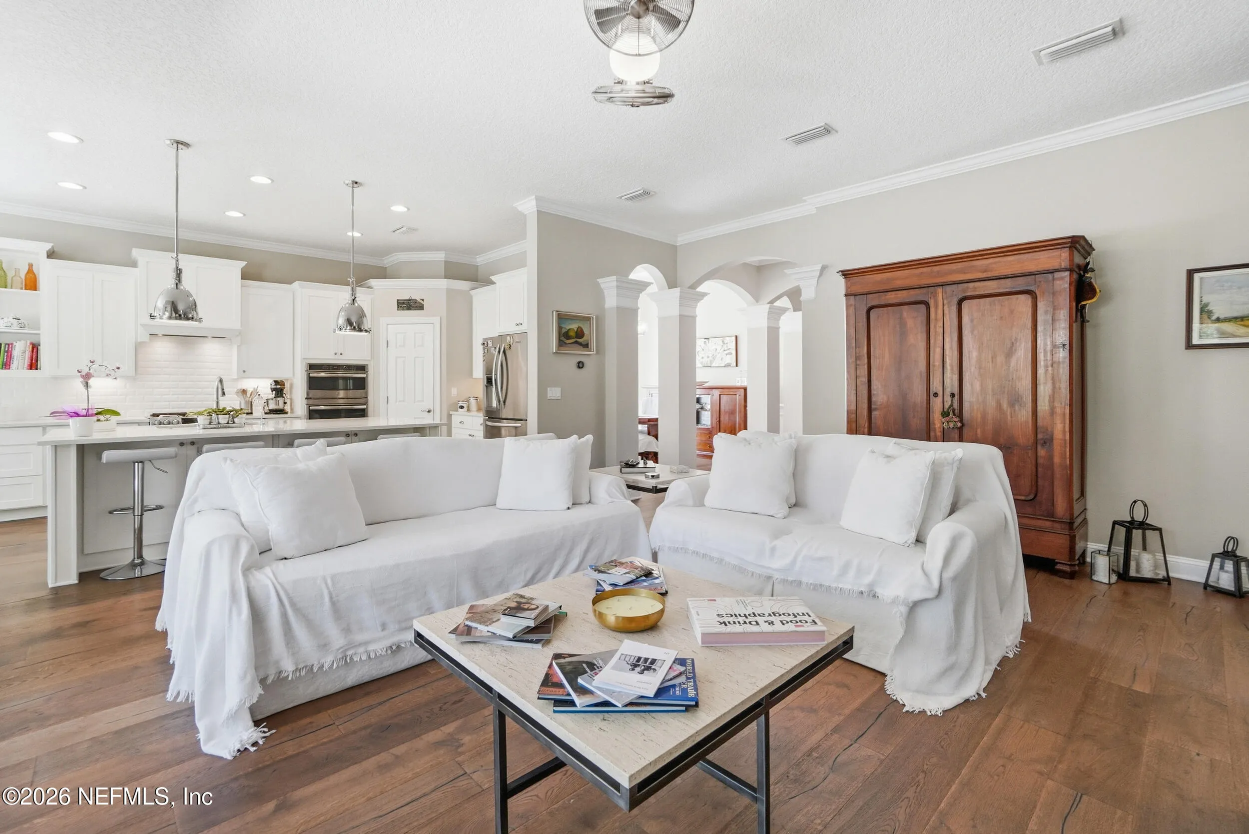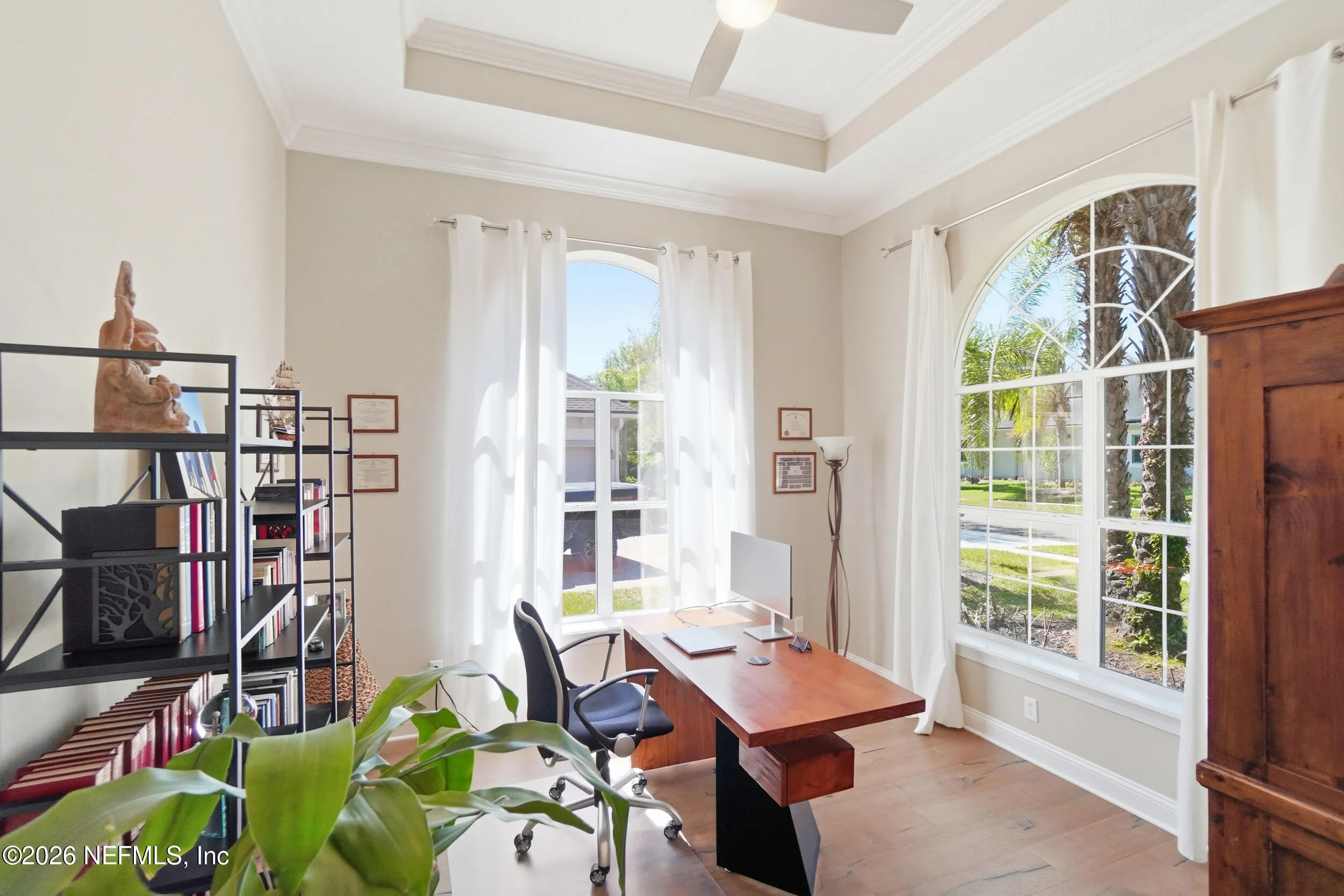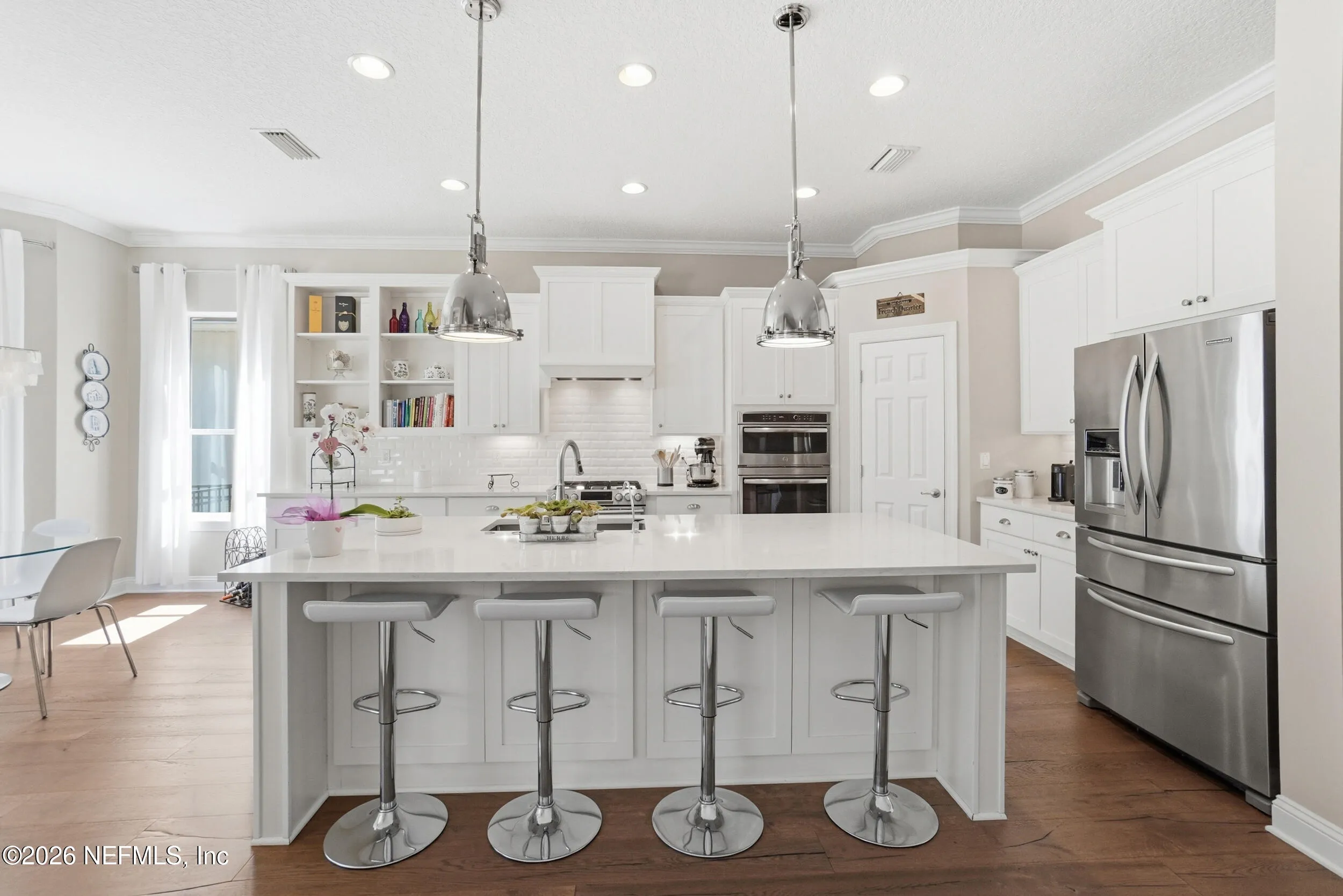 Welcome to this spectacular home in the gated Coastal Oaks community! This custom San Tropez floor plan offers 4 bedrooms, 3.5 baths, office, dining room, loft, and a spacious bonus room (or optional 5th bedroom) on a private preserve lot. The fully renovated kitchen is a showstopper, featuring quartz countertops, upgraded cabinetry, stainless appliances, double-sided island, and custom backsplash. The first-floor owners suite boasts a completely remodeled spa-like bath with freestanding tub and frameless shower Beautiful wide-plank engineered wood floors flow throughout the main living areas, with hardwood stairs and loft, plus new carpet in bedrooms. The family room includes custom built-ins and opens to an extended screened lanai for seamless indoor/outdoor living Additional highlights include custom bathrooms, abundant storage, natural light, 3-car garage, fenced yard, water softener, and more. Billiards table conveys. Enjoy Coastal Oaks amenities and the Nocatee lifestyle!!