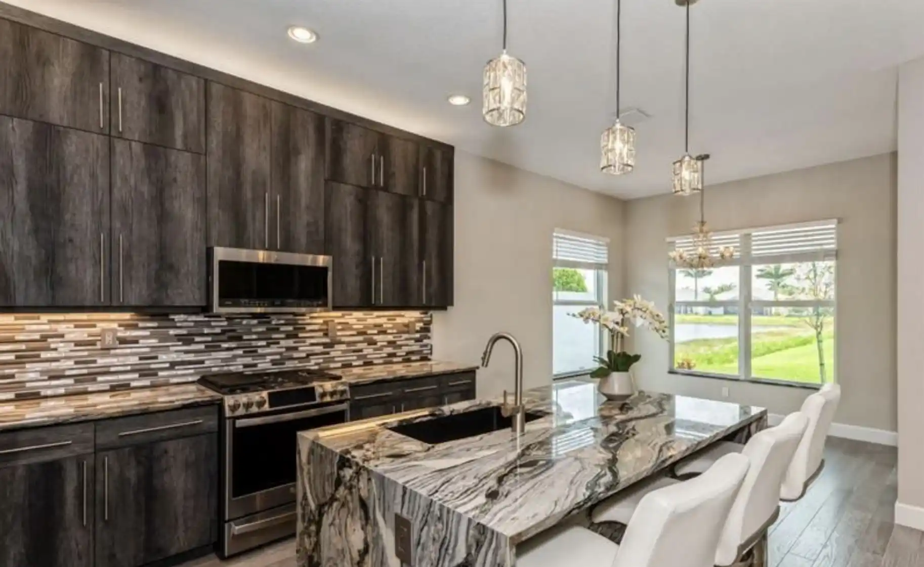 Why wait for new construction when you can move into this nearly new home in Valencia Sound? This premium lot offers lake views and stunning sunsets.