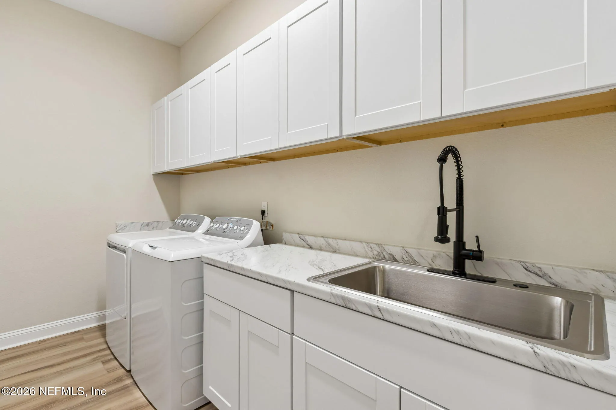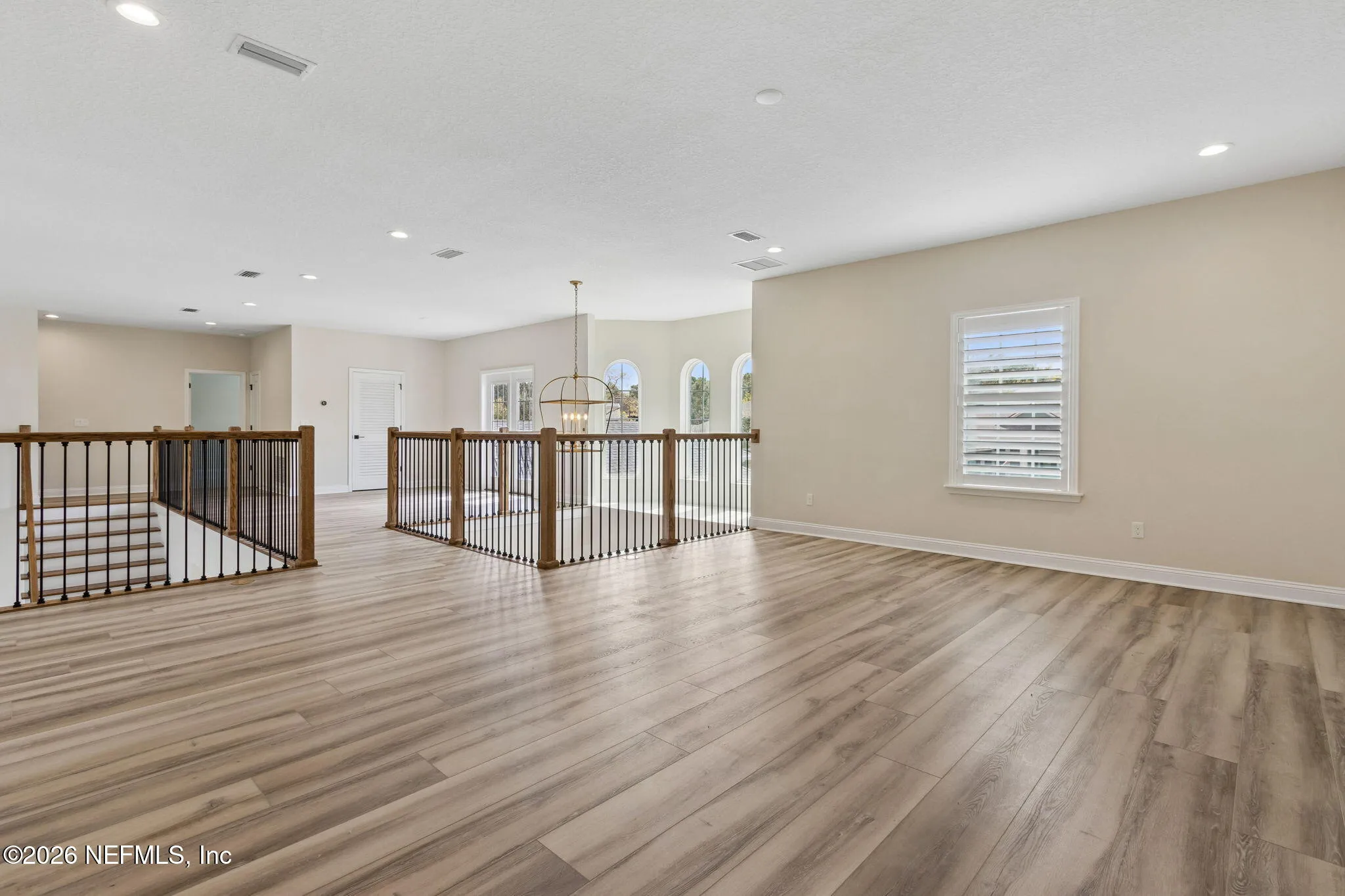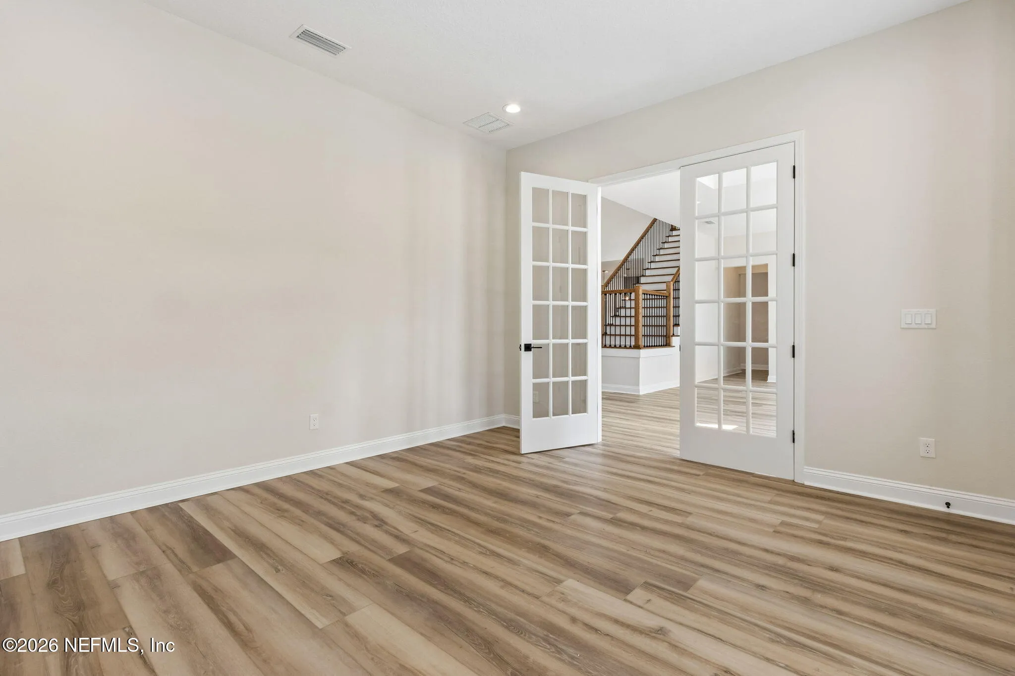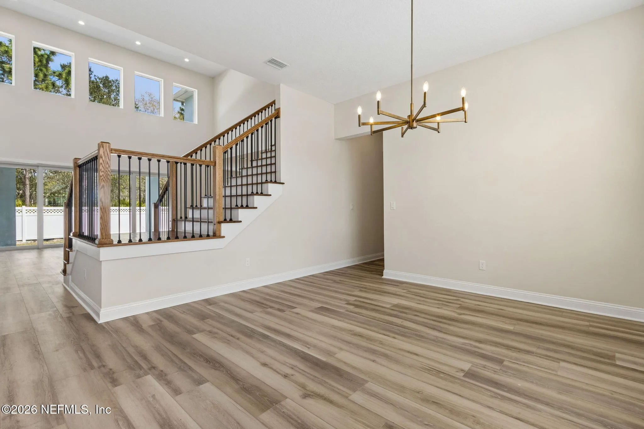 Welcome to this stunning luxury residence located in the highly sought-after gated community of Plantation Estates within Julington Creek Plantation. From the moment you step inside, you are greeted by soaring 22-foot ceilings in the grand foyer and expansive great room, creating a light-filled and impressive first impression. The open-concept floor plan features a beautifully designed living space highlighted by a floor-to-ceiling shiplap fireplace and triple sliding glass doors that seamlessly connect indoor and outdoor living. A private flex space with glass French doors offers the perfect setting for a home office or study. The chefs kitchen is a true showpiece, featuring a massive 10-foot island, Cambria quartz countertops, double-stacked Diamond Vibe cabinetry with soft-close drawers, and premium Wolf appliances. Elegant finishes and thoughtful design continue throughout, including Coretec luxury vinyl plank flooring with a 30 mil wear layer extending through the main living areas, upstairs loft, media room, and hallways. The first-floor primary suite provides a private retreat with a spa-like bathroom showcasing quartz countertops, a jetted soaking tub, and a spacious sit-in shower, complemented by Kohler fixtures. An additional bedroom and full bath on the first floor offer flexibility for guests or multi-generational living. Upstairs, youll find additional bedrooms, a media space, and loft area, all designed with comfort and functionality in mind. Additional upgrades include 10-foot ceilings, plantation shutters, upgraded carpet padding in bedrooms, a fully equipped laundry room with new cabinetry, countertops, and sink, as well as a water softener system. Step outside to enjoy the generously sized 0.32-acre lot featuring a variety of mature fruit and nut trees including pecan, satsuma orange, navel orange, fig, and Joey avocado--creating a private and inviting backyard retreat. Residents of Julington Creek Plantation enjoy resort-style living with access to exceptional amenities including multiple aquatic facilities, a fitness center, tennis courts, sports fields, parks, playgrounds, and miles of walking and biking trails. The community also features a championship golf course, recreation center, and year-round events for all ages. Excitingly, a brand-new state-of-the-art aquatic center on Davis Pond Road is underway, featuring a resort-style family pool with slide tower, separate adult pool, competition pool, clubhouse, and gathering spaces--further elevating the lifestyle this community offers. This exceptional home combines luxury, space, and top-tier community amenities in one of St. Johns Countys most desirable locations.