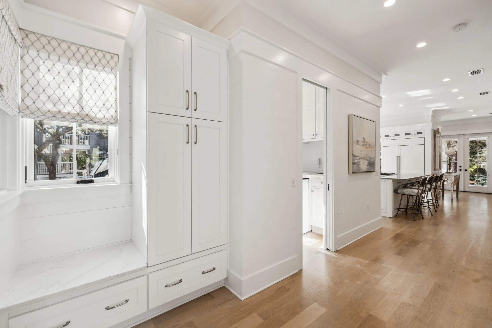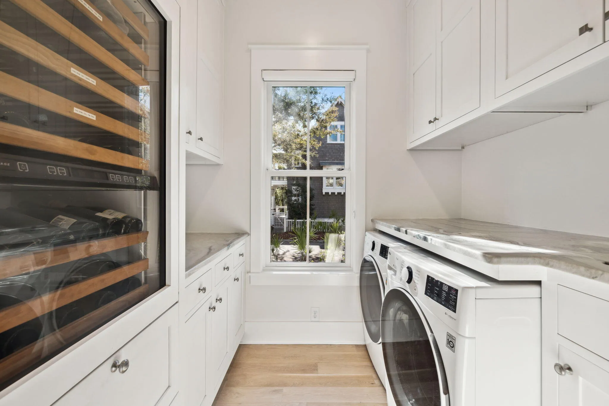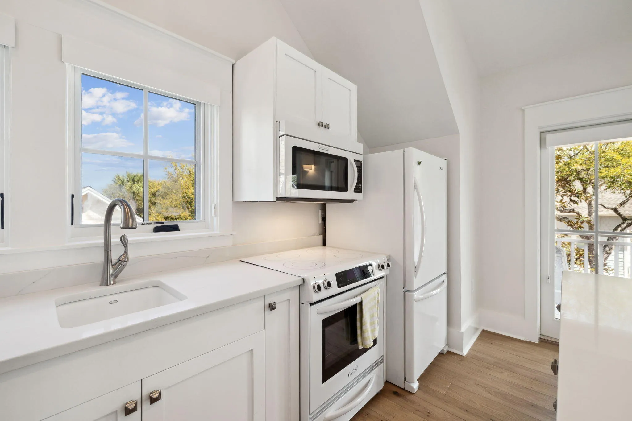 Totally remodeled Watersound Beach home with room for all your family and friends has 6 BRS in the main house, 2 on the main floor including the primary suite with 4 Ensuite Bedrooms Upstairs is ready to call your own! You will find an additional king bed in the carriage house which has a full kitchen. The home boasts high-end finishes, quartz and quartzite countertops, and a brick fireplace.