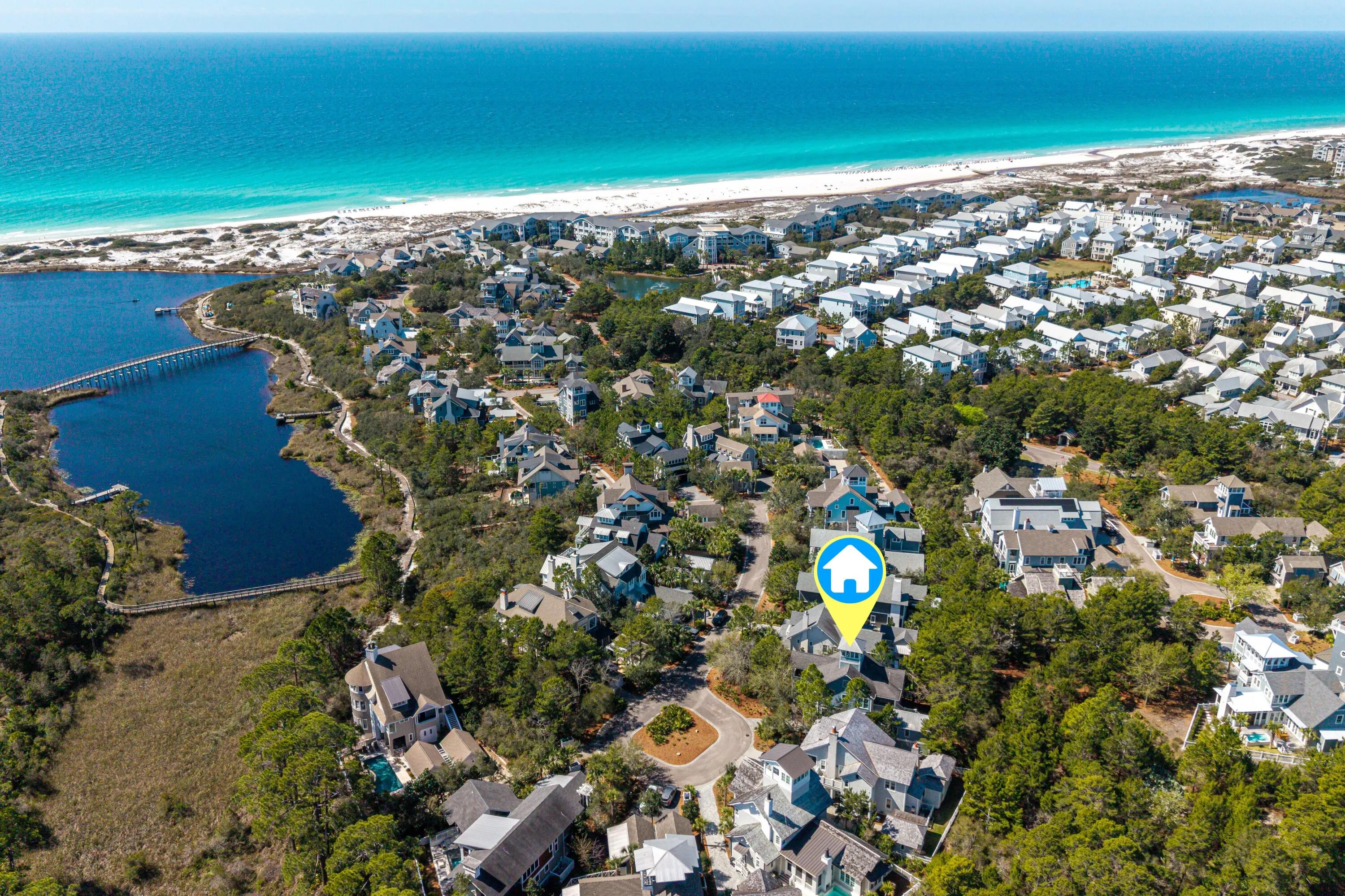 Welcome to 53 Creek Bridge Way, a refined coastal retreat nestled in the heart of the prestigious Watersound Beach community. Perfectly positioned along scenic 30A, this exceptional residence embodies the relaxed elegance and effortless luxury that define life on Floridas Emerald Coast. Encompassing 3247 square feet this 4 bedroomofficeloft carriage house 4.5 bath home has plenty of room for your friends and family.From the moment you arrive, youre greeted by timeless coastal architecture, lush landscaping, and inviting outdoor living spaces that capture the essence of Northwest Florida living. Inside, the home showcases a light-filled, open-concept design with sophisticated finishes, designer lighting, and thoughtful details throughout. Expansive windows allow natural light to pour in, creating an airy ambiance that perfectly complements the soft coastal palette. The gourmet kitchen is beautifully appointed with premium appliances, custom cabinetry, and an oversized island ideal for gathering with family and friends. Spacious living and dining areas flow seamlessly, making entertaining both intimate and effortless. The large dining room is surrounded by windows and can easily seat 14-16 people. Well-appointed bedrooms provide private retreats, while the luxurious primary suite offers a private porch for morning coffee. Step outside to enjoy an array of Watersound Beach amenities -- from resort-style pools, fitness facilities, scenic walking trails, and access to miles of sugar-white sand beaches. Watersound Beach fosters a true sense of community with social events, outdoor recreation, and unmatched natural beauty just steps from your door. Whether youre hosting guests or savoring quiet moments, this home offers the perfect balance of sophistication and relaxation. Located just minutes from upscale dining, boutique shopping, and the vibrant energy of 30A, 53 Creek Bridge Way presents an exceptional opportunity to experience coastal living at its finest. Discover resort-style elegance by the sea -- where luxury meets laid-back living in beautiful Inlet Beach and Watersound Beach.