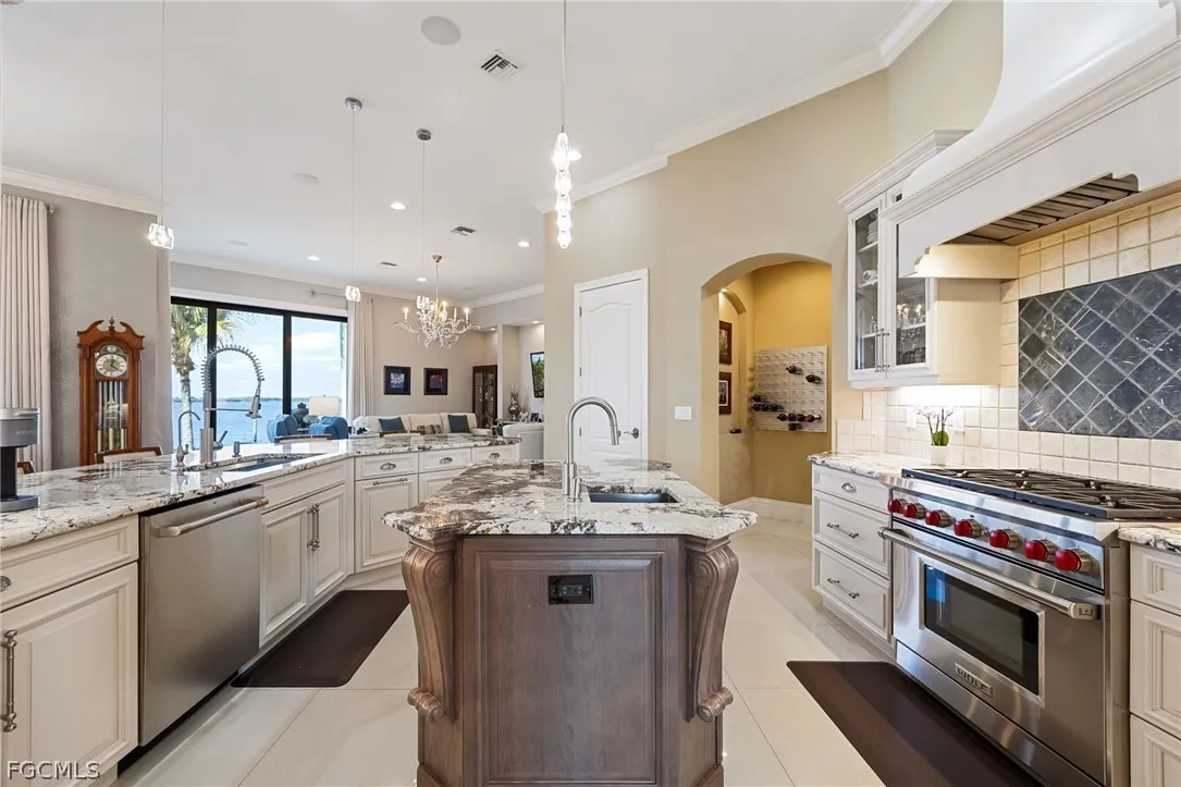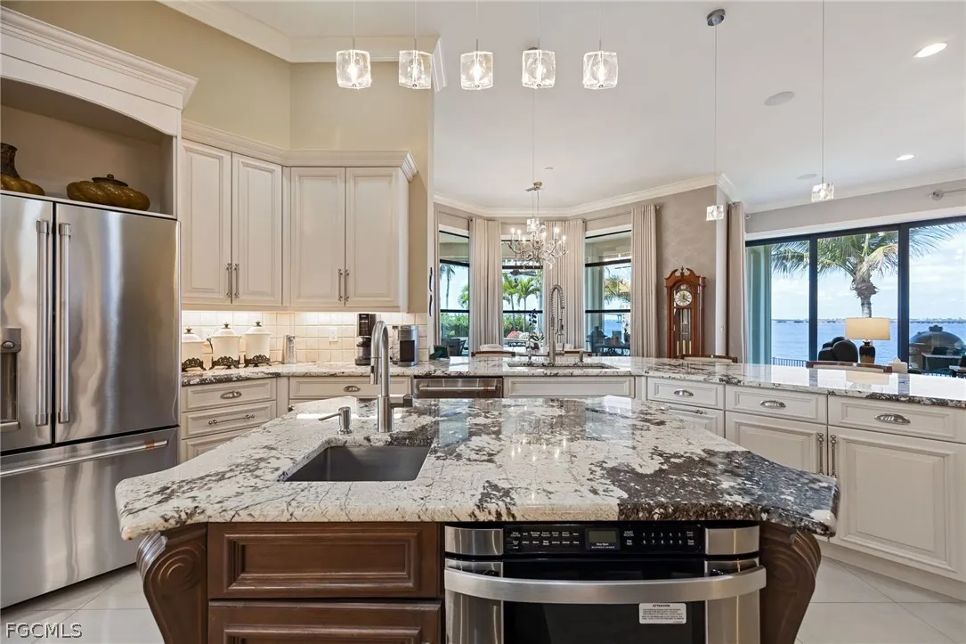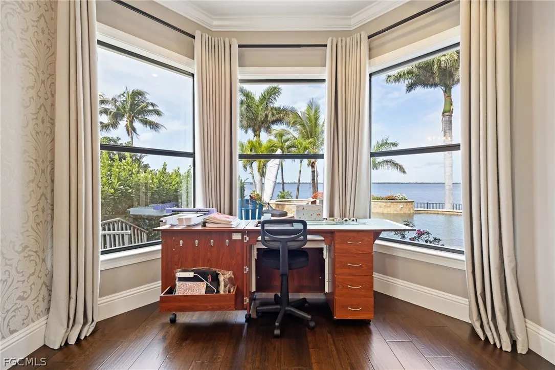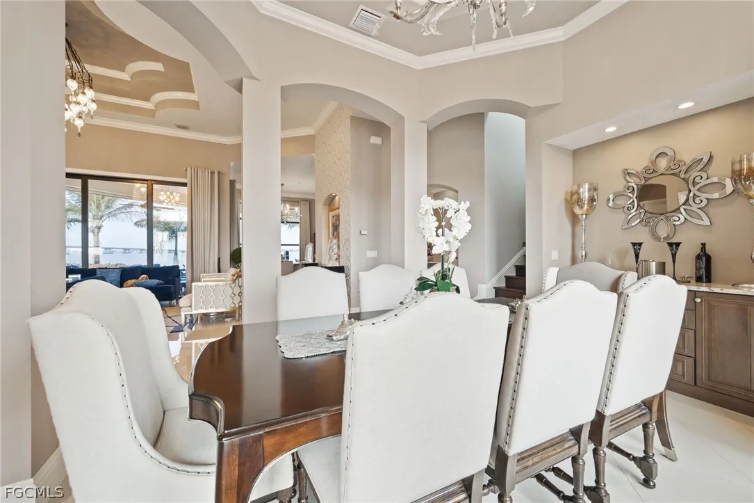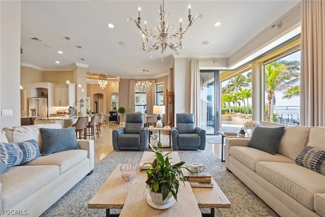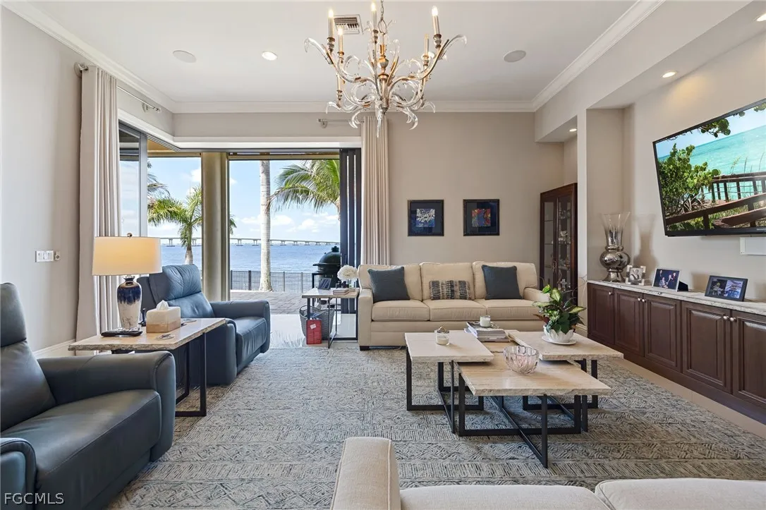 Extraordinary Caloosahatchee Riverfront Estate Modern waterfront living with panoramic river views on coveted West Riverside Drive. Positioned on highly sought-after West Riverside Drive with 105 feet of direct frontage on the Caloosahatchee River, this modern five-bedroom, five-bath residence enjoys sweeping panoramic river views. This highly sophisticated estate home offers 4,586 square feet of architecturally refined living space with soaring ceilings, exceptional craftsmanship, complemented by a well-appointed three-car garage. Expansive outdoor entertaining spaces, highlighted by a gas-heated pool and spa and elegant riverfront terraces overlooking the river, capture spectacular sunsets and long water views while creating seamless indoor-outdoor living. Custom imported iron-and-glass estate doors open to interiors distinguished by bespoke finishes, Murano glass chandeliers, designer wallpaper, and sophisticated wall treatments, reflecting a carefully curated and highly refined design aesthetic. The home is anchored by a chefs kitchen with high-end appliances and generous entertaining space, while the primary suite enjoys a tranquil riverfront setting designed to capture the homes panoramic water views. A rare offering along West Riverside Drive, where modern riverfront construction, sophisticated design, and so many upgrades! New roof w/ 50-year warranty, New generator, New appliances and New Storm Smart hurricane screens throughout. All on the premier Caloosahatchee River.