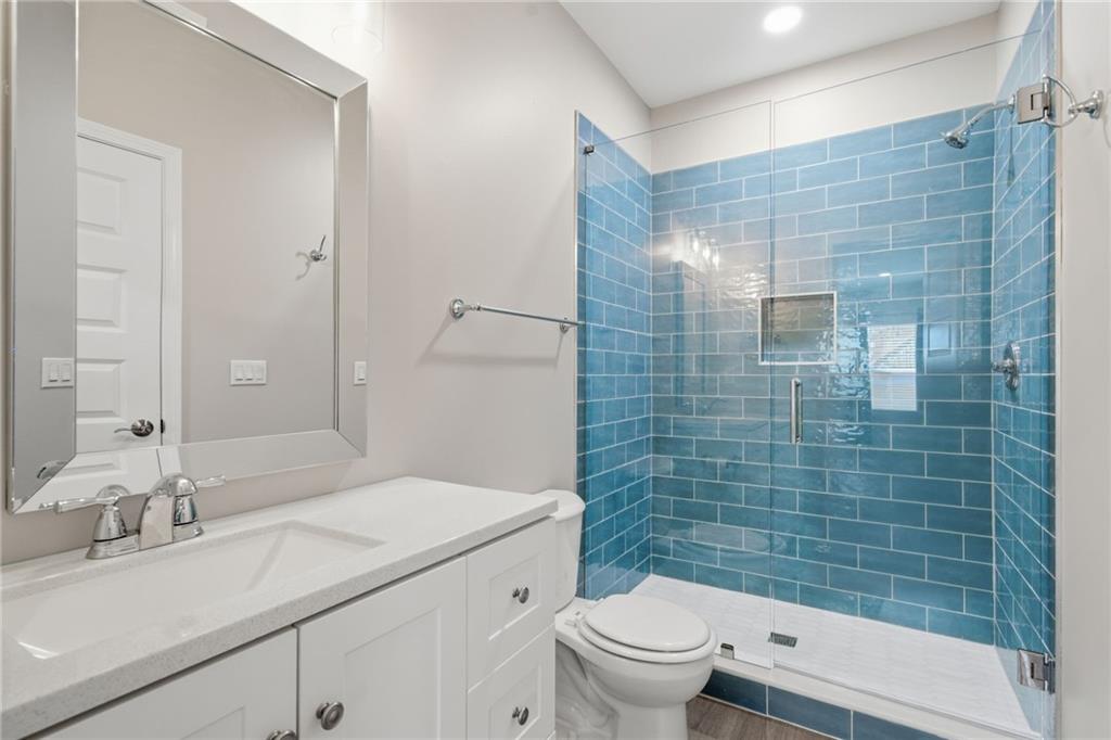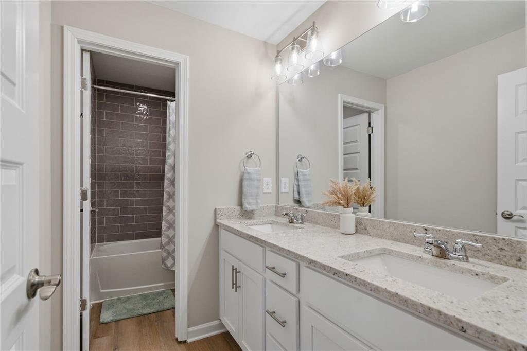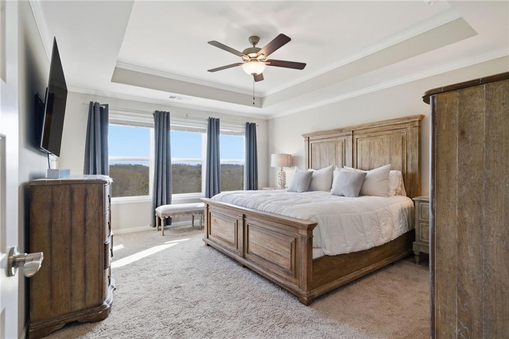 BEST VALUE IN THE NEIGHBORHOOD! Discover your dream home in this stunning nearly new construction, located in an upscale gated community near Lake Lanier, convenient to I-985, Northside Hospital, shopping, and top-rated schools. This impressive residence features an open-concept design complemented by luxury vinyl plank (LVP) flooring throughout the main level. Enjoy the elegance of white kitchen cabinets, granite countertops, and high-end stainless steel appliances, including a gas range. The large island and breakfast area create the perfect space for entertaining, with a stylish tiled backsplash enhancing the kitchens appeal. Relax in the inviting great room, complete with a direct-vented gas fireplace, crown molding, and abundant windows that bring in amazing natural light. The oversized owners suite upstairs boasts a generous walk-in closet and 3 large windows overlooking the private backyard, accentuated by a tray ceiling. The spa-like master bath features luxurious finishes for your ultimate comfort. With three additional spacious bedrooms and a conveniently located laundry room on the upper level, this home combines functionality with style. The newly finished basement includes a media room, an additional bedroom, and a full bath, providing endless possibilities for entertainment or guest accommodation. The backyard is perfect for outdoor activities and gatherings. It has just been fenced in and is very private. This home is in Move-in-Ready condition. This exceptional property is a must-see!