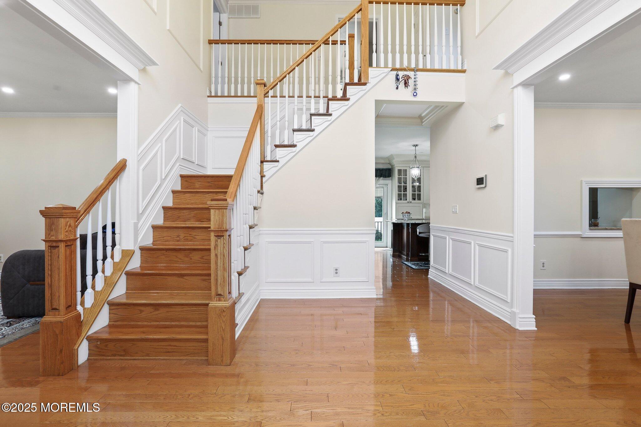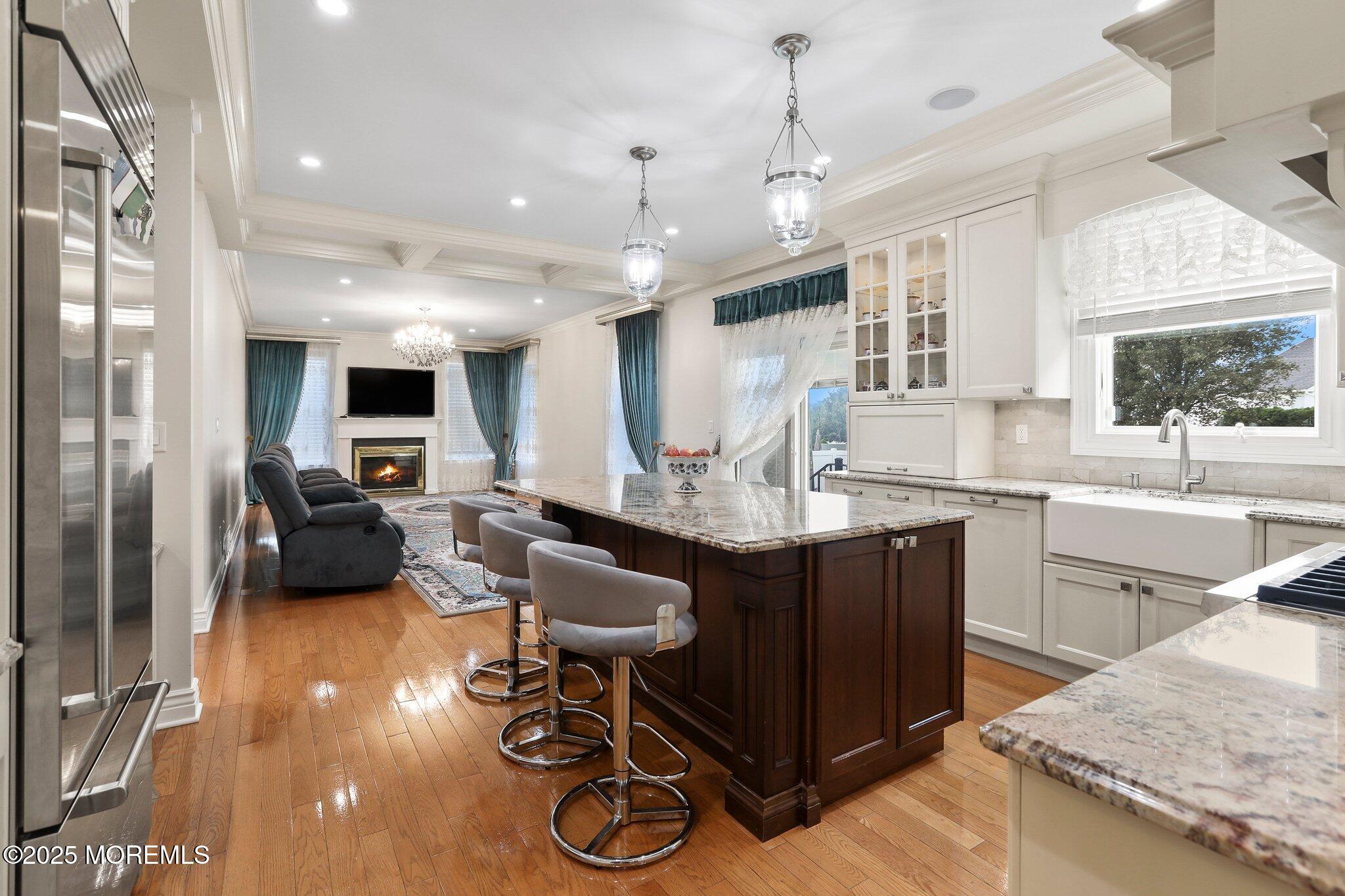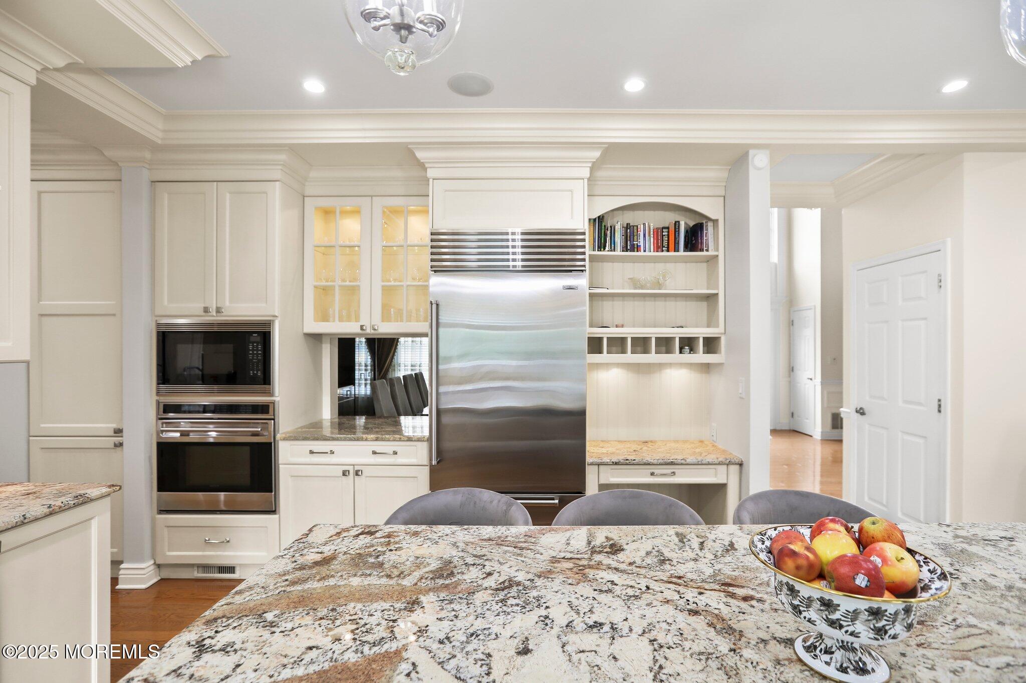 This stunning 5bedrooms, 2.5-bathrooms property, located on desirable Junction Trail. The heart of this residence is the one of a kind custom made kitchen area allow for Family gatherings, boasting Wolf & Subzero appliances with complemented by a center island and decorative moulding. The butlers pantry features a build in Miele coffee/espresso maker, wine refrigerator, and drink cooler.