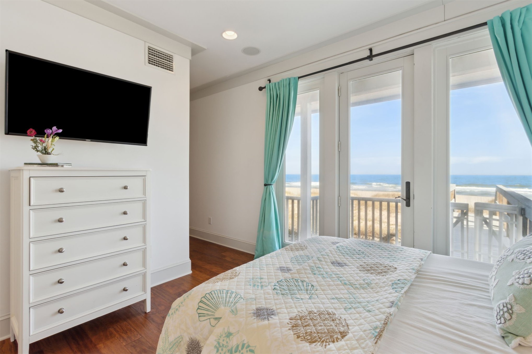 Impeccably maintained, this OCEANFRONT MASTERPIECE boasts 75 FEET OF DIRECT OCEAN FRONTAGE and a GENEROUSLY SIZED LAYOUT WITH BEDROOMS THAT SLEEPS 10. Built with a CEMENT BLOCK, HARDYBOARD EXTERIOR and NEWER HVACs & GALVANIZED METAL ROOF, it boasts both a majestic presence and incredible durability against the elements. No long boardwalks, no hauling beach gear, this is true oceanfront living.