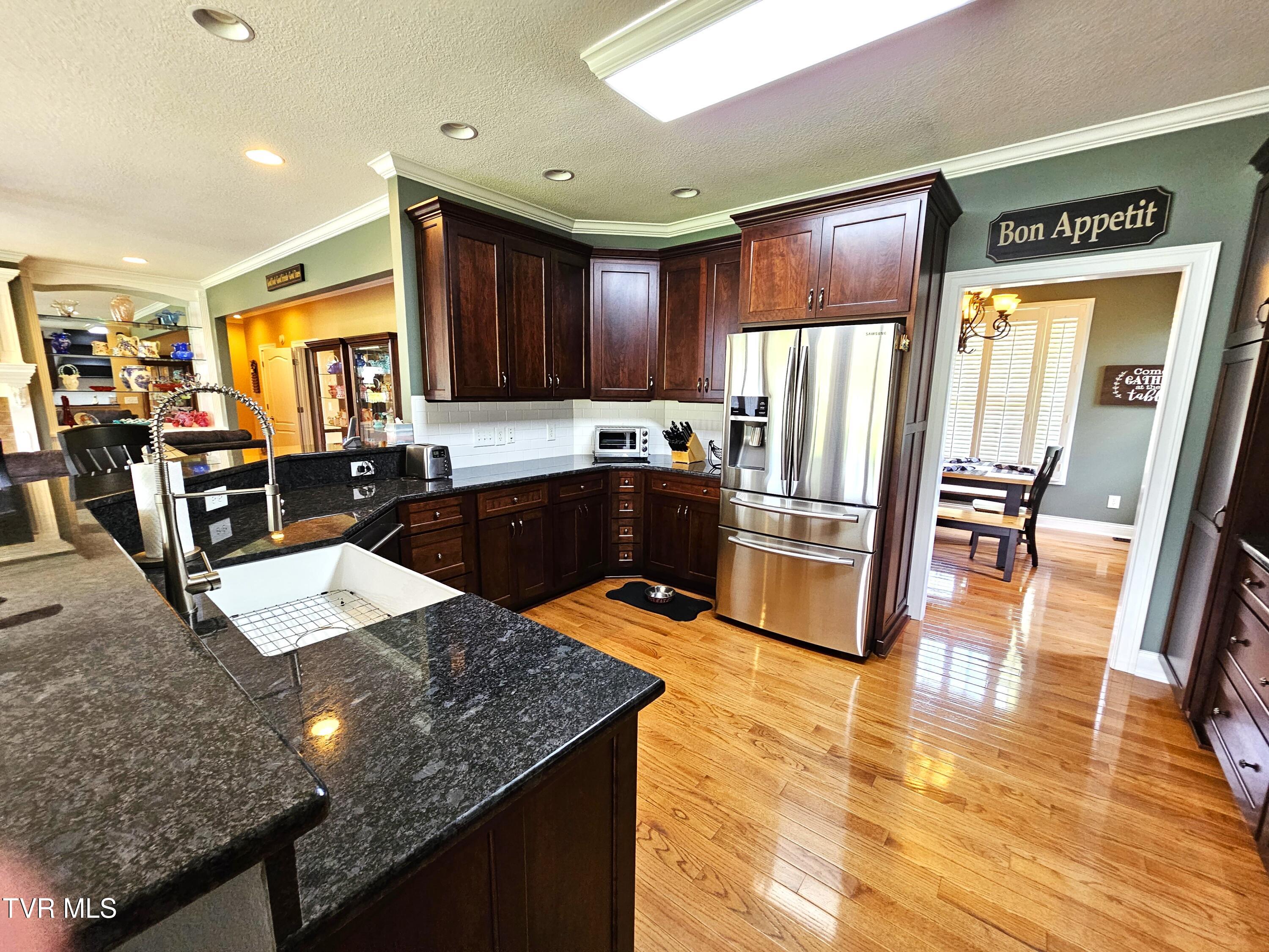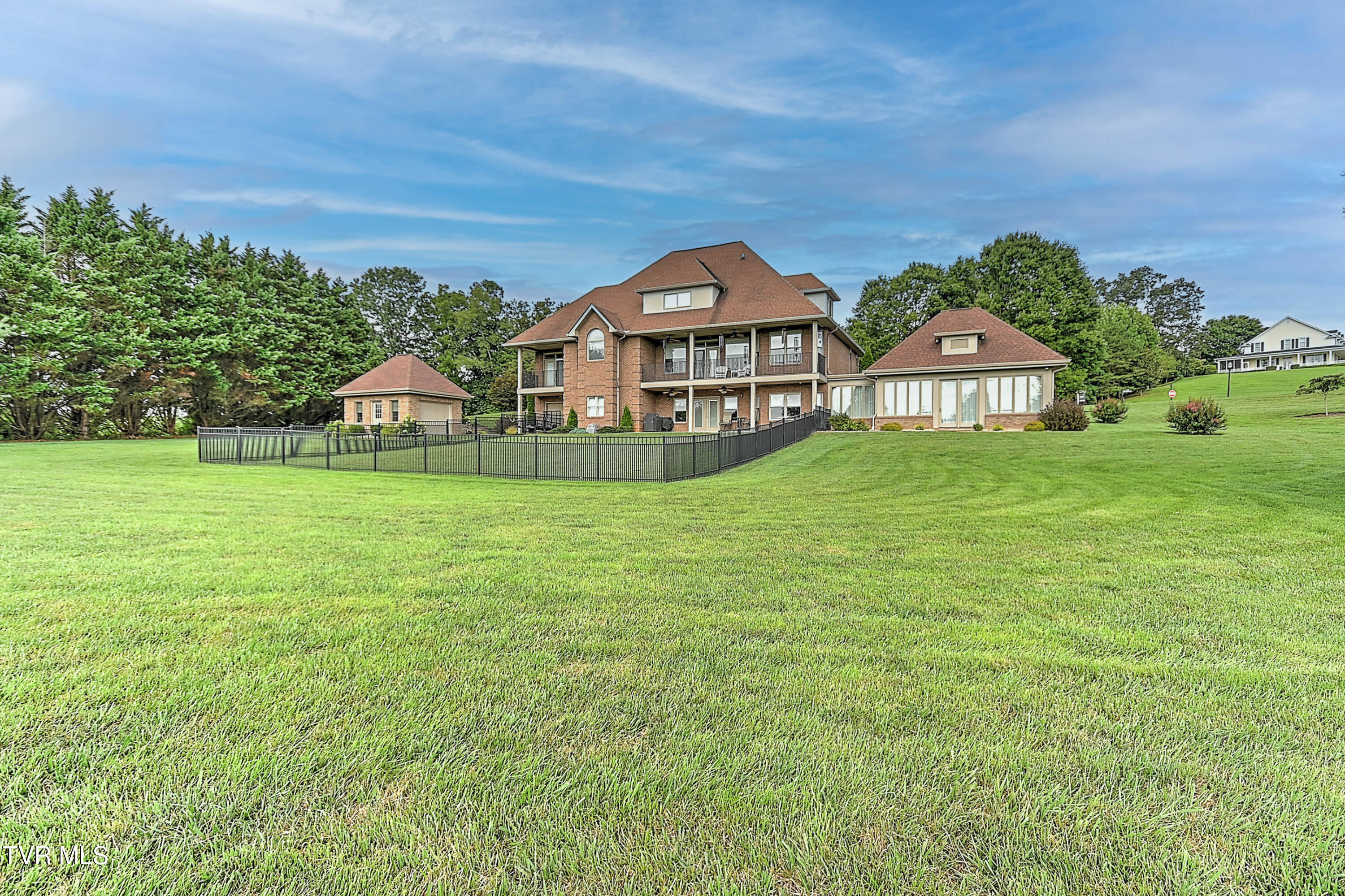 This exceptional home, nestled in prestigious River Plantation, offers a unique blend of elegance and comfort. This custom brick home features 4 bedrooms, 4.5 baths, and over 7,000 square feet of meticulously finished living space on a sprawling 1.37-acre corner lot. The owners have thoughtfully updated the home, enhancing its original charm and creating a true showpiece. The main floor boasts a spacious living room with built-in shelving surrounding a cozy fireplace, and a wall of windows that frame breathtaking mountain views. French doors lead to a covered back porch, extending the living space and providing a seamless flow between indoor and outdoor areas. The gourmet kitchen has been fully remodeled with custom cherry cabinetry, granite countertops, a gas cooktop, built-in oven and microwave, and abundant storage options. The main level also includes a home office, a formal dining room, a guest bath, laundry room, and a two-car garage. The luxurious primary suite serves as a private retreat, complete with a tray ceiling, a private balcony, and an impressive walk-in closet. The en-suite bathroom features custom cherry vanities, double vessel sinks, granite countertops, and a beautifully tiled ceramic shower. Upstairs, you'll find three generously sized bedrooms, two full bathrooms, a bonus room, and additional storage space with access to the floored attic. The finished basement offers a large den, a recreation area with a pool table, a second full kitchen with granite countertops, a custom bar, and two additional bonus rooms. French doors lead to the covered patio and a partially fenced yard. The basement also includes a full bath and a climate-controlled one-car garage/workshop with ample storage. In 2019, a brick storage building and sunroom were added, further enhancing the appeal of this remarkable home. If you're seeking a luxurious residence in an awe-inspiring setting, this home offers unparalleled elegance and a truly exceptional living experience.
