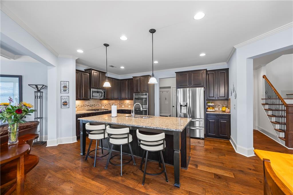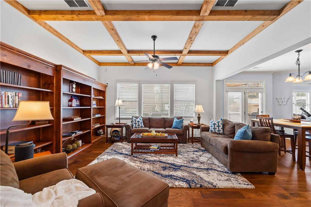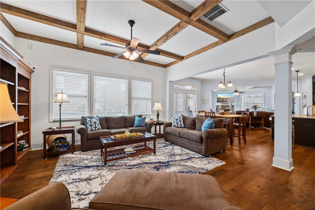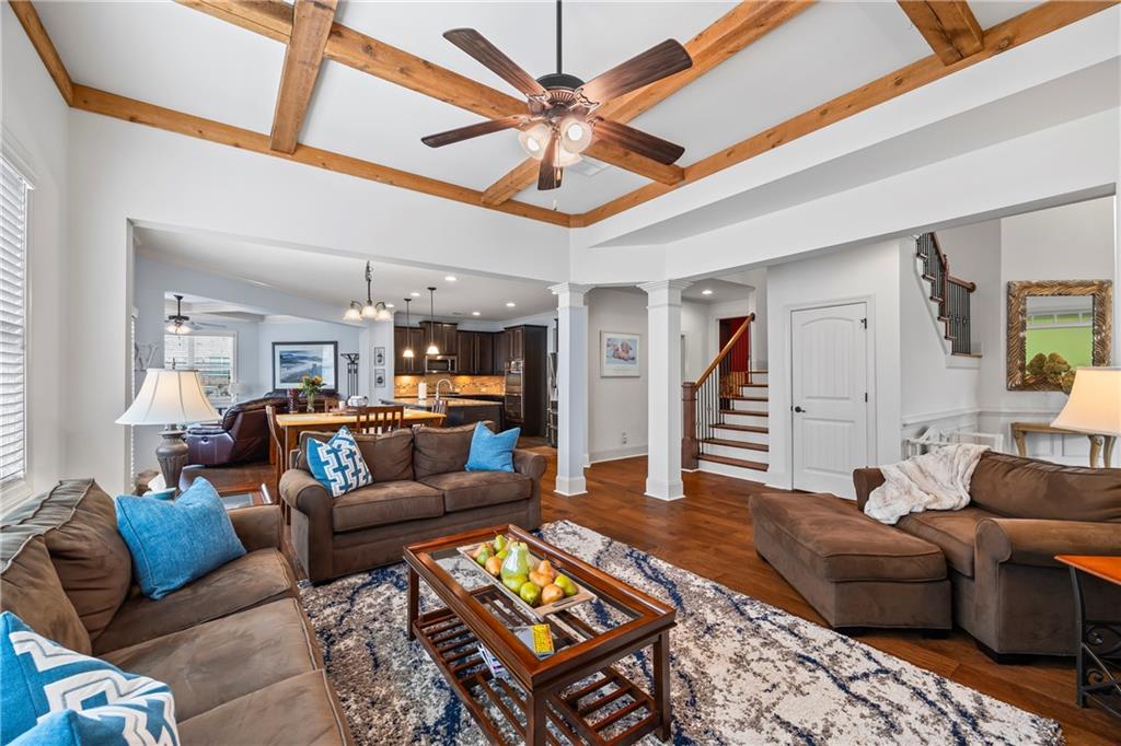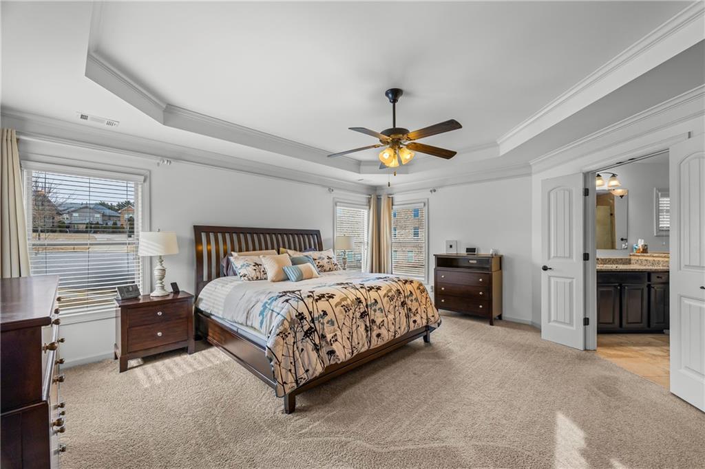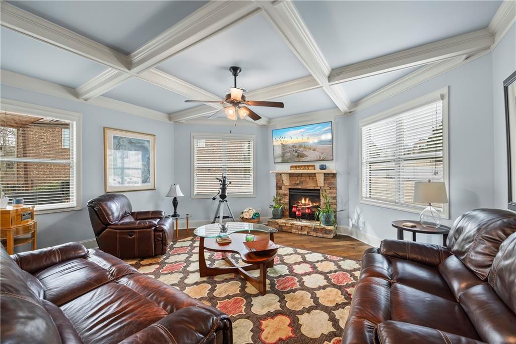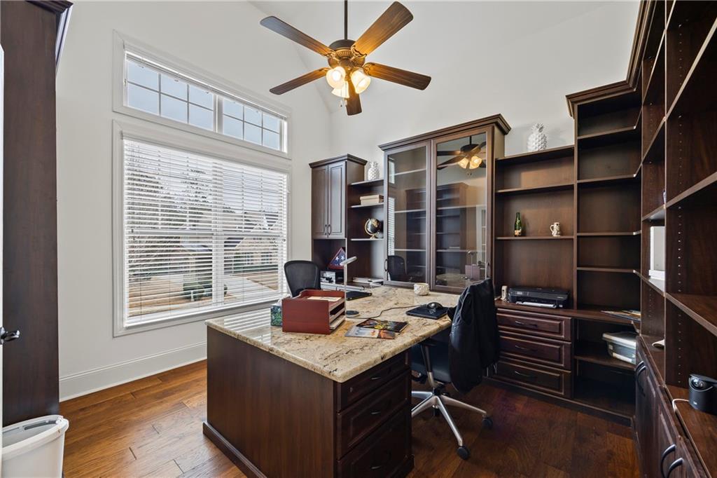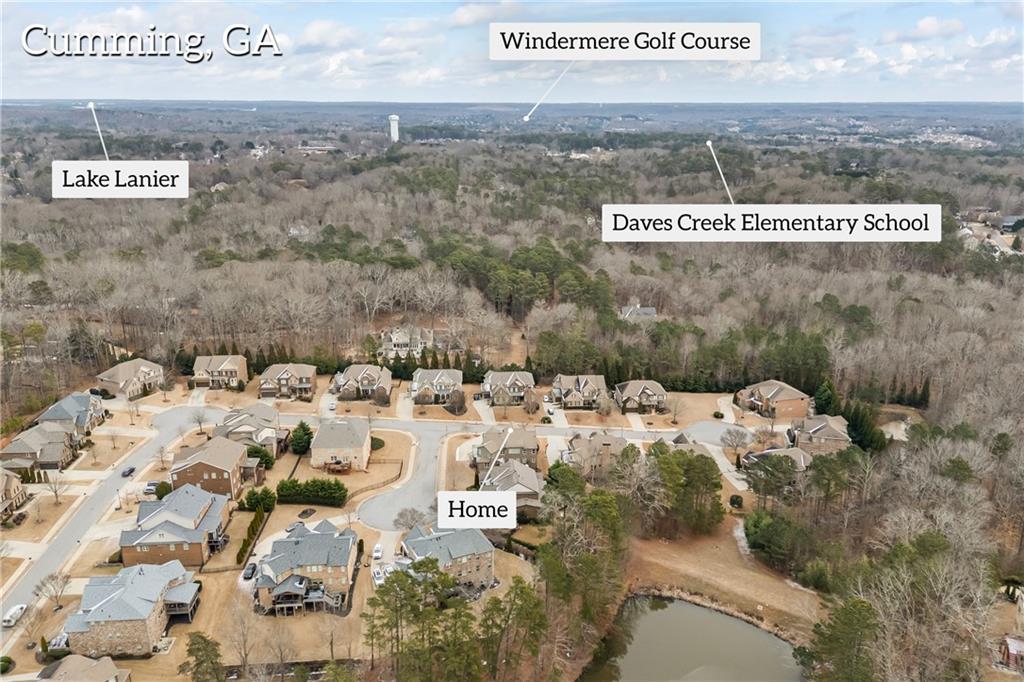 Welcome to 8910 Ellesmere Drive, a beautifully appointed home offering exceptional space, thoughtful design, and versatility—perfect for large or multi-generational families. With 7 bedrooms, 5½ baths, and 6,811 square feet of fully finished living space, this home delivers comfort and functionality on every level. The main level welcomes you with a two-story foyer flanked by a formal dining room and an office ideal for working from home with built-in bookcases offering loads of storage space. A guest bedroom with a full bath, an additional half bath, and a flexible media/office/playroom provide outstanding main-level living options. The heart of the home features an open floor plan with a spacious kitchen offering stainless steel appliances, a large center island with seating, and seamless views to the family room with beamed ceiling and built-in bookcases and the charming keeping room with a fireplace and gas logs, creating a warm and inviting gathering space. A walk-in pantry and mudroom area when entering from the 3-car garage add everyday convenience. Garage is equipped with a 220V outlet for EV charging. Upstairs, a private loft area offers additional living or study space. Two bedrooms share a Jack-and-Jill bath, while another bedroom features its own private en-suite bath. The oversized primary suite is a true retreat with a sitting area, an expansive spa-like bath with separate his-and-her vanities, a large soaking tub, a separate shower with dual shower heads, and his-and-her walk-in closets. The fully finished basement with 11 foot ceilings expands the living space even further with a theater room, a large open area perfect for a game room, fitness space, or recreation area, two additional bedrooms, a full bath, and additional storage. Situated on a large corner lot in the sought-after Cheswyck community, this home is conveniently located just minutes from GA-400, The Collection at Forsyth, shopping, dining, and top-rated schools. This exceptional home offers space, flexibility, and location—designed to accommodate today's lifestyles with ease.